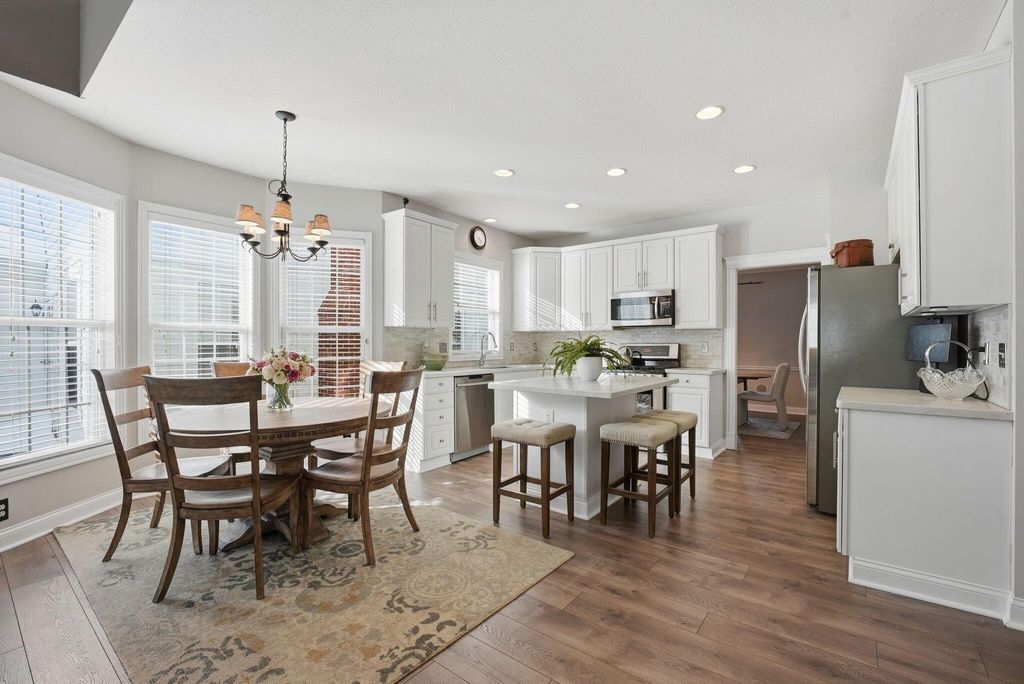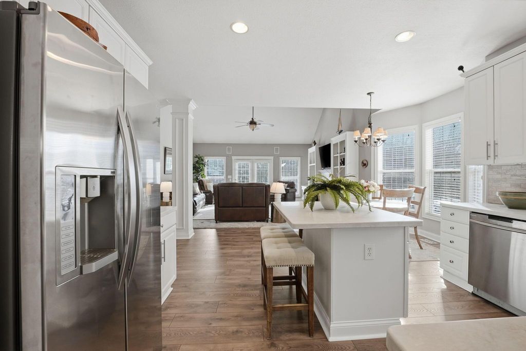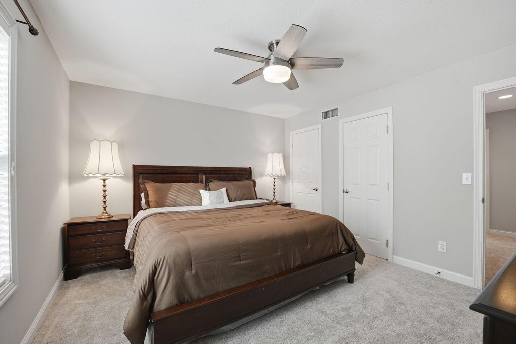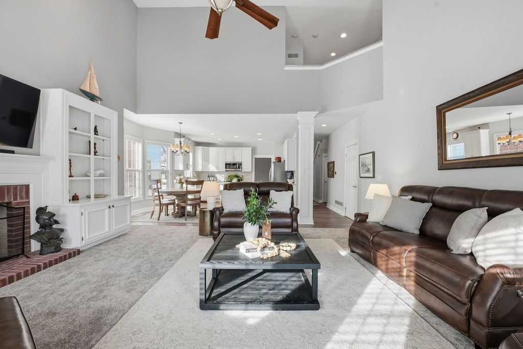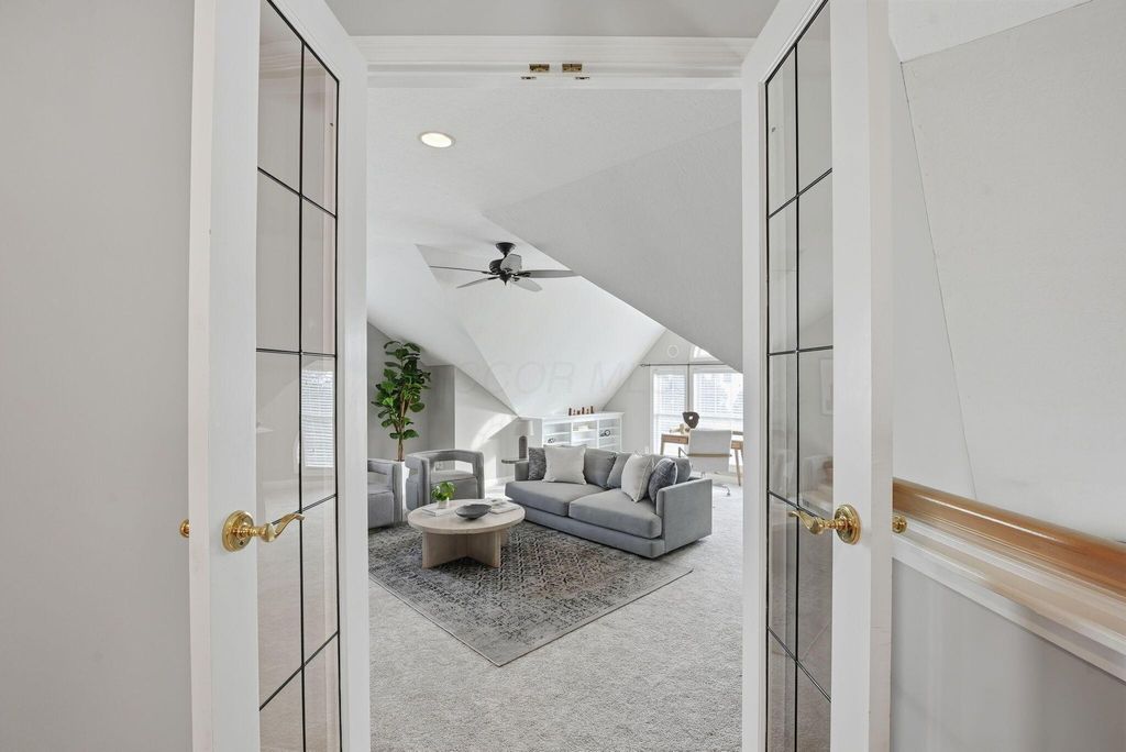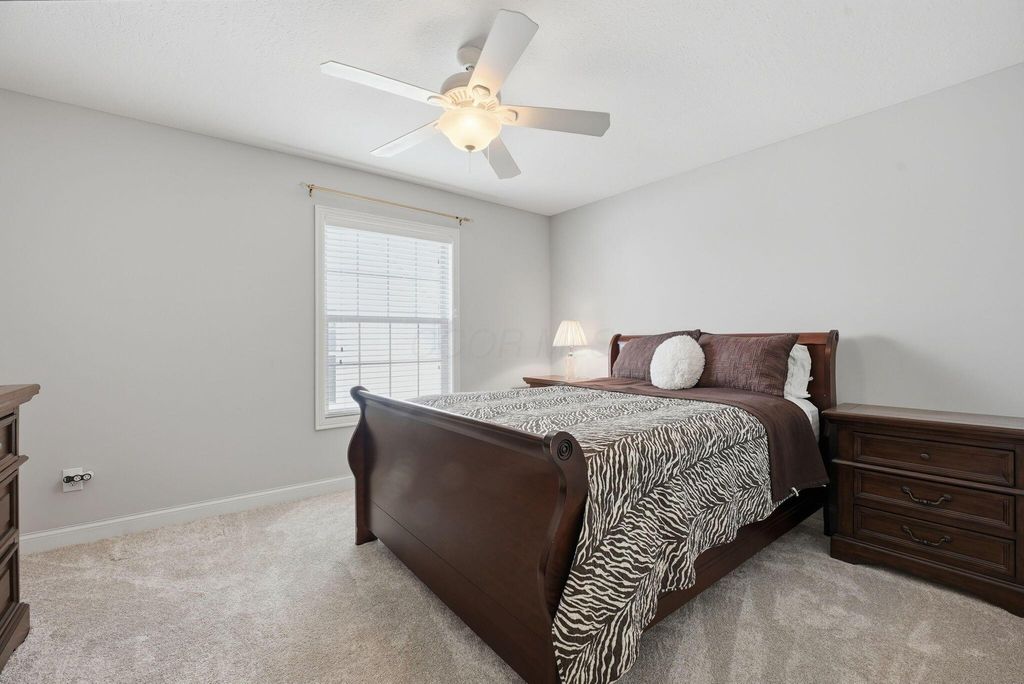 Charming Hampsted Green. Built in 1997 by M/I Homes, this meticulously maintained 3-bedroom, 2.5-bath home offers 3,000 square feet of total living space on a .13-acre lot. Step inside to discover an abundance of natural light throughout the open floor plan. The heart of the home features a spacious Great Room with soaring vaulted ceilings, a gas log fireplace, and custom built-ins that seamlessly flows into the updated kitchen and casual dining area. The kitchen is a chef's dream with 42'' cabinetry, corian countertops, a stylish tile backsplash, stainless steel appliances, and a center island with seating"”perfect for entertaining and everyday family living. The main level offers convenient one-floor living with a first-floor Owner's Suite complete with a spa-like bathroom and generous walk-in closet. Additional first-floor features include a formal dining room - ideal for office space, LVP flooring, and a dedicated laundry room. Upstairs, you'll find two additional bedrooms, a full bath with newer carpet, and a versatile bonus room above the garage that can serve as a 4th bedroom or flex space. The full basement provides endless possibilities with a recreation room, plumbing roughed-in for a full bath, and abundant storage. Outside, relax on the paver patio surrounded by newly planted Arborvitae trees for added privacy. This home combines modern updates with timeless appeal and is ideally located to New Albany Schools, Market Street, Taylor Farm Park, restaurants, and other local amenities.