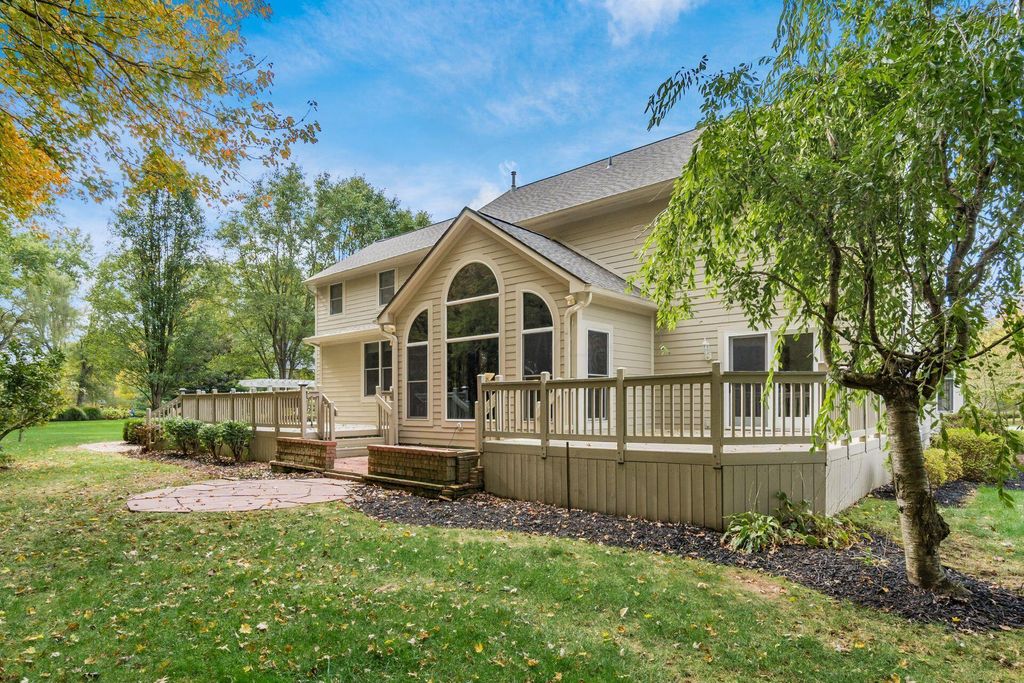 This is the one in Gahanna schools! Welcome home to a beautiful, well maintained residence with fantastic curb appeal... even better, it's located on a one acre lot, in a cul-de-sac, and backs up to woods! Upon entering, you'll find over 3,600 sq ft of an open, smartly designed floor plan. The two story foyer, which features an elegant staircase, is complemented on the left by the living room that overlooks the spacious front yard, and to the right, an inviting dining room. Towards the back of the main level, the great room draws in the natural beauty of the wooded back yard with its wall of windows. The two sided fireplace completes the space, which openly flows into the kitchen, yet another functional gathering space. It features granite countertops, rich dark cabinetry, and more natural light. Plenty of hardwood flooring to admire. On the second level, you will find the spacious primary suite with vaulted ceilings, the en suite with dual sinks and additional vanity space, walk in shower and tub deck, and the walk in closet with storage and built ins. There are three additional bedrooms including one with its own en suite, and an additional full hallway bath for abundant living space upstairs! There is just as much to love outside, with two decks, a brick paver patio, and a step down concrete patio... perfect, quiet spaces to enjoy nature. This home offers both a relaxing location to unwind but with convenience to attractions and amenities in Gahanna, Easton and New Albany. See A2A. Professional interior photos coming 2/6.