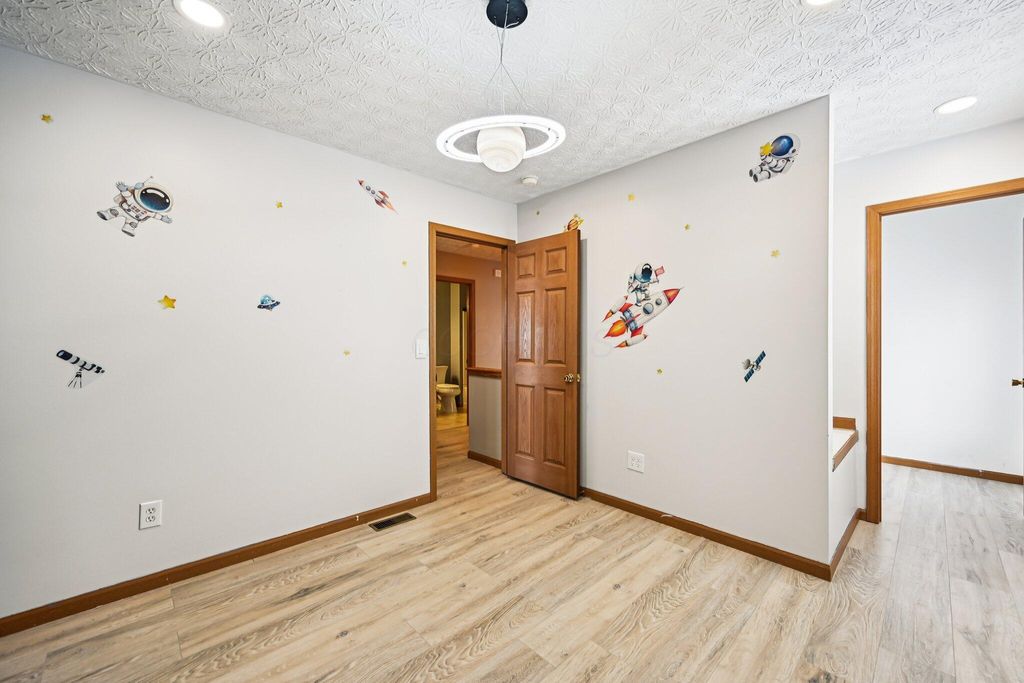 This beautiful 4-bedroom, 2.5-bath home has so much to offer! Upon entry, you're welcomed by a bright front room with hardwood floors, double doors, and abundant natural light, creating a warm and inviting atmosphere. This versatile space can be used as a formal dining room or home office. The main level also features a cook's kitchen with plenty of counter space, a pantry, and an eat-in area, perfect for everyday meals or entertaining. A convenient half bath and first-floor laundry lead directly to the attached two-car garage. Upstairs, you'll find a cozy sitting area ideal for reading, along with four bedrooms and a full bath. The primary suite includes a private bath and walk-in closet, while one additional bedroom also offers a walk-in closet. The finished basement provides flexible space for a recreation area or potential additional bedroom. Enjoy outdoor gatherings in the fenced backyard with a brick patio, perfect for entertaining. This move-in-ready home includes all appliances purchased in 2023, a newer HVAC system and roof (2021), added outlets in the primary bedroom and garage, and upgraded switches throughout most of the home. Located in a great neighborhood close to shopping"”schedule your tour before it's gone!