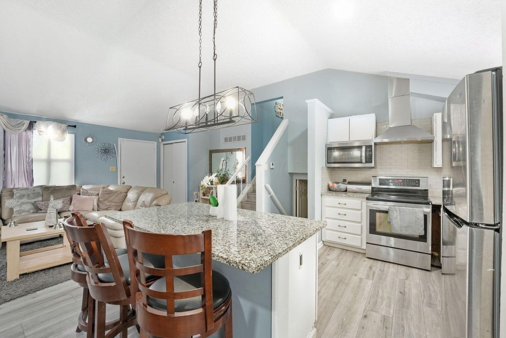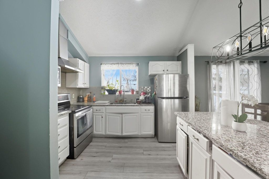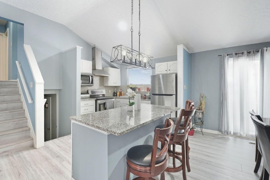 Spacious Mid-Century Split-Level w/ newer Roof & ready for your family to move right into. Located near schools, shopping & restaurants! An open floor plan, that was ahead of its time, with a Living Room, Dining Room and Kitchen all open to each other with impressive cathedral ceilings! The Kitchen has been recently remodeled & newer laminate flooring. Vinyl insulated windows throughout the home with a large picture window in the Living Room offering plenty of natural light. The sliding door opens to a deck off the Dining Room overlooking a patio and the fenced rear yard for kids or a puppy! Upstairs there are 3 BR's and a Full Bath. Each BR has a ceiling fan w/ light overhead. Lower Level has a cozy Family Room w/ a Half Bath, a Laundry/Utility Room w/ door to the back yard.