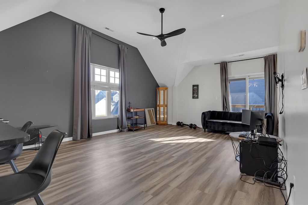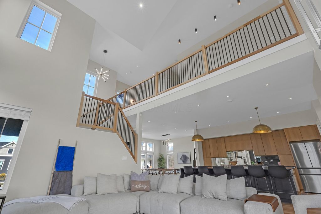 Welcome to a home that redefines flexibility and luxury in the heart of the Olentangy School District. From the moment you see the custom copper gutters and flickering gas lanterns, you'll know this isn't a standard build. This architectural gem features a rare independent mother-in-law suite"”a true home-within-a-home"”complete with its own full kitchen, private balcony, and dedicated HVAC system. The main level is an entertainer's dream, anchored by a 12-foot waterfall island and leathered quartz countertops that flow into a soaring two-story great room. Transition seamlessly to the outdoors via the garage-style glass door, creating a perfect indoor-outdoor living experience. Upstairs, the primary retreat offers a private sanctuary with its own balcony, while the finished basement"”featuring a full bar and theater-style screen"”is ready for game day. With three separate HVAC zones and full smart-home integration, this home offers total comfort and peace of mind.