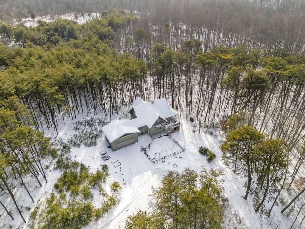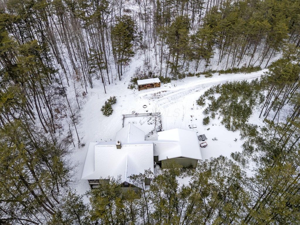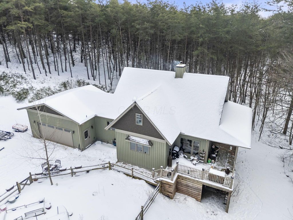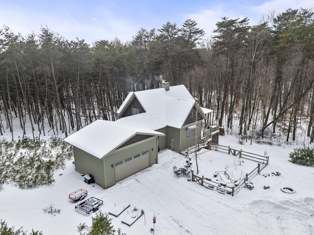 Escape to your own private retreat in the heart of Hocking Hills. This custom built two bedroom, two bath home with a loft sits on nine wooded acres and was designed with attention to every detail. Enjoy the wraparound porch, cozy wood burning stove, and an amazing kitchen perfect for gathering. Relax in your private sauna, soak in the hot tub under the stars, or take advantage of your own shooting range. A two car garage adds convenience to this one of a kind property that blends comfort, privacy, and the outdoors. Airbnb Allowed. Not Currently used as a rental.