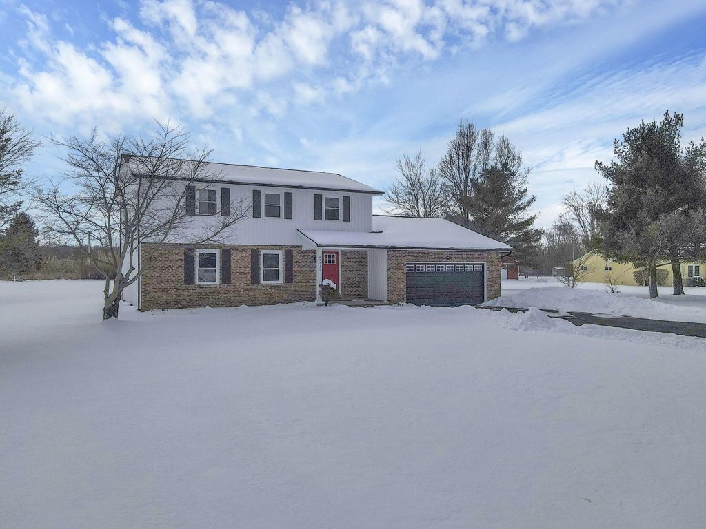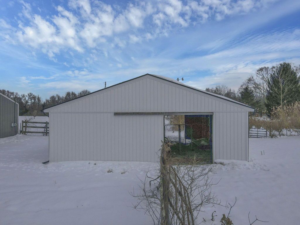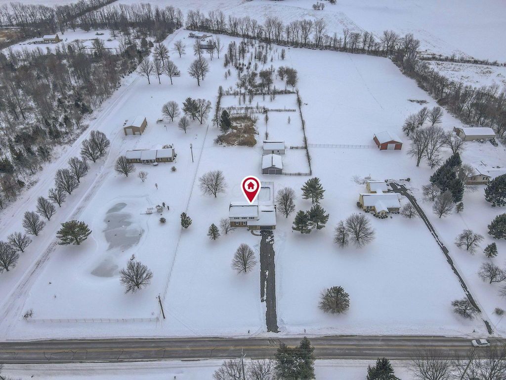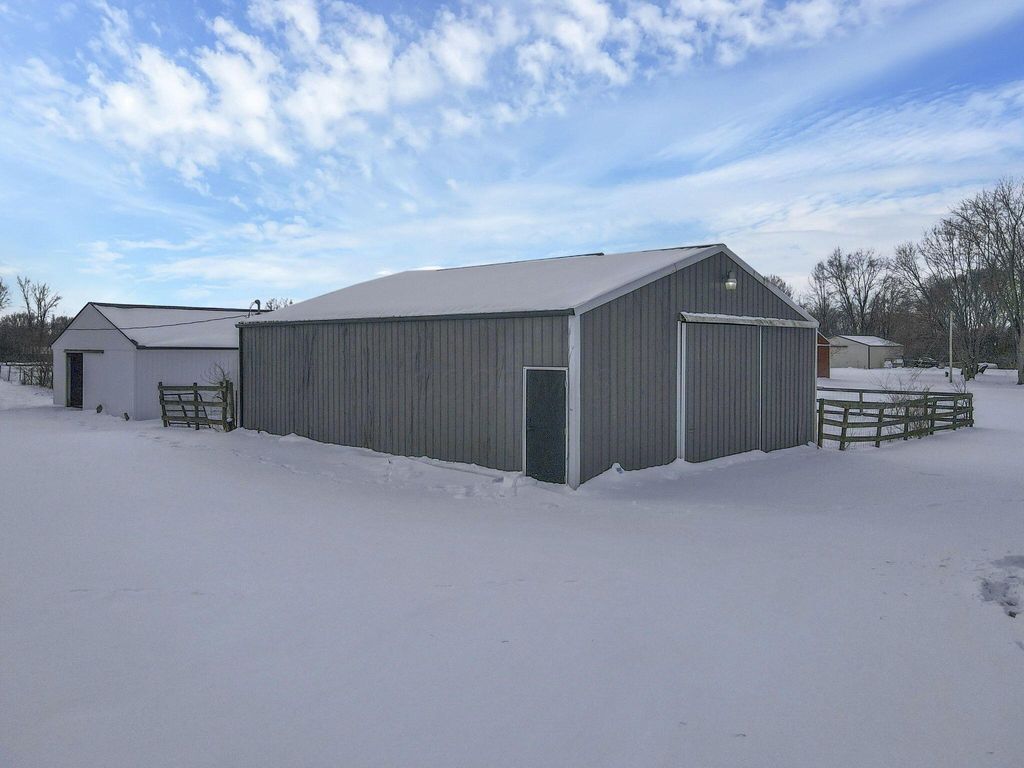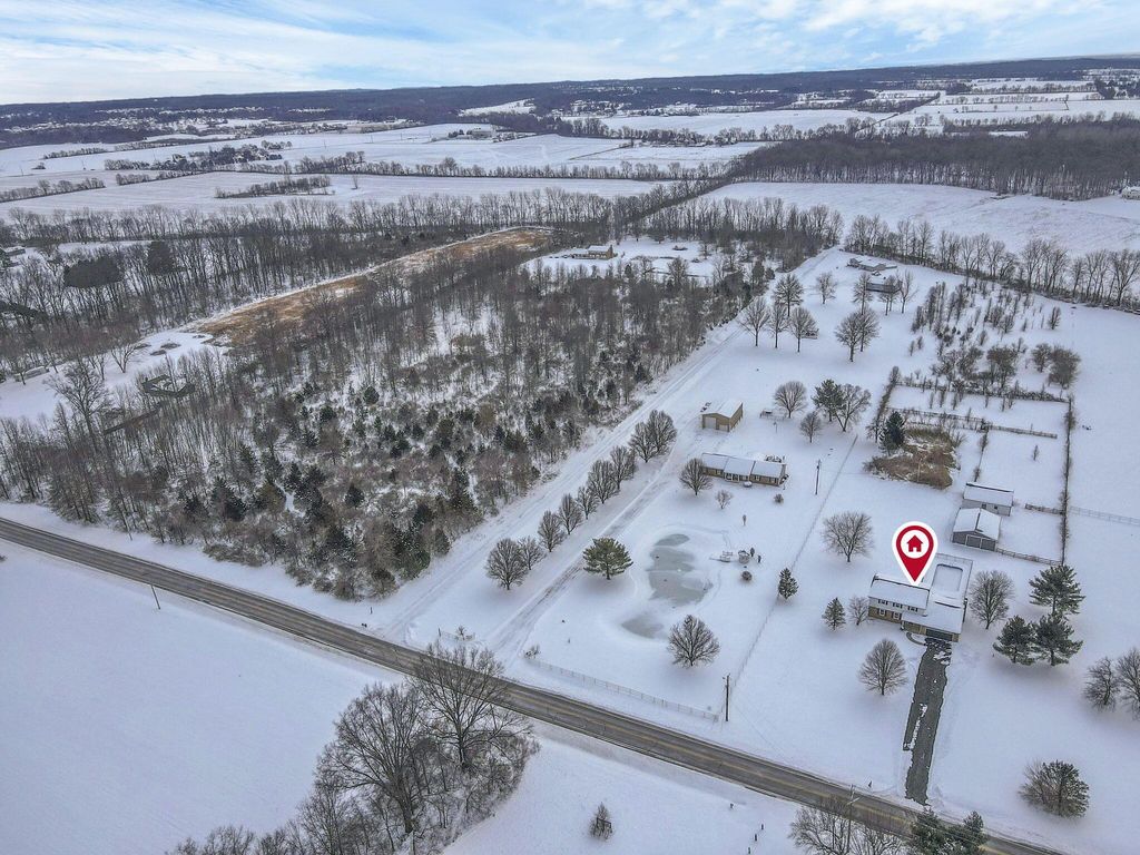Stunning, fully renovated 4 bedroom, 2.5 bath home set on a picturesque 5 acre property where all the major upgrades have already been completed for the lucky new buyer. Enjoy true peace of mind with ALL NEW ELECTRIC UTILITIES, NEW ELECTRIC PANEL & OUTSIDE DISCONNECT, ALL NEW WATER SUPPLY LINES, NEW WATER SOFTENER & PRESSURE TANK, ALL NEW LIGHT FIXTURES, SWITCHES & OUTLETS, and ALL NEW INTERIOR PAINT throughout. The exterior has been fully updated with ALL NEW ROOF on the house and rear barn, ALL NEW VINYL SIDING on both, ALL NEW WINDOWS on the home, SOME NEW EXTERIOR DOORS, NEW GARAGE DOOR AND OPENER, ALL NEW GUTTERS, and a NEW ASPHALT DRIVEWAY. The completely restored pool is ready for summer with NEW CONCRETE, NEW FENCING, NEW POOL LINER, and NEW PUMP. Inside, the home offers both a living room and a separate family room featuring a dramatic FULL WALL FIREPLACE. The gorgeous TWO-TONE KITCHEN showcases OPEN SHELVING, SOFT-CLOSE CABINETRY, GRANITE COUNTERTOPS, and NEW STAINLESS STEEL APPLIANCES. Flooring throughout is brand new with ALL NEW LVP AND TILE in main living areas and NEW CARPET in the bedrooms. The primary ensuite has been tastefully renovated with a stylish TILE SHOWER SURROUND, NEW VANITY, and UPDATED FIXTURES, while the second full bathroom has also been completely updated. A FULL BASEMENT is ready to be finished for additional living space. Outside, enjoy a fenced pasture, TWO OUTBUILDINGS with 10 HORSE STALLS, and wide-open views. A CLEAN SEPTIC INSPECTION (FRESHLY PUMPED) adds even more confidence. This move-in-ready country estate blends modern updates with serene rural living.