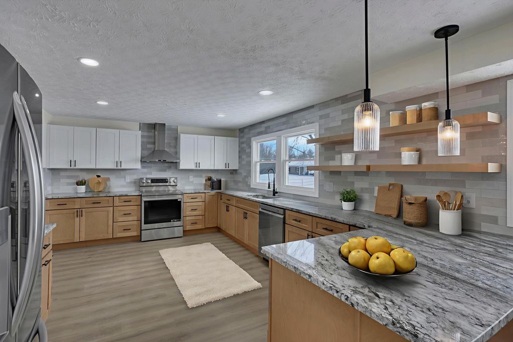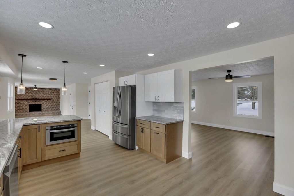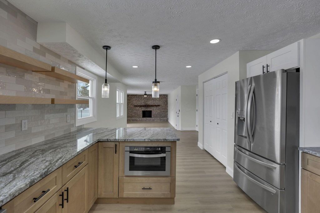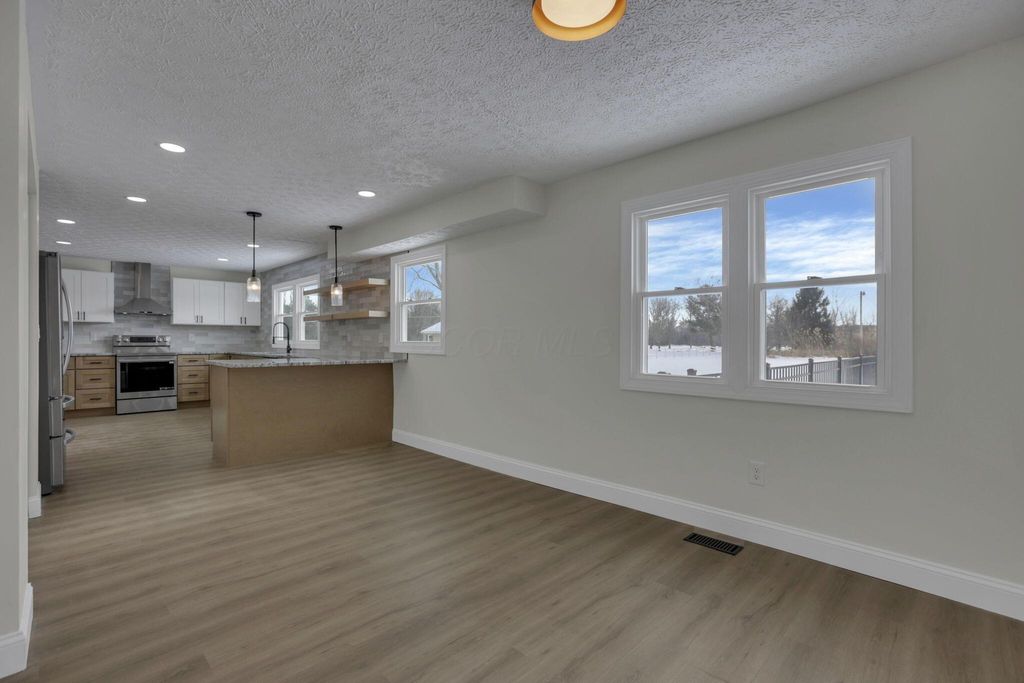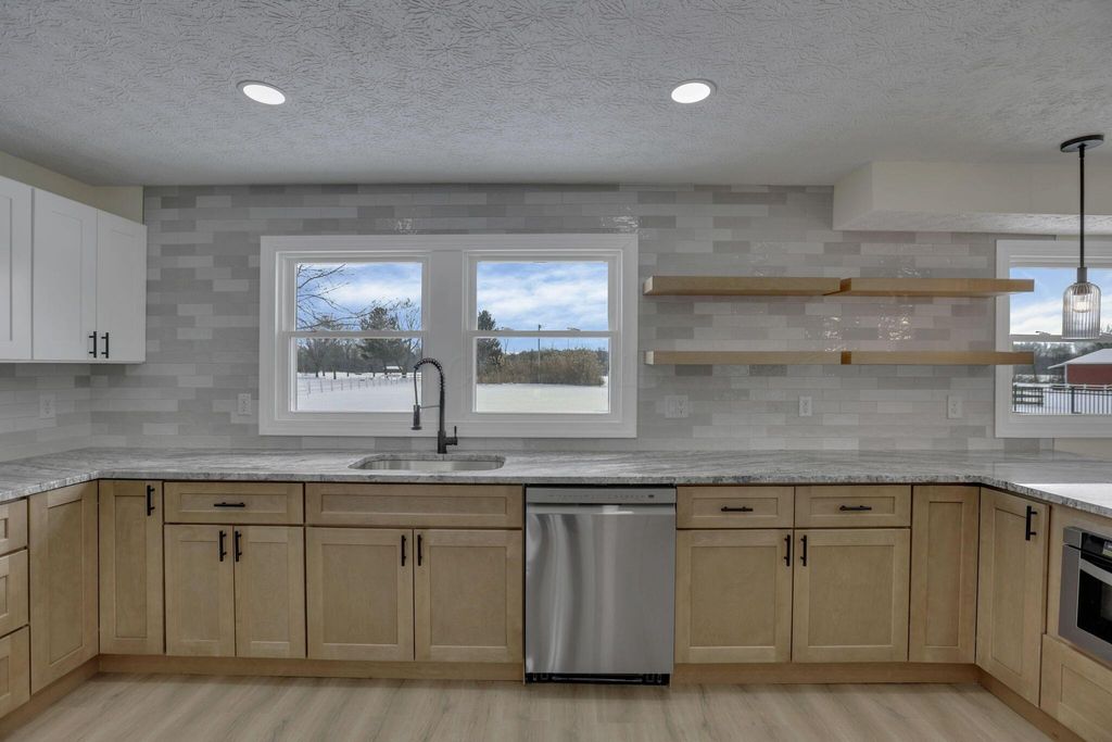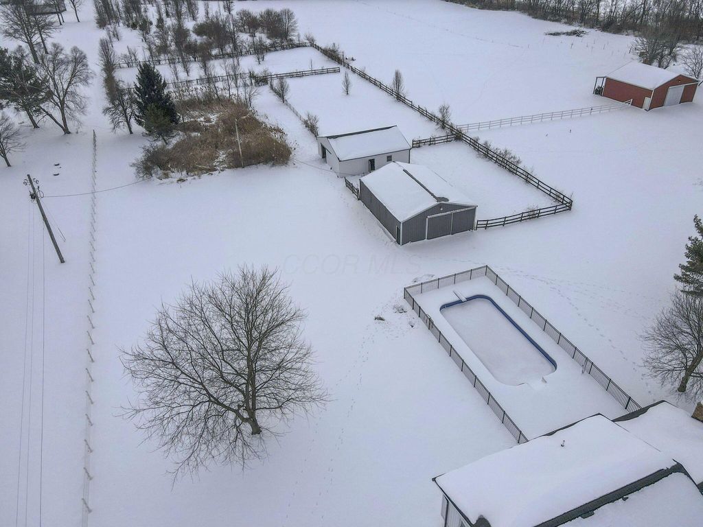 Stunning, fully renovated 4 bedroom, 2.5 bath home set on a picturesque 5 acre property where all the major upgrades have already been completed for the lucky new buyer. Enjoy true peace of mind with ALL NEW ELECTRIC UTILITIES, NEW ELECTRIC PANEL & OUTSIDE DISCONNECT, ALL NEW WATER SUPPLY LINES, NEW WATER SOFTENER & PRESSURE TANK, ALL NEW LIGHT FIXTURES, SWITCHES & OUTLETS, and ALL NEW INTERIOR PAINT throughout. The exterior has been fully updated with ALL NEW ROOF on the house and rear barn, ALL NEW VINYL SIDING on both, ALL NEW WINDOWS on the home, SOME NEW EXTERIOR DOORS, NEW GARAGE DOOR AND OPENER, ALL NEW GUTTERS, and a NEW ASPHALT DRIVEWAY. The completely restored pool is ready for summer with NEW CONCRETE, NEW FENCING, NEW POOL LINER, and NEW PUMP. Inside, the home offers both a living room and a separate family room featuring a dramatic FULL WALL FIREPLACE. The gorgeous TWO-TONE KITCHEN showcases OPEN SHELVING, SOFT-CLOSE CABINETRY, GRANITE COUNTERTOPS, and NEW STAINLESS STEEL APPLIANCES. Flooring throughout is brand new with ALL NEW LVP AND TILE in main living areas and NEW CARPET in the bedrooms. The primary ensuite has been tastefully renovated with a stylish TILE SHOWER SURROUND, NEW VANITY, and UPDATED FIXTURES, while the second full bathroom has also been completely updated. A FULL BASEMENT is ready to be finished for additional living space. Outside, enjoy a fenced pasture, TWO OUTBUILDINGS with 10 HORSE STALLS, and wide-open views. A CLEAN SEPTIC INSPECTION (FRESHLY PUMPED) adds even more confidence. This move-in-ready country estate blends modern updates with serene rural living.