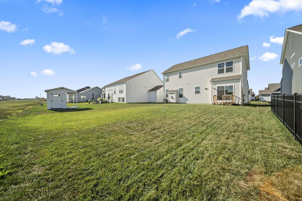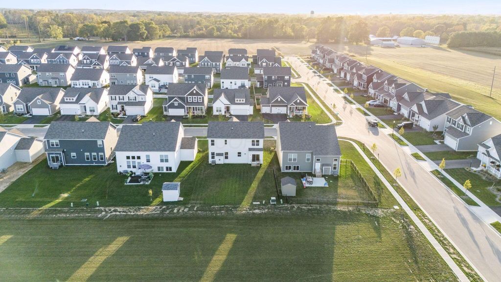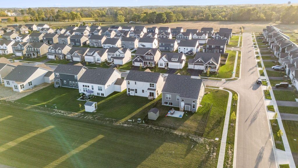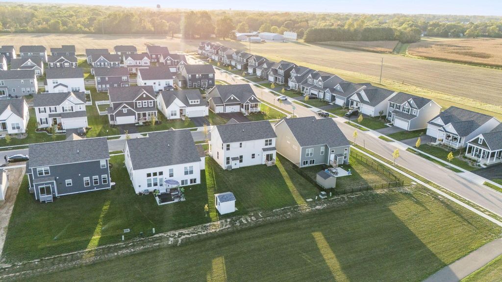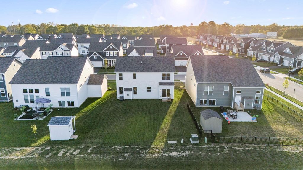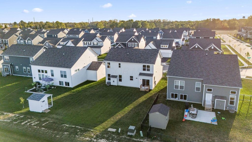 Welcome to 1325 Conductor Drive in Plain City, OH. This beautifully maintained home was built in December 2024 and offers all the benefits of new construction without the wait. Featuring 3 bedrooms, 2.5 bathrooms, and a 2-car garage, this property combines modern design with thoughtful functionality. Step inside to find an open floor plan with luxury vinyl plank flooring, a gas fireplace, and a first-floor study with French glass doors. The bright kitchen includes white cabinetry, quartz countertops, stainless steel 2024 appliances, a vented range hood, and a bay window overlooking the green space behind the home. Upstairs, you'll find three spacious bedrooms, a versatile loft area, and a convenient second-floor laundry room. The owner's suite features vaulted ceilings, a walk-in closet, and a private bath with dual sinks, a tile shower, and a Corian seat. Every detail feels brand new, from the roof and mechanicals to the appliances and fixtures, all completed in 2024. The exterior offers a beautiful stone water table and excellent curb appeal. The full unfinished basement includes a rough-in for a future full bathroom, providing an opportunity for additional living space or storage. This community offers connected paths, a pool, and a playground for residents. Located within the Jonathan Alder School District and just a few miles from downtown Plain City, the home provides convenient access to State Route 161, U.S. 33, and surrounding areas. Enjoy the comfort, convenience, and quality of a nearly new home that's ready for you from day one. Move in today!