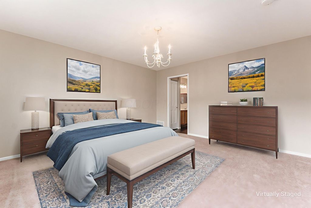 Welcome to this beautifully maintained ranch condominium located in the desirable Highland Meadows. As you enter through the front door, you'll be greeted by a spacious great room perfect for relaxing evenings. The kitchen is equipped with stainless steel appliances, pendant lighting, quartz counters and white cabinets, providing ample storage and style. The generous primary bedroom includes an en-suite bathroom with a double vanity and a walk-in shower, offering a private retreat. Both bedrooms boast large closets, and large windows that fill the space with natural light. An attached one car garage provides convenient additional storage space above. Move in ready with fresh paint and carpet. This charming condo is situated close to restaurants, shops, and everything Hillard has to offer.