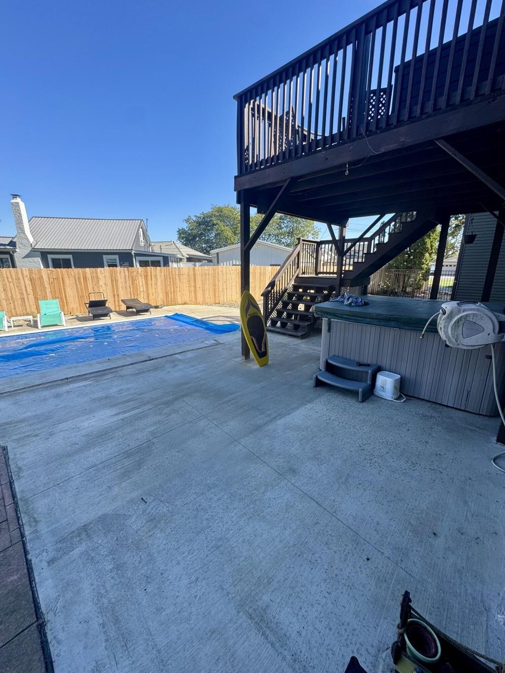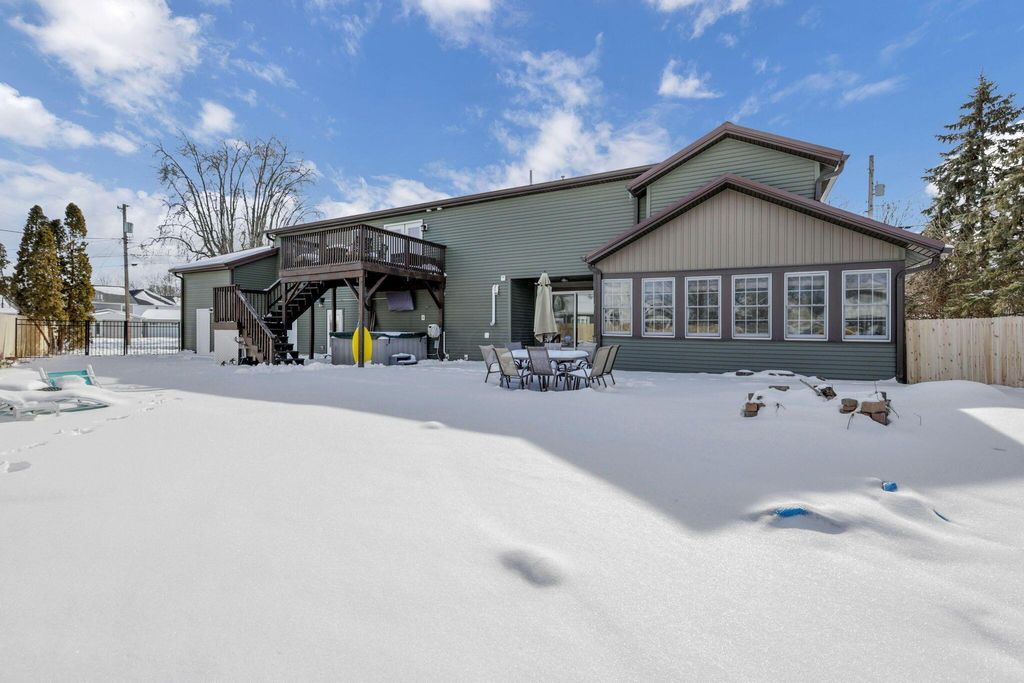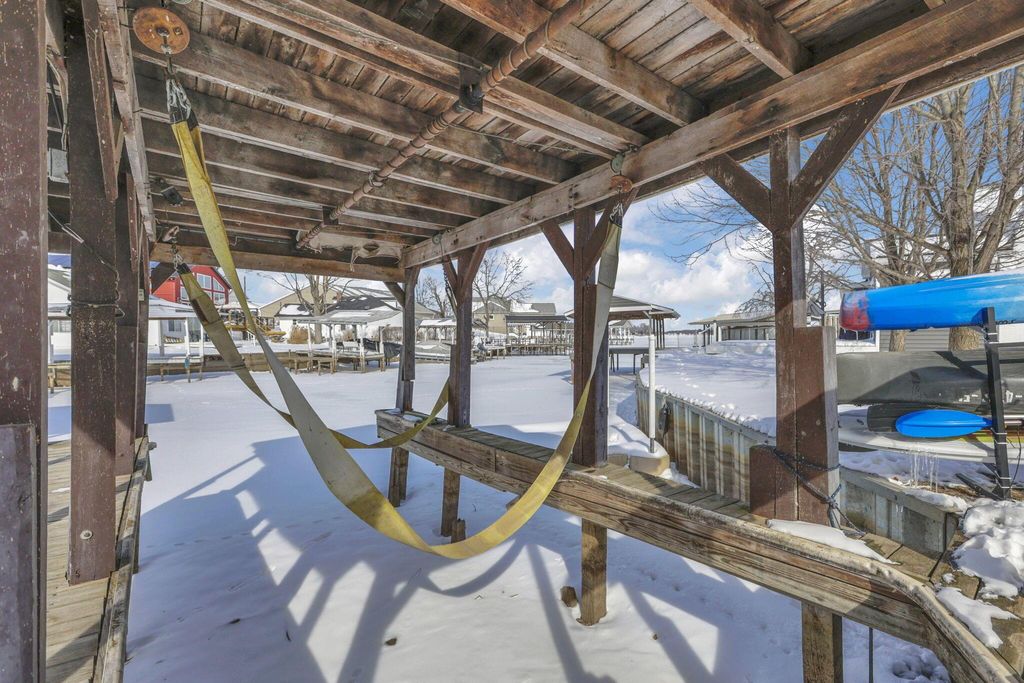 Stunning 3,818 sq ft lakefront home offers expansive breathtaking views with four-season enjoyment. This 4-bedroom, 3-full bath residence features a show stopping 1500sq ft primary suite with private balcony and new maple wood flooring. Large walk -in his and her closets and private washer and dryer hook-up. The first -floor full bath was updated. Kitchen consists of gorgeous new granite countertops with a new faucet and gas stove. New drywall installed throughout, as well as freshly painted walls. Enjoy year-round entertaining with newly added pool (2025), hot tub, gas fireplace and new private fencing with landscape including new concrete by the pool. Boaters will love the boat garage with automatic lift, (updated 2025) while 2-car attached garage adds convenience. Two- hvac systems one installed in 2022 and the other 2026, ideal for cozy winter nights and unforgettable lakefront living in every season. Converts everyday living into a permanent oasis. Agent owned.