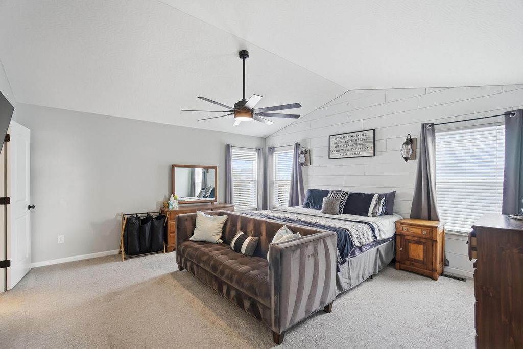 Open, modern layout with flexible living areas in this inviting 4-bedroom, 2.5-bath home with a loft and full basement. The spacious eat-in kitchen features quartz countertops and a walk-in pantry, ideal for everyday living and entertaining. Cozy up in the living room with a gas fireplace, or retreat to the primary suite showcasing vaulted ceilings with shiplap detail. The full basement is ready to be finished and offers the potential for over 1,200 sq ft of additional living space. The home also includes a basement rough-in, creating an easy opportunity to add a bathroom in the lower level. Amenities also include tankless water heater, water softening system, EV charger in the garage, fenced backyard, and concrete patio for outdoor living.