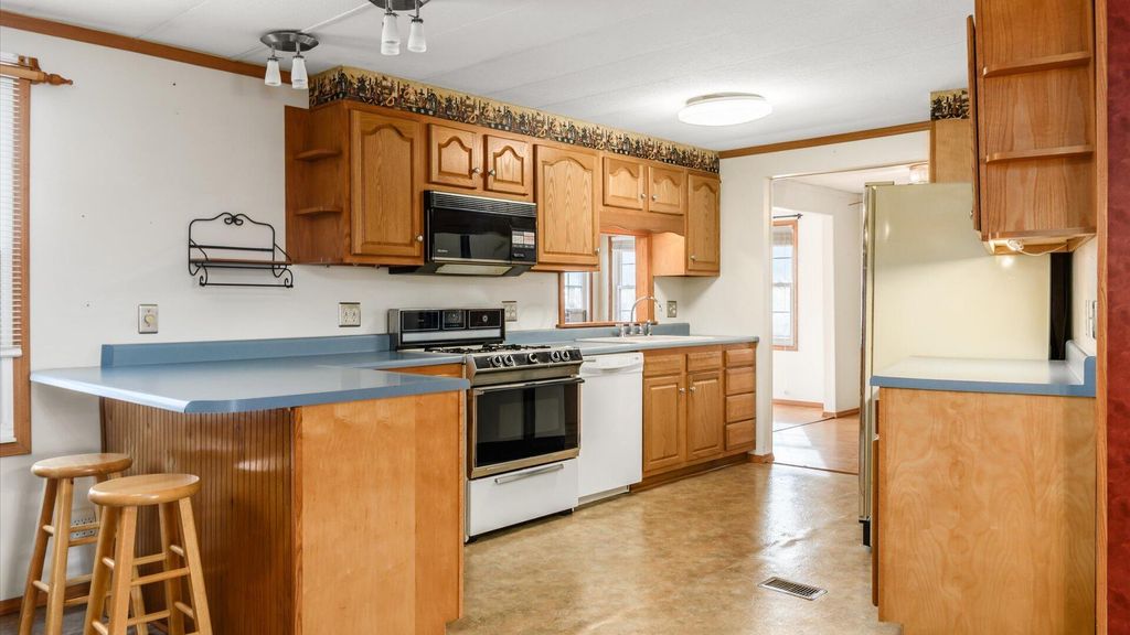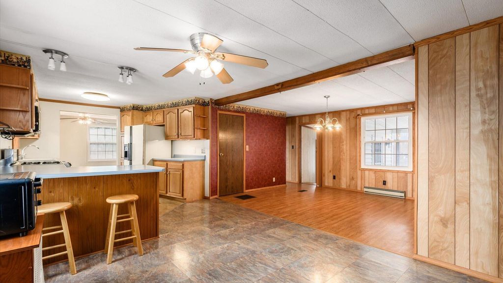This property blends country living with practical features, generous square footage, and flexible spaces"”perfect for those seeking a peaceful lifestyle with room to grow, work, and enjoy the outdoors. Nestled in a rural, rolling, and truly picturesque setting, this expansive double-wide home with multiple additions offers space and versatility on approximately 1.5 acres. With nearly 2,100 square feet of living space, the home features a welcoming covered front porch and a covered back porch"”perfect for enjoying peaceful mornings and quiet country evenings. Inside, the layout is designed for both everyday living and gatherings. A spacious family room flows open into the living room, creating a central living area with doors to the back deck. The kitchen is open to the dining room with an eating bar and peninsula, offering ample workspace, seating, and storage. The bedroom suite provides a comfortable retreat with privacy. A side-load attached garage adds convenience and functionality, while multiple outbuildings offer endless possibilities for storage, hobbies, workshops, or small livestock. The gently rolling land enhances the home's charm, providing to roam while still feeling manageable.