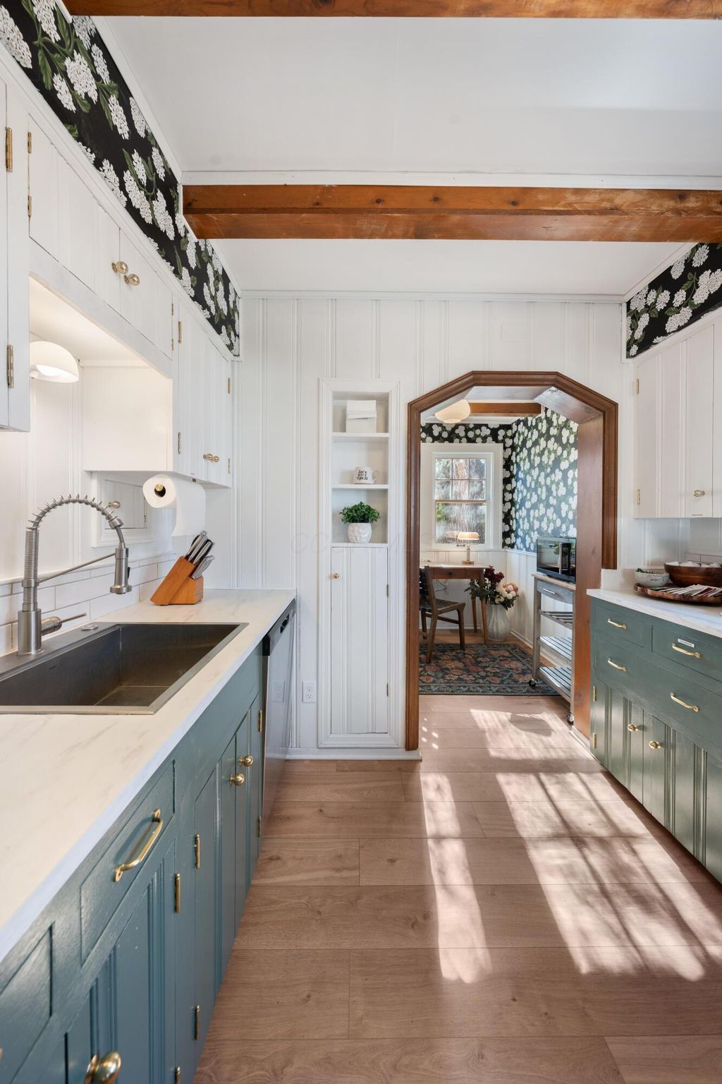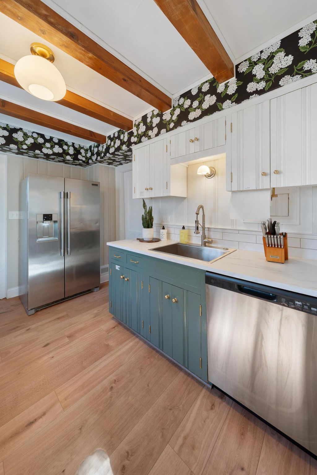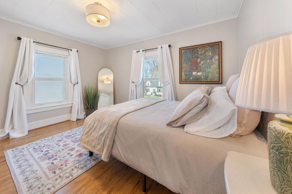 Newly updated 1920's 2 story home with an abundance of charm on a quiet corner lot. House has fresh paint and wallpaper top to bottom and freshly refinished hardwood floors. The home has an ample and private back yard with detached 2 car garage. Updates: Updated Bath with new tile, flooring, pedestal sink* Updated kitchen and new stainless appliances* New electric service and wiring, receptacles, and lights throughout the house Seller is installing a new furnace