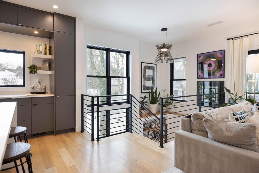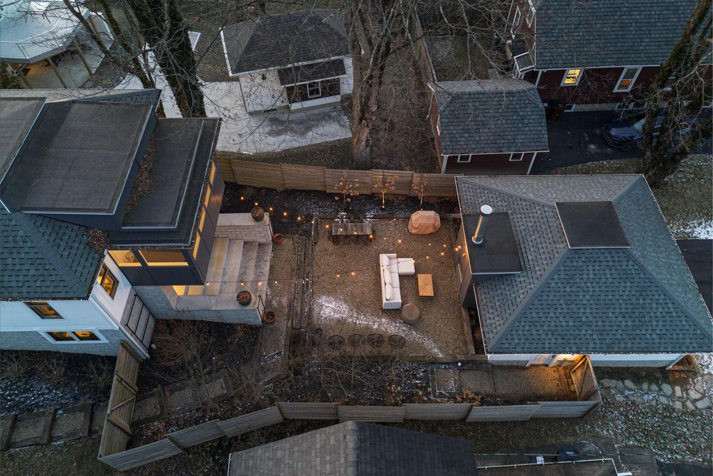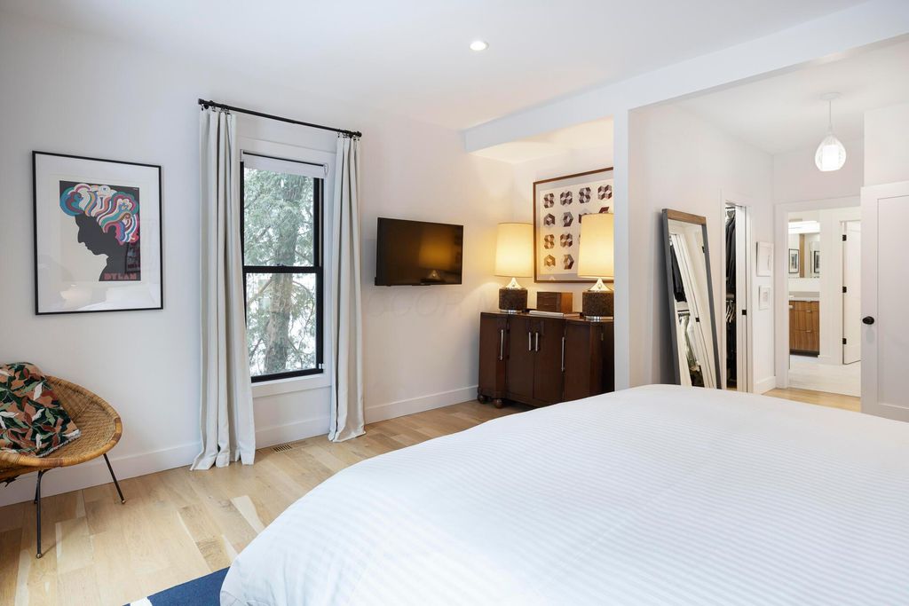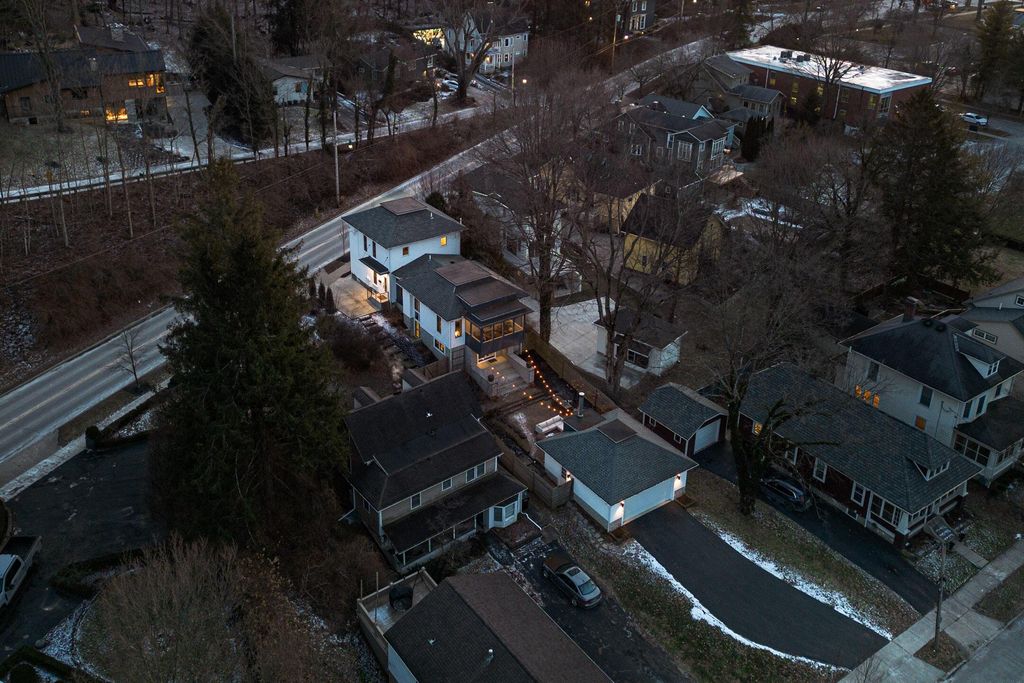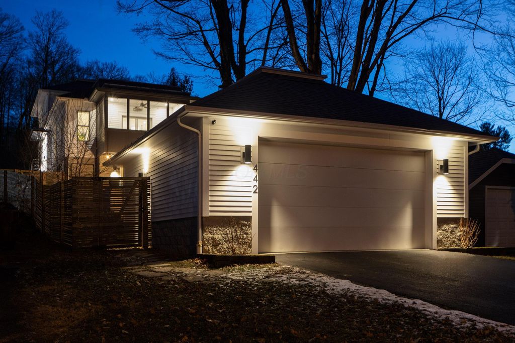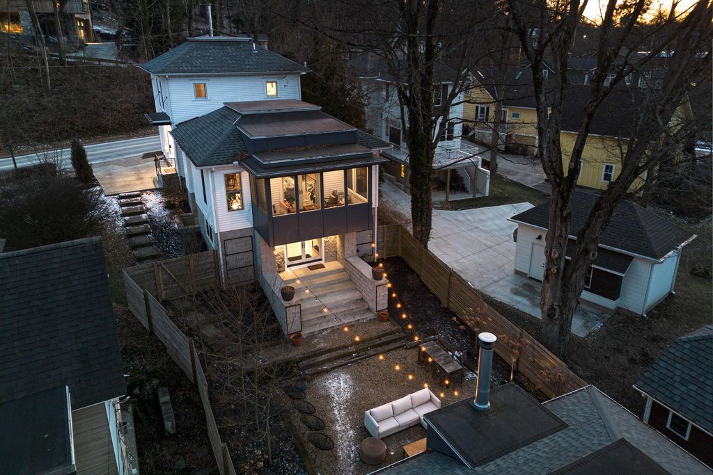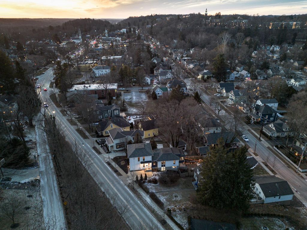 Experience the pinnacle of village living situated in the heart of historic downtown Granville, and Granville Schools. This 4-bedroom, 3.5-bath residence (3,525 sqft) occupies a rare lot connecting Broadway to College Street. Designed by Pete Foster and meticulously executed by Stone Pillar Construction, the home showcases an extraordinary standard of craftsmanship. The interior begins with a foyer leading to a gallery hallway with white oak floors that extend throughout the main level. The chef's kitchen features stainless steel appliances, an eat-in space, and a waterfall quartz island that flows into the great room and private screened balcony. The main-level primary suite is a private retreat featuring dual walk-in closets and an ensuite with two separate vanities and a glass-enclosed walk-in shower. Original wood floors lead to the second level with two bedrooms and a dual-vanity bath. The walk-out lower level provides direct outdoor access and includes a modern wet bar, a custom built-in office (2021) with integrated shelving, a full guest suite, and a laundry room. Outside, a private oasis awaits with new custom landscaping (2025) and a fenced backyard with a detached 2-car garage. Updates include: Custom Built-in Office (2021), New Fence (2021), New Washer and Dryer (2025), Custom Backyard Landscaping (2025), and Freshly Painted Front Exterior, front door and railings railings (2025).