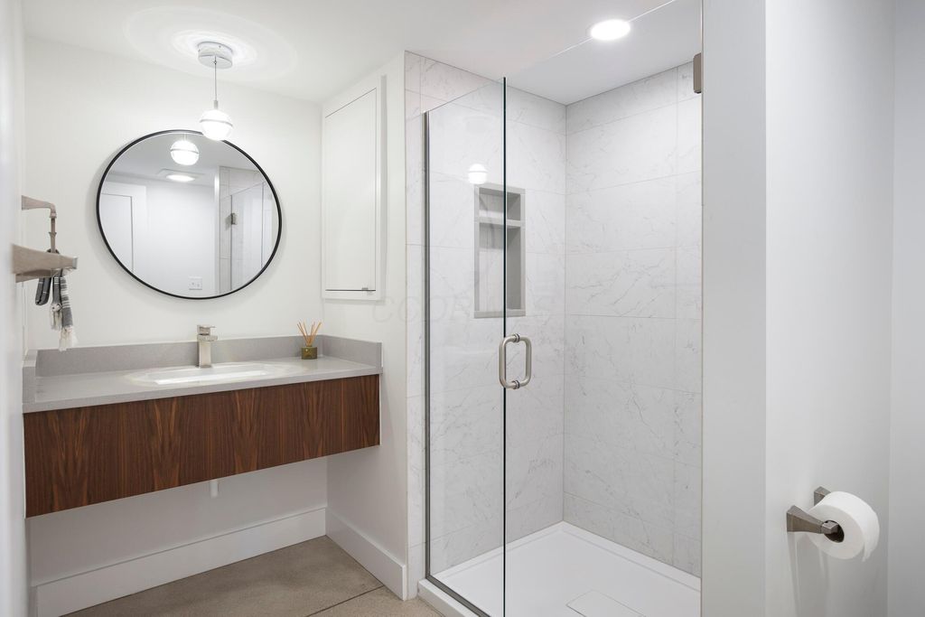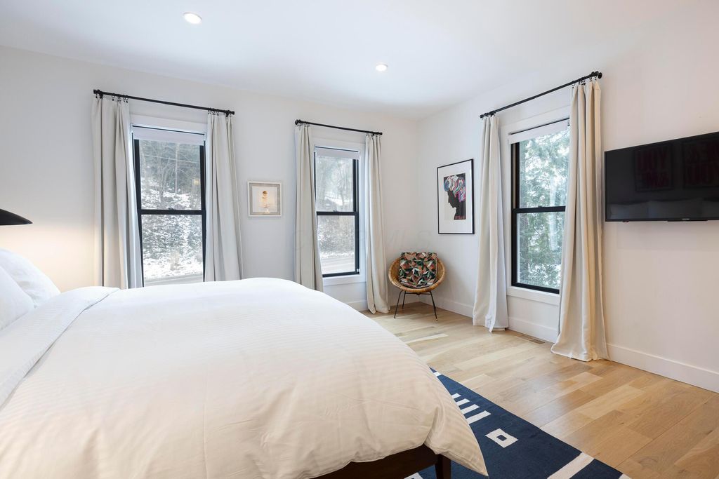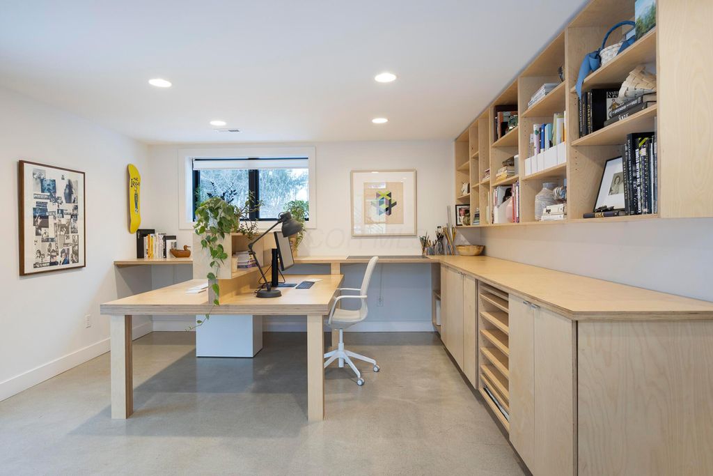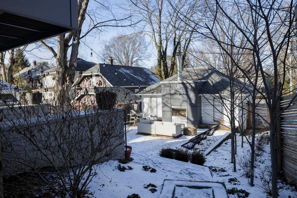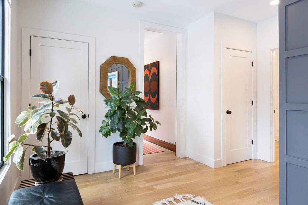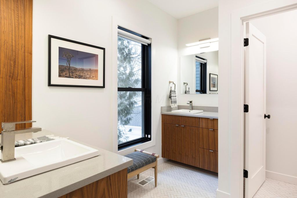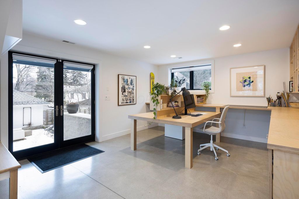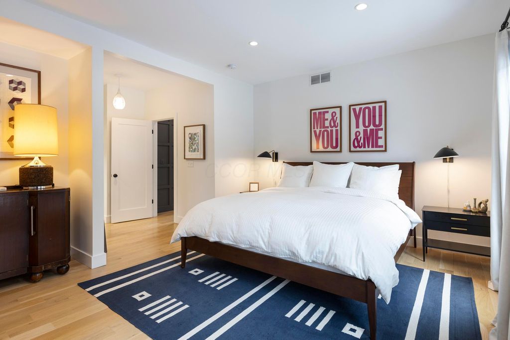 Experience the pinnacle of village living situated in the heart of historic downtown Granville, and Granville Schools. This 4-bedroom, 3.5-bath residence (3,525 sqft) occupies a rare lot connecting Broadway to College Street. Designed by Pete Foster and meticulously executed by Stone Pillar Construction, the home showcases an extraordinary standard of craftsmanship. The interior begins with a foyer leading to a gallery hallway with white oak floors that extend throughout the main level. The chef's kitchen features stainless steel appliances, an eat-in space, and a waterfall quartz island that flows into the great room and private screened balcony. The main-level primary suite is a private retreat featuring dual walk-in closets and an ensuite with two separate vanities and a glass-enclosed walk-in shower. Original wood floors lead to the second level with two bedrooms and a dual-vanity bath. The walk-out lower level provides direct outdoor access and includes a modern wet bar, a custom built-in office (2021) with integrated shelving, a full guest suite, and a laundry room. Outside, a private oasis awaits with new custom landscaping (2025) and a fenced backyard with a detached 2-car garage. Updates include: Custom Built-in Office (2021), New Fence (2021), New Washer and Dryer (2025), Custom Backyard Landscaping (2025), and Freshly Painted Front Exterior, front door and railings railings (2025).