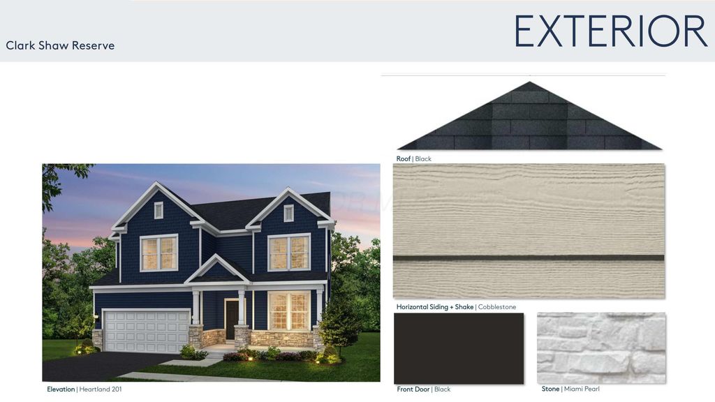 ESTIMATED COMPLETION BY THE END OF MAY. This is a stunning new 4 bed 2.5 bath home in Clark Shaw Reserve. The kitchen has built in stainless Whirlpool gas appliances, landen maple quill cabinets, miami vena quartz counters, stagecraft arctic white tile backsplash, an upgraded black metallic composite undermount sink with a sleek moen faucet, a large island with space for seating, crosby pendant lighting, a huge walk-in pantry and a planning center. The owners suite has a tray ceiling and a private bath with a double bowl vanity, miami vena quartz counter, calacatta empire tile walk-in shower, a separate tub, enclosed toilet area and a spacious walk-in closet. An add'l 3 beds with walk-in closets, a hall bath with a double bowl vanity/blanco maple quartz counter, a laundry, multi use loft and storage space. An 2 story great room with a gorgeous fireplace/bianco white marble surround and an upgraded white kenwood mantel, an eating space, light filled sunroom, formal dining space, versatile flex space with french doors, a powder room and 2 car garage with storage space. Full 9' unfinished basement with rough in plumbing and an egress window. Beautiful corner lot. Luxury vinyl plank flooring throughout the main level. Black fixtures and finishes. Rail and wrought iron spindles. Smart home features included. Serene suburban setting with easy access to everyday conveniences. Interior photos are from a model, not the actual home.