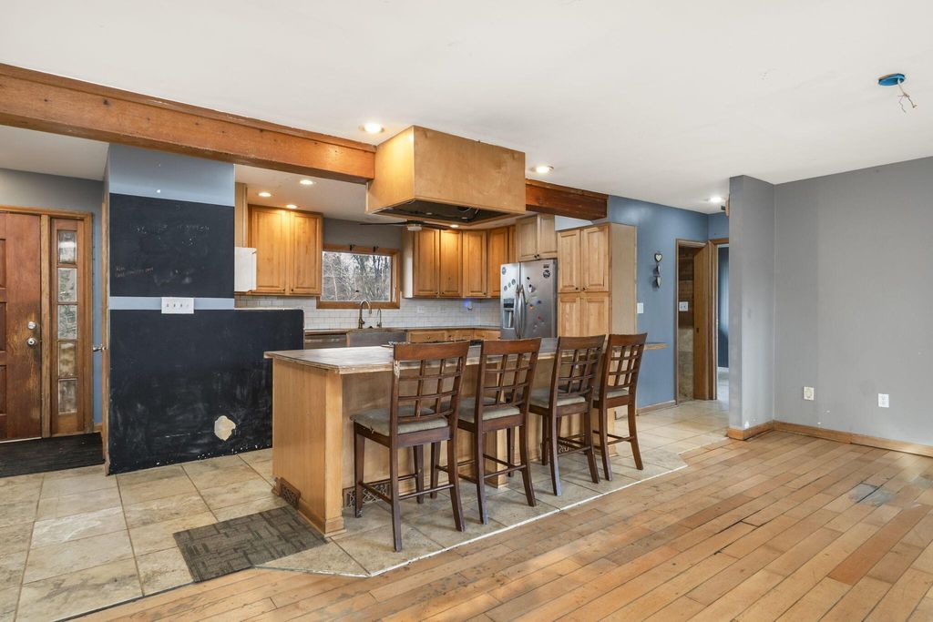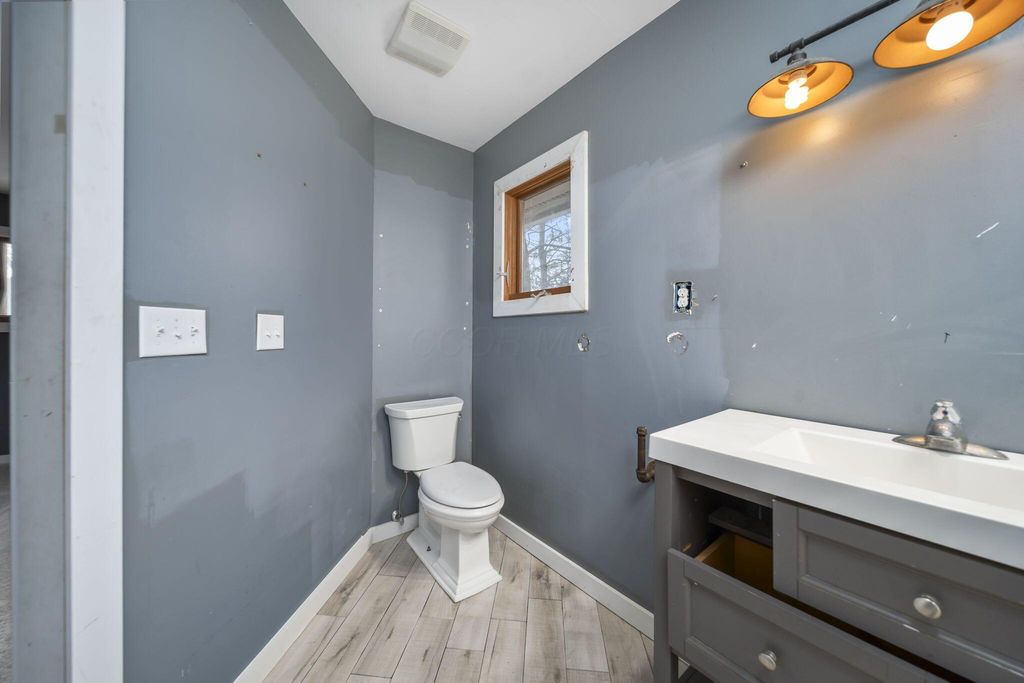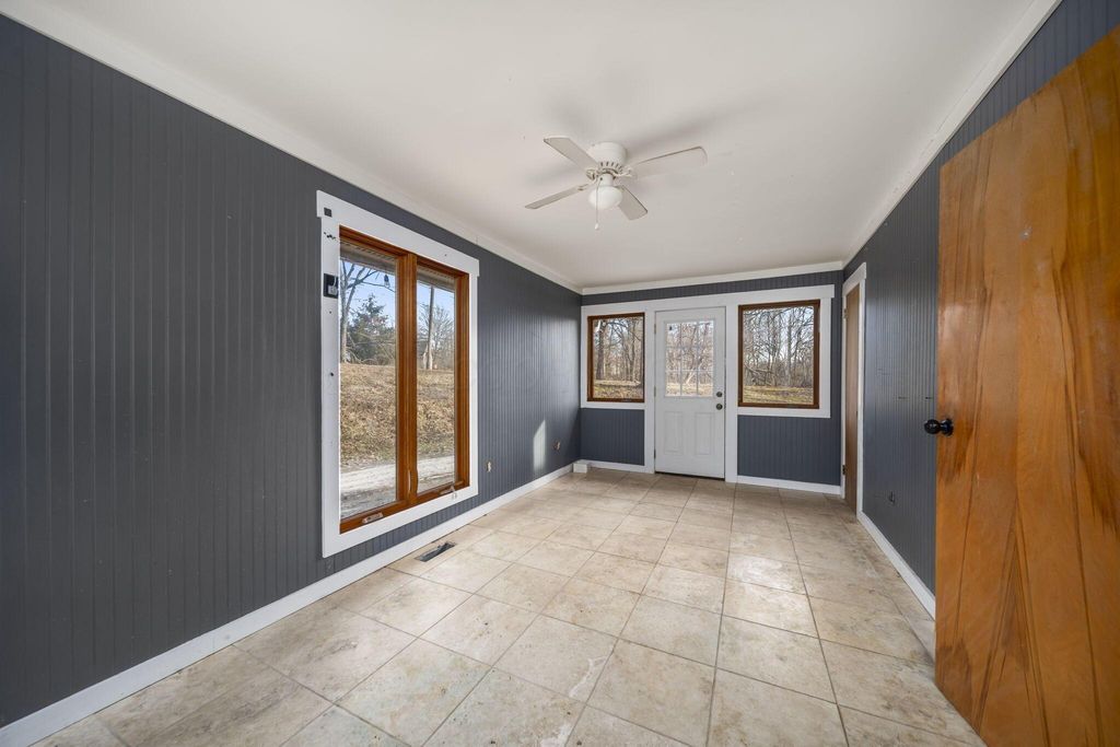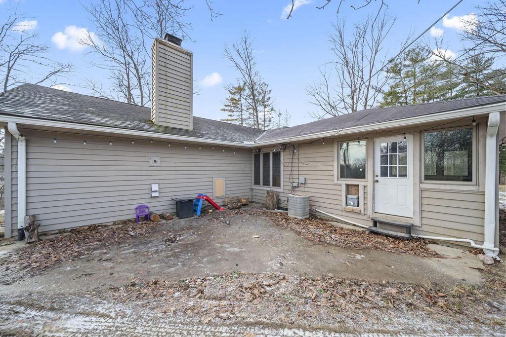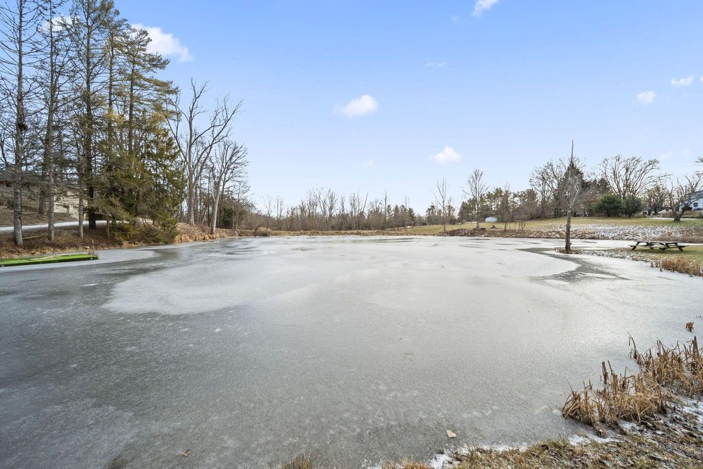 Rare opportunity in Granville Schools on nearly 7 acres (6.86) offering a peaceful, private setting with a stocked pond, wooded surroundings, a greenhouse, and a 40x60 outbuilding. The hillside ranch features an open floor plan with main-floor living and a walk-out lower level. Spacious great room with impressive stone fireplace, skylights and built-in shelving. The space has a warm, cabin or lodge-like feel with excellent natural light. The home offers 3-4 bedrooms, with the fourth bedroom ideal as a flex space or home office, and 2½ baths on the main level. The walkout lower level is plumbed for an additional half bath and provides space for a future rec room. Additional features include an on-demand gas water heater. Exceptional outdoor living with a greenhouse accessible from both inside and outside the home, a patio and an expansive pond ideal for fishing or simply enjoying peaceful water views and abundant wildlife. The approximately 40x60x14 outbuilding is insulated and equipped with water and thermostat-controlled gas heat, making it well suited for a hobbyist, mechanic, workshop, or boat and camper storage. This property needs work and is priced accordingly and has already been appraised. This is a great alternative to building new: avoid major land improvement costs, renovate on your timeline, and be settled before the next school year at the end of summer. An opportunity to restore, reimagine, and make it your own.
