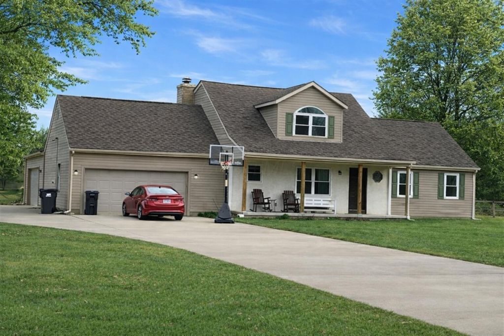 Welcome home to this stunning 4 bedroom, 2.5 bath home situated on over an acre of land, offering the perfect blend of peaceful country living with a convenient distance to Columbus! Major updates since 2021 include new windows, HVAC, LVP flooring, carpet, appliances, countertops, and backsplash. This home features 1st floor laundry and a rare 4 car garage! The spacious kitchen offers beautiful custom countertops, ample cabinetry, and a large eat-in area. Enter the warm living room with a wood burning fireplace and sliding doors to the patio, ideal for cozy nights at home. The owners suite has generous closet space and a vanity area to get ready for your day! The unfinished basement provides endless potential for a family/playroom, office, or entertainment space. Upstairs, you'll find 3 large bedrooms with great storage options. If you're into cars, looking for an outside entertainment space, or additional storage, boy is this garage is for you! There is endless space for activities! Out back, enjoy the private, fenced in yard with a covered patio and relaxing firepit area. This beautiful home offers space, flexibility, and privacy both inside and out. You don't want to miss this stunner!