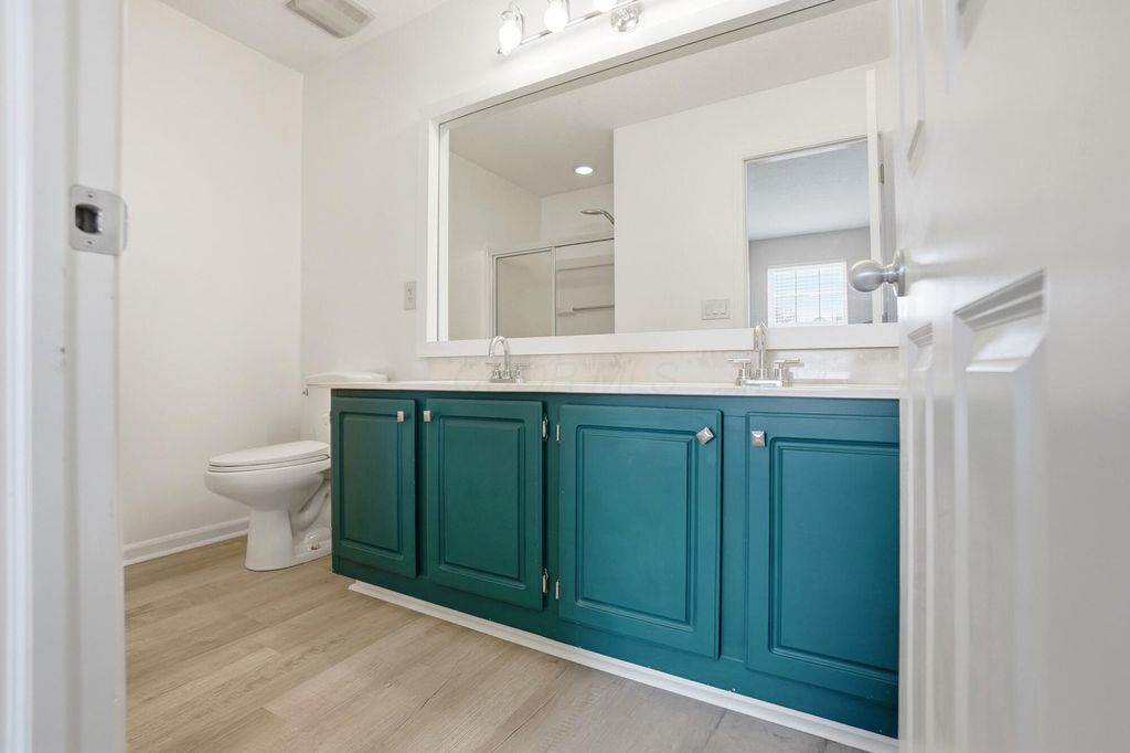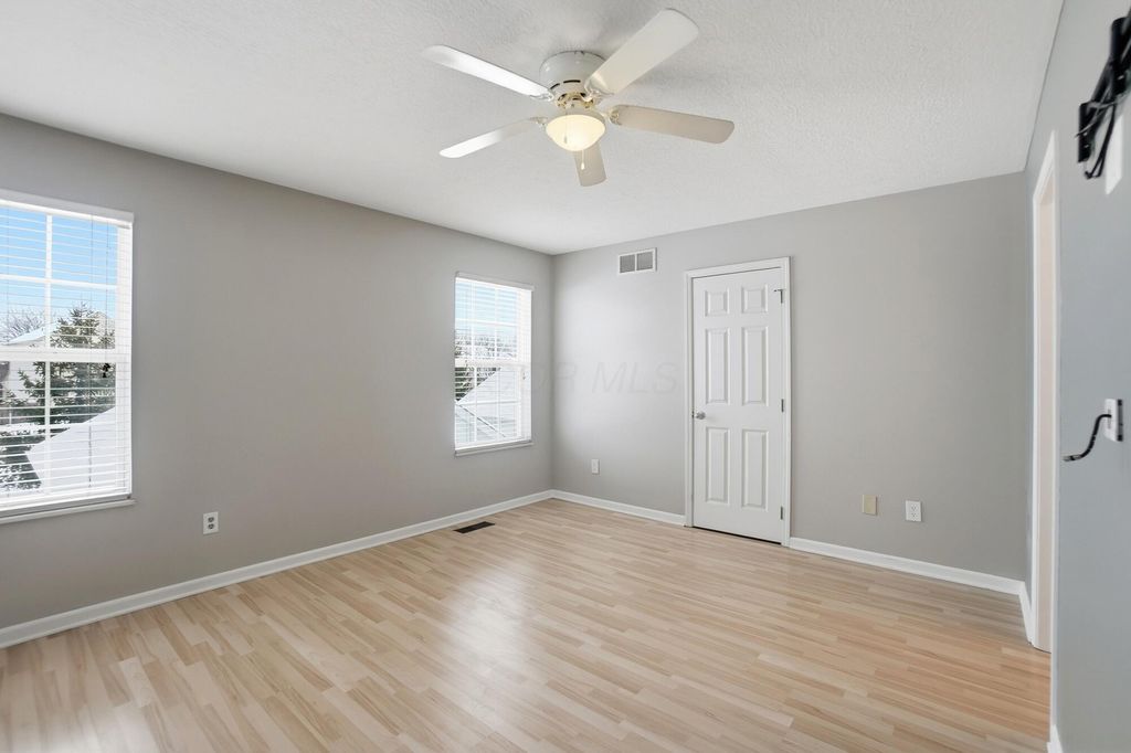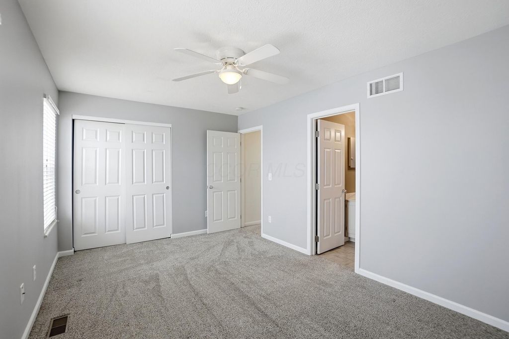 Affordable, beautiful and convenient describes this lovely condominium in Scioto Meadows! This home features 2 primary suites, each boasting a large bedroom, a large full bath and closet located on the upper level separated by the laundry area hallway. The entry level contains an oversized living room with french doors leading to the fenced patio area and private entrance to the garage. The half bath is located near the front entrance and the galley style kitchen features a large pantry area and breakfast bar! Just a few steps away outside is a large, gorgeous lake, an abundance of walking paths, and a clubhouse with fitness area and pool too! All of this with maintenance free living for under $200,000 in an incredible country feel location but close to parks, amenities, freeways and Grove City shopping, dining, and golfing areas!