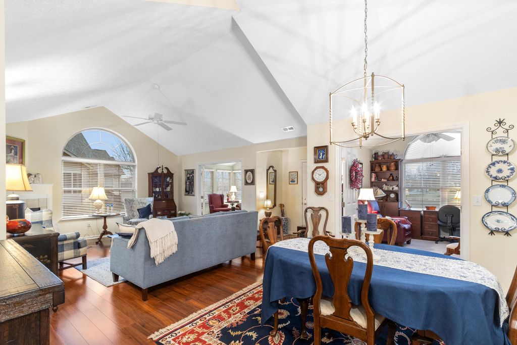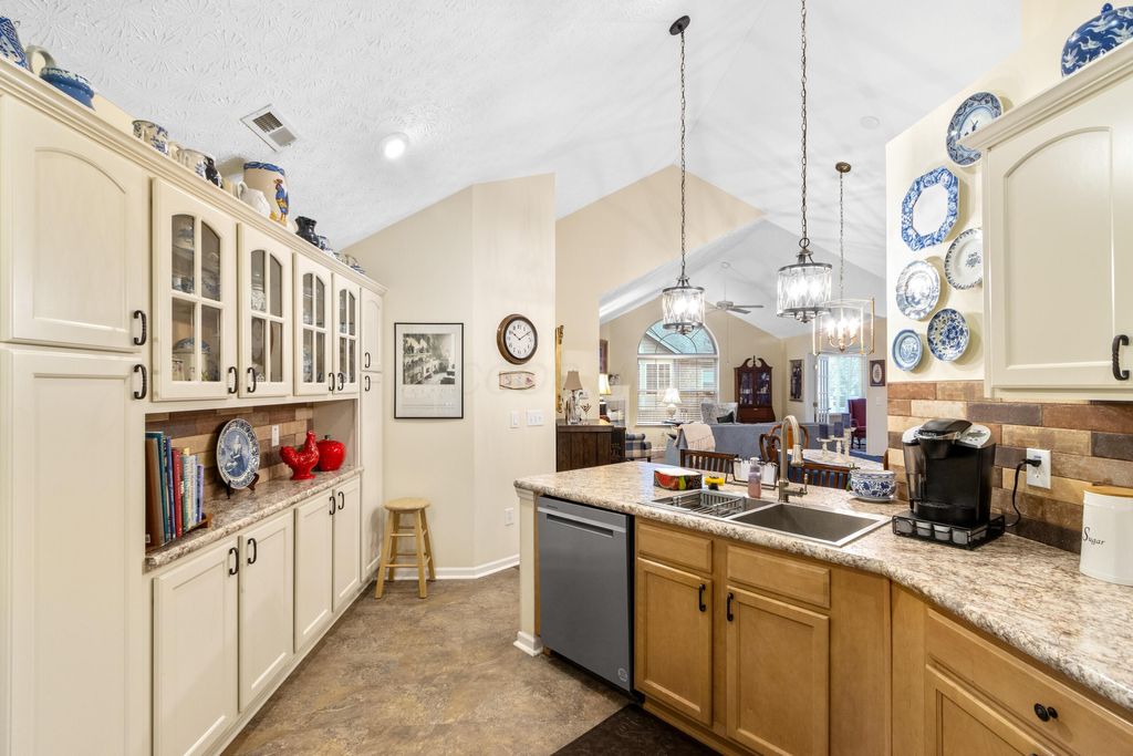 Welcome to 531 Ruddington Lane"”this beautifully maintained condo truly has it all. Step inside to a spacious great room featuring a gas log fireplace and expansive windows that flood the space with natural light. The adjacent dining area comfortably accommodates a large table, with additional room for a china cabinet or sideboard"”perfect for entertaining. The renovated kitchen is a standout, offering abundant cabinet and counter space along with updated appliances. The primary bedroom is generously sized and includes a large en suite bath and a walk-in closet. A second bedroom features its own full bath, complete with a walk-in tub. French doors enclose the den, providing privacy and flexibility to serve as a home office or third bedroom. The four-season room adds even more living space, surrounded by windows and offering lovely views of the community pond. Additional storage is available with a dedicated space off the laundry room, pull-down attic access, and an oversized two-car garage. Located in The Villas at Canterbury Woods, residents enjoy access to a vibrant community with social, recreational, and fitness activities, as well as a clubhouse and pool.