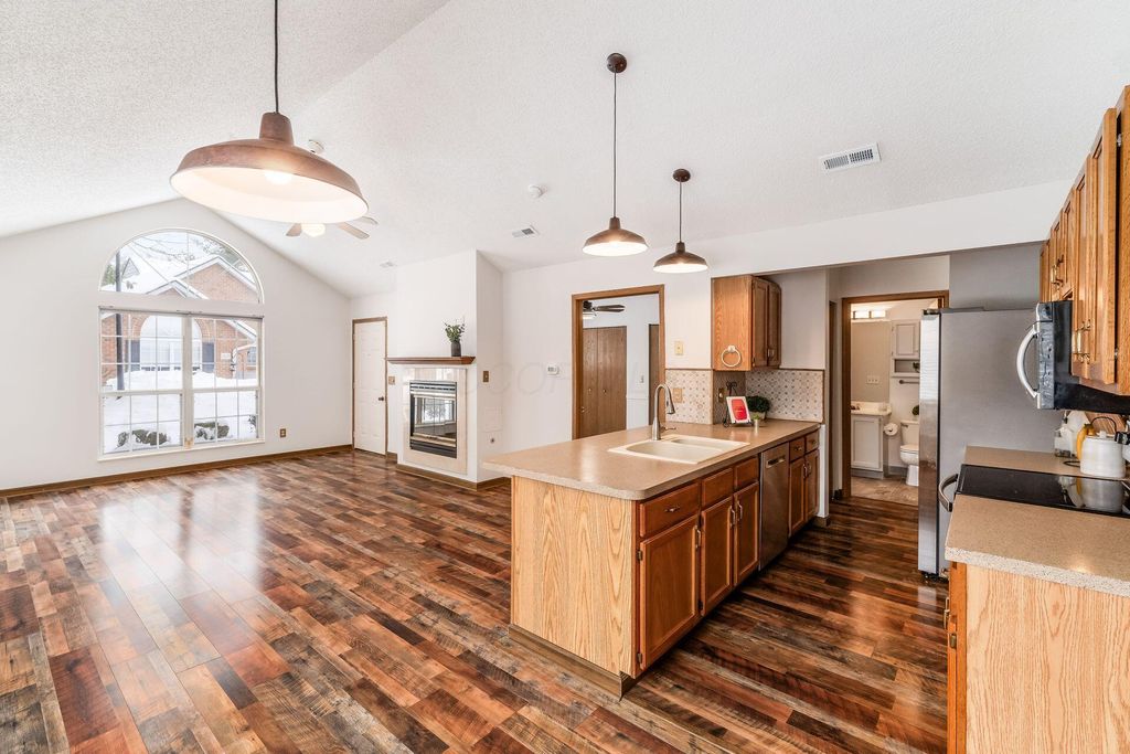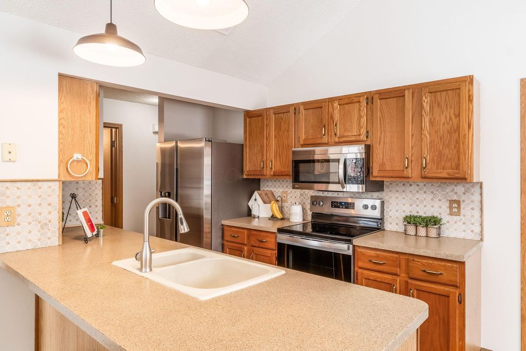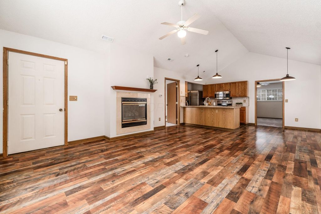 Nicely maintained ranch-style end-unit condominium located in the quiet Blendon Grove community. Ideally situated in Gahanna with convenient access to I-270, Route 161, and within the Westerville School District. The home has been freshly painted and features new flooring throughout. A beautiful open floor plan is highlighted by soaring cathedral ceilings, creating a bright and inviting living space. The eat-in kitchen offers newer appliances and generous cabinet and storage space. Both bedroom suites include large closets and private en-suite baths, providing comfort and privacy. Enjoy entertaining on the front patio or unwinding on the private back porch overlooking Blendon Park. Additional highlights include a first-floor utility room with washer and dryer, a one-car garage, and ample guest parking. This move-in-ready home offers the ease of low-maintenance, first-floor living"”simply move in and enjoy.