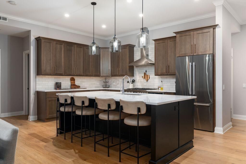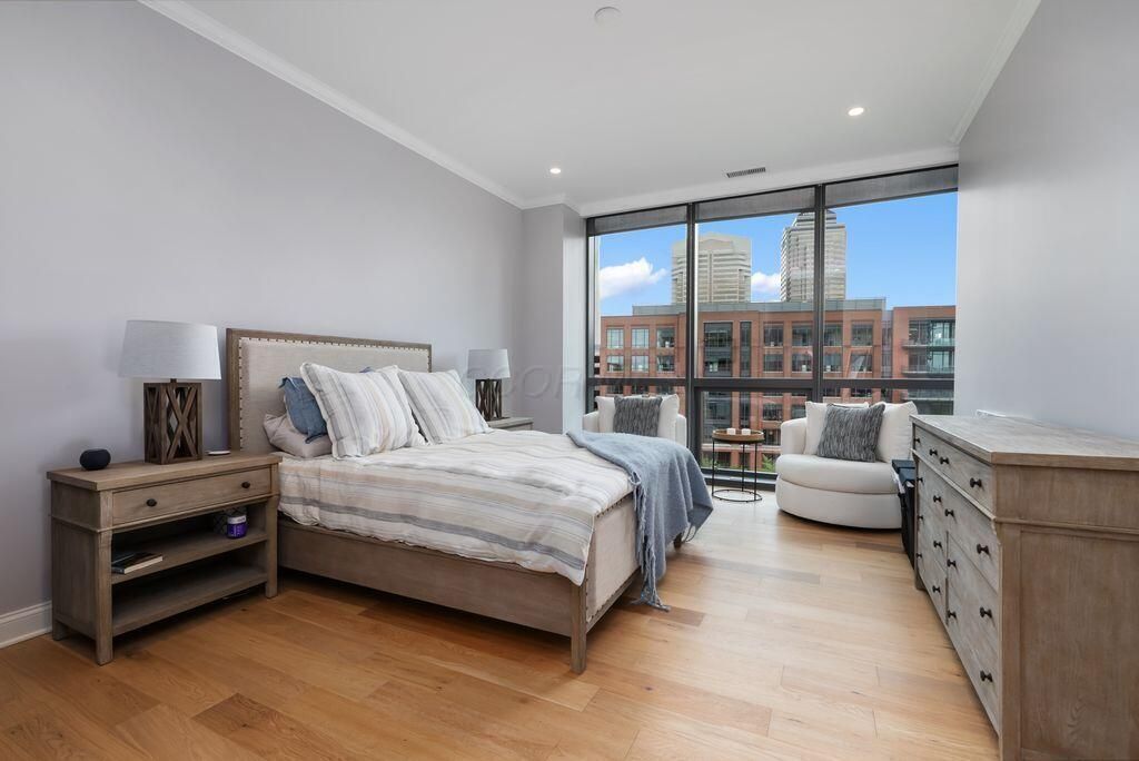 Rare, like-new 3 bedroom, 3 bathroom condo in the newest Parks Edge building - located in the heart of the Arena District! This gorgeous single-level condo offers nearly 2,200 sqft of living space with a spacious & open custom layout including 3 bedroom suites w/en suite bathrooms & spacious closets, an office nook + large pantry! The kitchen offers beautiful walnut cabinetry, quartz countertops & upgraded SS appliances including a 6-burner gas range w/hood, and a large island that overlooks the living spaces. Other high-end finishes include white oak flooring throughout and custom-finished closets & built-ins. Ample natural light from floor-to-ceiling windows that overlook the beautiful McFerson Commons & provide stunning skyline views! Enjoy summer from your private balcony, on the rooftop pool deck or one of the many resident lounges Parks Edge has to offer! Plus, garage parking for 2 (!!) cars & a 100% tax abatement through 2036! Additional Parks Edge amenities include a 24-hr concierge, fitness facility, guest suite & more!