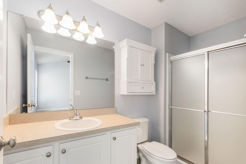 Discover easy, low maintenance living in this well cared for 2 bedroom, 2.5 bath condo located in the sought after Falls at Hayden Run Community. Step inside to an open and inviting layout with tasteful updates throughout. The main level features a bright living space with beautiful wood laminate. The Kitchen offers stainless steel appliances, added cabinetry, eat in space , breakfast bar and island. Just off the kitchen is a stone paved patio and detached 2 car garage. Upstairs you will find 2 generously sized bedrooms, each with its own private bathroom and ample closet space. Cozy up in the finished lower level with a cup of hot coco and a warm fireplace. This level is complete with egress windows which adds tons on natural light. The lower level is an ideal space for a family room, home office, recreation area or possible third bedroom, and includes a convenient 1/2 bath. The utility space also has ample space for storage. Step out the front door to a generous sized green space and walk across the street to the pool/clubhouse/fitness center to enjoy the amenities this community has to offer. The Falls at Hayden Run is situated near Dublin, Hilliard and I-270, quick access to shopping, dining, and all that the Columbus area has to offer.