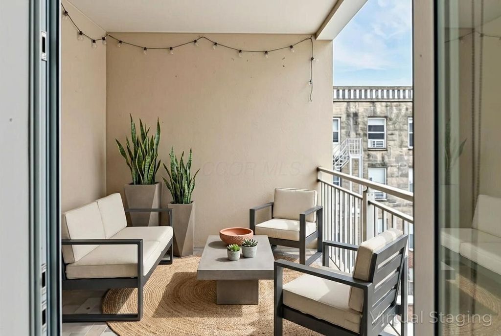 Experience elevated Short North living at The Dakota, perfectly positioned in Columbus's most vibrant neighborhood. This ground-floor accessible residence features two spacious bedrooms and two full bathrooms, showcasing fresh flooring throughout and new stainless steel appliances. Floor-to-ceiling windows frame tranquil views of the private landscaped courtyard - offering a peaceful retreat from High Street's energy without sacrificing walkability. Thoughtful details make this home stand out: a private recessed patio balcony perfect for morning coffee, dedicated laundry/utility space, and bonus storage for all your needs. Enjoy two reserved parking spots in the secure attached garage and location where you're always just steps from the area's celebrated dining scene, artisan coffee shops, boutique retailers, and renowned galleries.