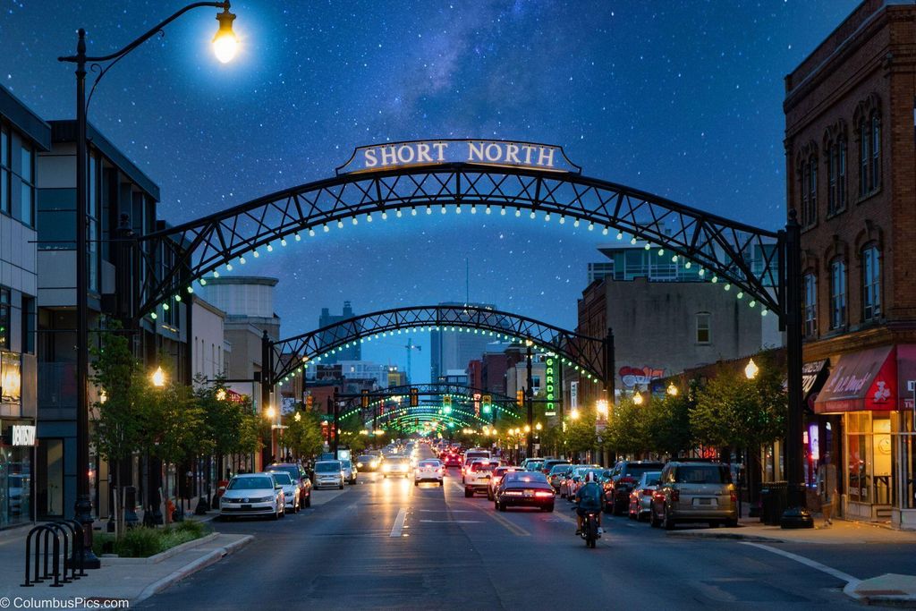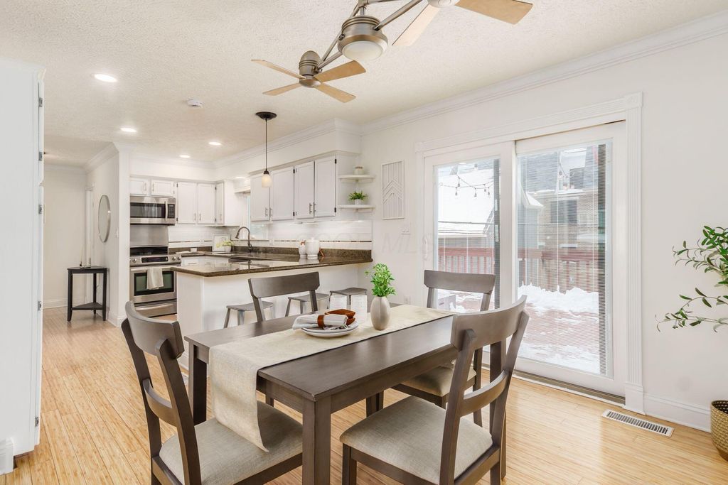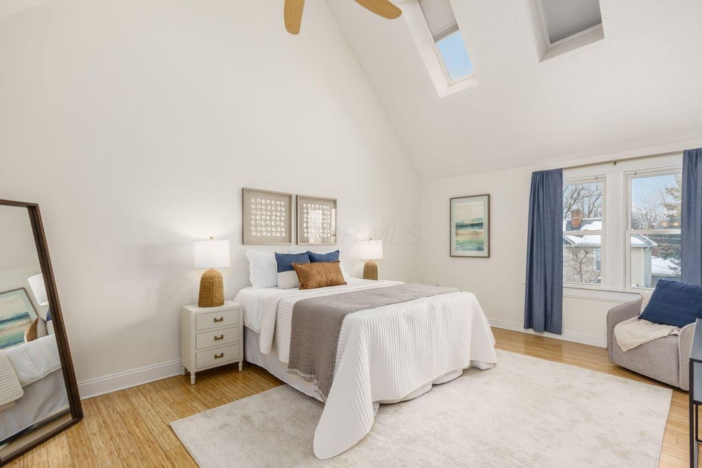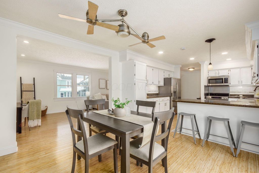 Exceptional fee-simple home offers the space and privacy of a single-family residence with the convenience of condo living - without any HOA or monthly fees! Ideally located in the heart of Victorian Village, this 2-bedroom, 2.5-bath home features a rare attached two-car garage and a large elevated deck. The sleek, modern kitchen offers abundant cabinetry, expansive granite countertops with breakfast bar seating, stainless steel appliances, under-cabinet lighting, and a tiled backsplash. With 1,750 square feet, the home provides generous living and dining spaces filled with natural light, offering true functionality for both everyday living and entertaining. Both bedrooms are impressively sized. The owner's suite features vaulted ceilings with skylights, a walk-in closet, and a beautifully appointed bath with a spacious walk-in shower and built-in seating. Laundry is ideally situated just outside the bedrooms for everyday convenience. Storage is plentiful, including a large first-floor mud room and an oversized two-car garage. The expansive deck is ideal for morning coffee, evening entertaining, or quiet relaxation. Located just minutes from High Street, Grandview, the Short North, and Italian Village, with walkable access to concerts, sporting events, and downtown amenities, this home offers exceptional space, location, and value.