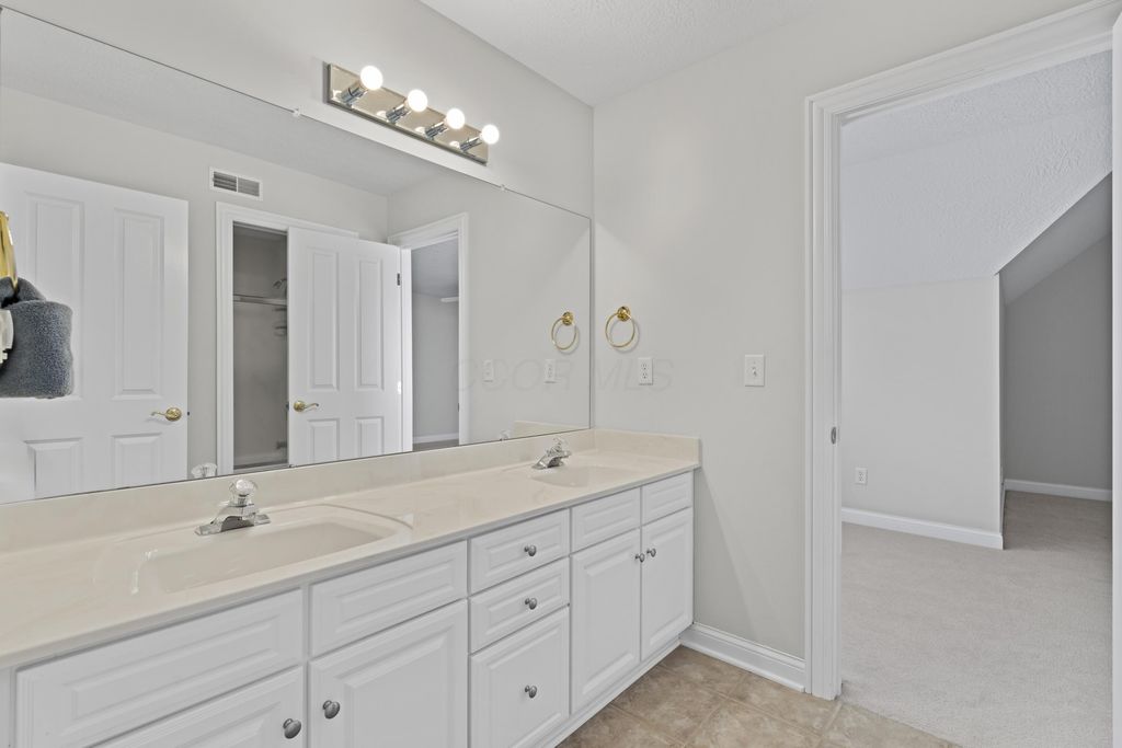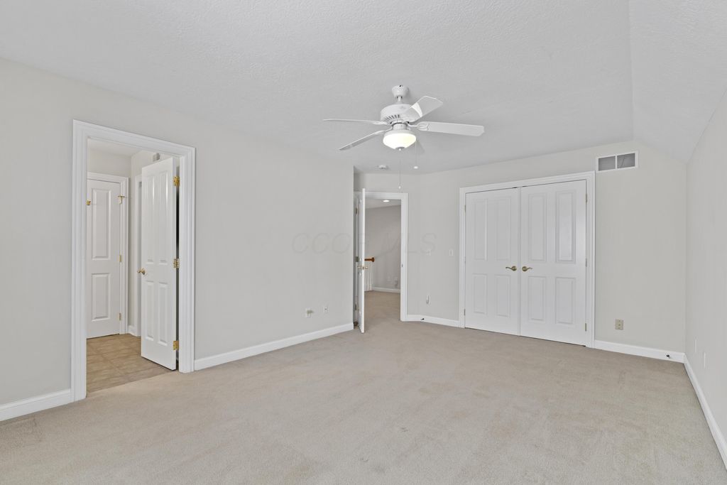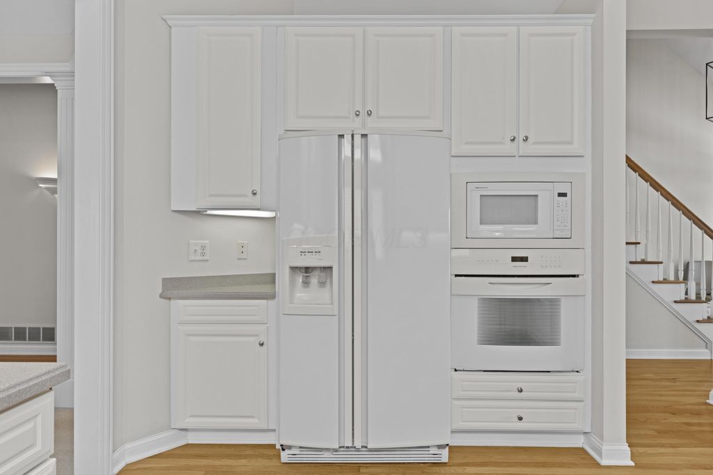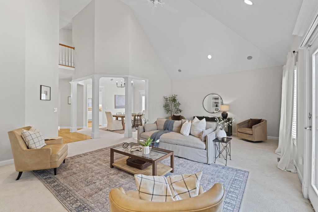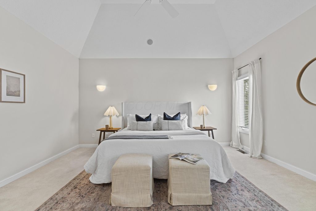 Welcome home to this beautifully built Romanelli & Hughes stunner, perfectly positioned within walking distance to trails, shops, restaurants and just minutes from Downtown Columbus! From the moment you step inside, hardwood floors flow through the entry and into the kitchen, setting the tone for timeless style and easy living. The kitchen shines with vaulted ceilings, white cabinetry, solid countertops, a stylish backsplash, a pantry, and even a cozy breakfast nook, perfect for morning coffee. The dining room opens seamlessly to the spacious living room featuring a fireplace with custom built-ins and French doors leading to a private deck made for relaxing or entertaining. Down the hall, you'll love the oversized laundry room with cabinetry and utility sink, plus a convenient half bath. The primary suite is truly impressive, HUGE in size with vaulted ceilings, a walk-in closet, built-in vanity space, and a spa-like ensuite offering a soaking tub, walk-in shower, and double vanities. Upstairs, two generously sized bedrooms each offer walk-in closets and share a Jack-and-Jill bath. Need storage or future living space? The massive full basement is ready for your personal touch, or leave it as-is and enjoy what might be one of the largest storage spaces in Columbus (seriously!). A chair lift provides added convenience to the second floor and can be easily removed if desired. Plus, the HOA covers mowing, making this low-maintenance lifestyle even sweeter. Location, space, and quality. This one checks all the boxes!