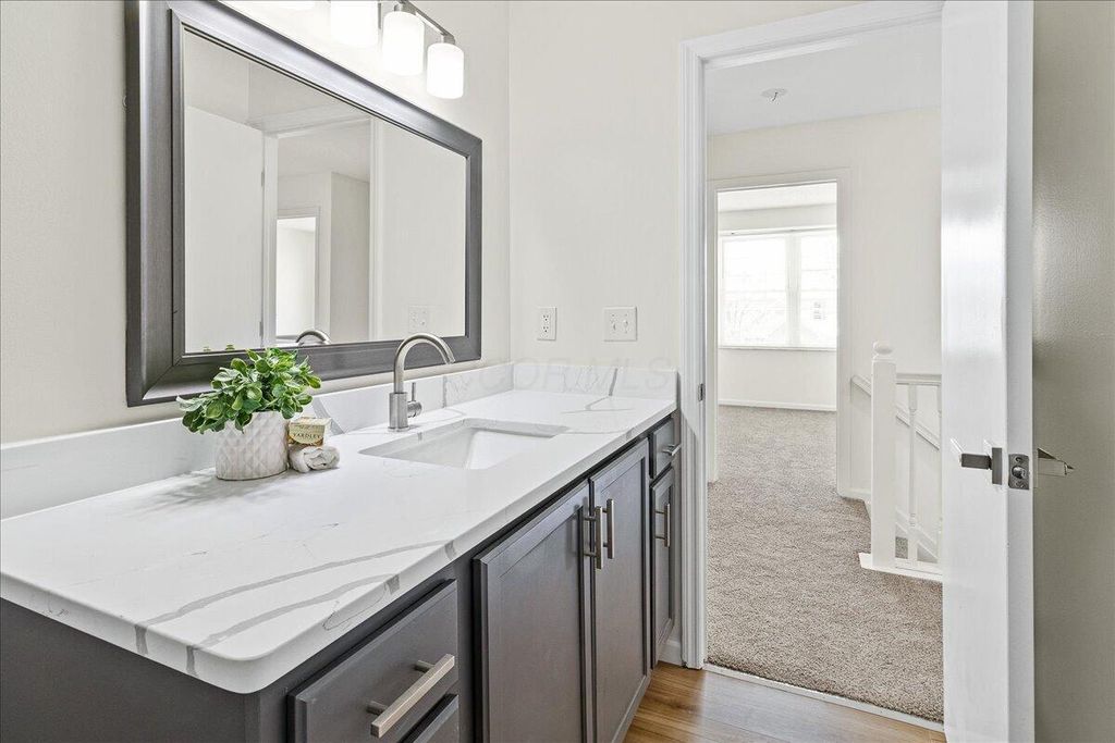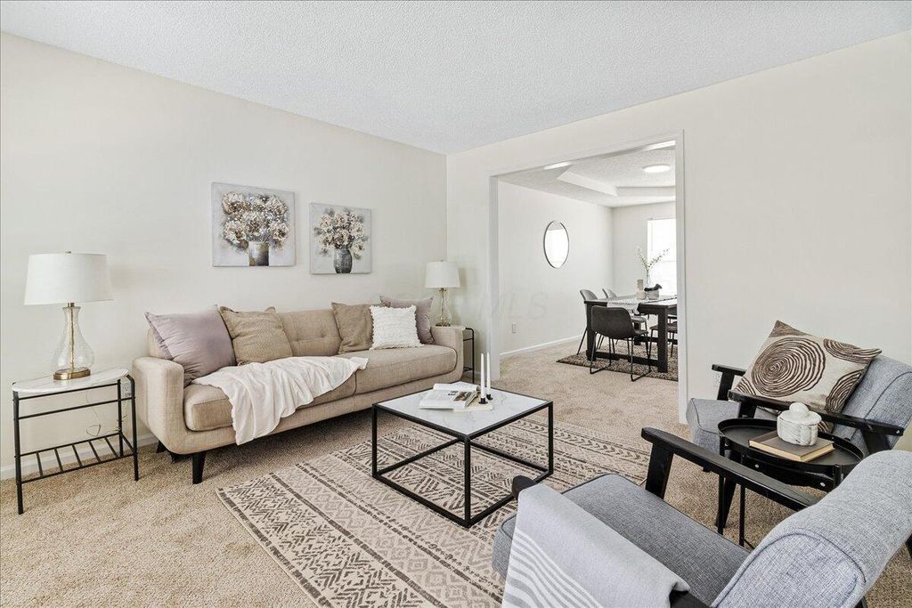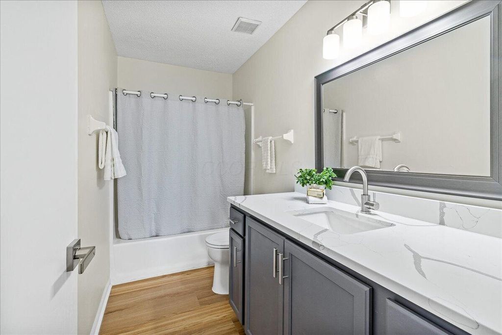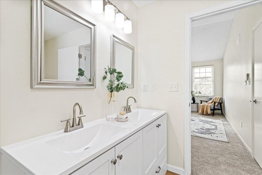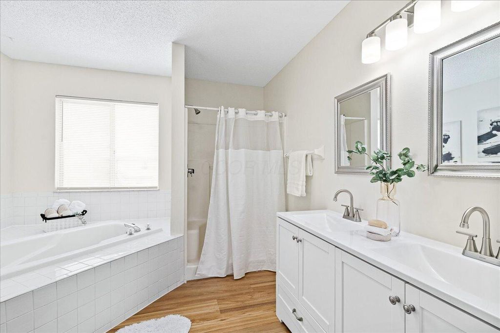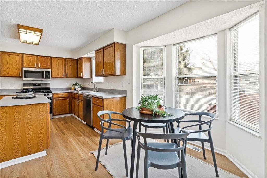 Welcome to this beautifully refreshed two-story home in the established Western Lakes community. Fresh paint throughout creates a bright, neutral feel, complemented by new LVP flooring on the main level and new carpet throughout. The main level offers multiple living spaces, including a formal living and dining area plus a spacious family room with a cozy fireplace. The kitchen features new stainless steel appliances, ample cabinetry, generous counter space, and updated lighting, with easy flow for everyday living and entertaining. Enjoy the convenience of a first-floor laundry, a finished basement offering additional living space. All bathrooms have been updated with new vanities and toilets, and modern light fixtures add a polished touch throughout. Enjoy a welcoming covered front porch and spacious deck in the backyard. AC 2025, Hot water tank 2025. Conveniently located near shopping and dining. Hilliard Schools with Columbus taxes.