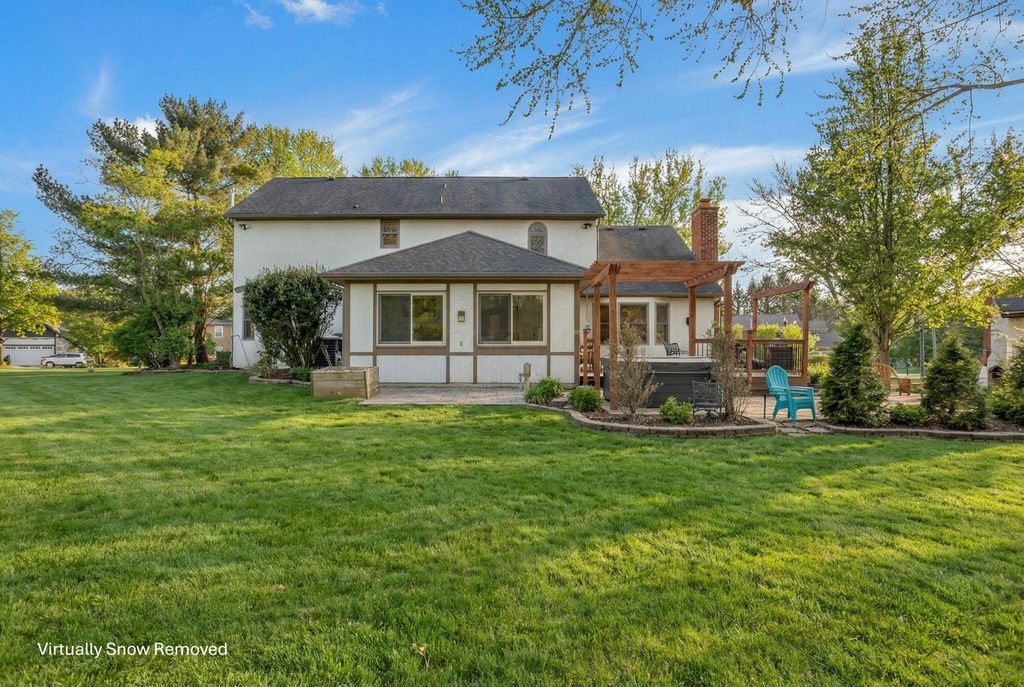 OPEN HOUSE SAT 2/7 12pm-2pm!! Fall in love with this inviting 4-bedrm home tucked away in the highly desirable Jefferson Woods community within the Pickerington School District. Situated on a beautiful .71-acre lot surrounded by mature trees, detailed landscaping and amenities that feels like a retreat! Upon entering, hardwood floors welcome you inside leading to a private office/den, living rm, and family rm w/planked bookshelves surrounding the FP -- creating flexible spaces for work, relaxation, and gathering. The modern Kitchen is a true centerpiece w/ sleek finishes, an oversized island that flows seamlessly into the surrounding spaces including the 4-Seasons rm w/walls of windows and a mini split for comfort. Quality features presents, fresh paint, invisible fence, on demand- tankless hot water, hot tub and outside fireplace! The primary suite offers a spa-like en-suite w/ a steam shower + heated floors, while the finished basement steals hearts w/ a bar, pool table, theater room, fireplace and half bath. This is a home you'll truly love coming home to!
