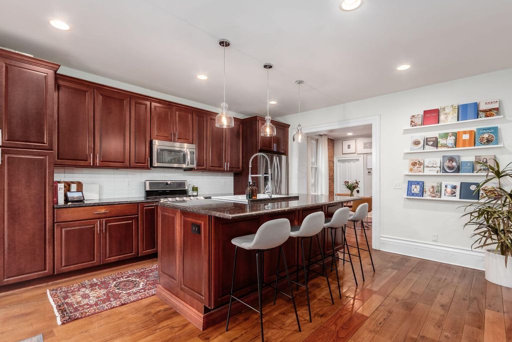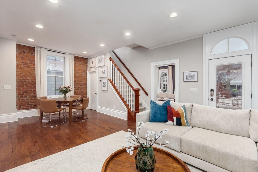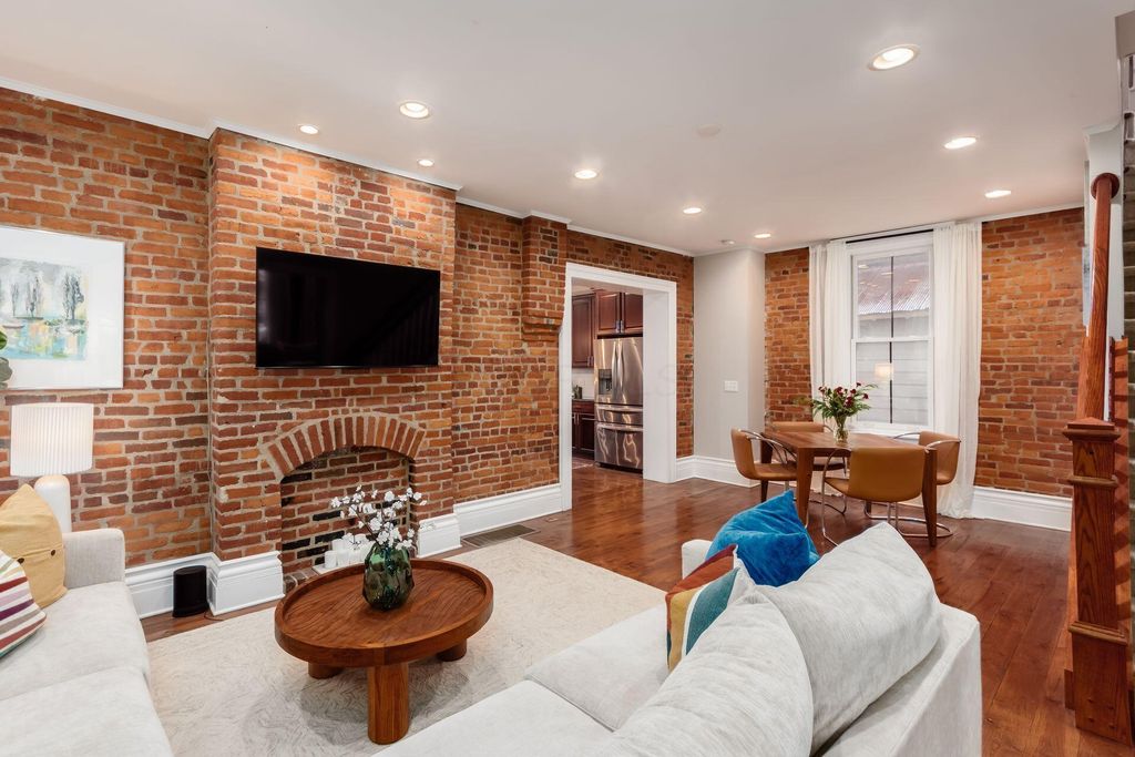 Impeccable Victorian Village home showcasing sophisticated charm with elevated modern-day finishes and private off-street parking. This 3-bedroom, 2 full and 1 half-bath residence features gorgeous exposed brick walls, original oak floors, and 10-foot ceilings, plus a modern kitchen with stainless steel appliances, expansive custom cabinetry, and a huge granite-topped island/bar"”perfect for entertaining or family get-togethers. The first floor also offers a convenient half bath and a charming mudroom off the side door, ideal for an easy transition from time spent in your outdoor flower gardens. Upstairs, you'll find three considerably sized bedrooms, a laundry area with washer/dryer, and a well-appointed primary suite complete with a walk-in closet and private bath. Enjoy the fenced backyard with a deck, hot tub, and ample space for entertaining.