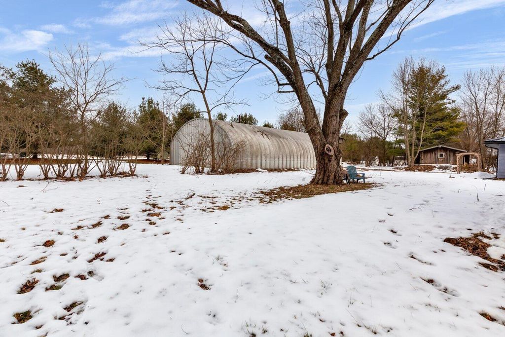 Welcome home to this beautifully updated 3-bedroom, 1.5-bath ranch offering comfort, convenience, and country-style space all in one! Featuring first-floor laundry, this home has been thoughtfully refreshed with a new roof, updated electrical, HVAC, plush carpet, quartz countertops, and fresh paint"”making it truly move-in ready. Situated on an acre, the property offers endless possibilities. The impressive 60 x 40 Quonset-style barn includes electric, a concrete floor, and a wood burner"”perfect for hobbies, storage, workshop space, or small business use. A second outbuilding with a root cellar provides the ideal setup for a charming she shed, gardening retreat, or even a chicken coop. Enjoy peaceful views and outdoor living with a park located directly behind the property, complete with scenic walking paths. Conveniently located within walking distance to Pleasant School, this home blends privacy, updates, and location into one exceptional opportunity. Agent owned.