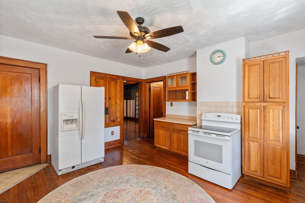 Spacious, classic Craftsman home located in a serene setting with mature trees. This home boasts 4 large bedrooms on the 2nd floor with a possibility of up to 3 additional bedrooms, or office space, rec room, flex room on the 1st floor level. Stunning woodwork throughout the house complements the original hardwood floors. Newer, Amish custom-made windows preserve the original look of the house, adding safety and easy maintenance. The original built-in's in the living room and dining room are stunning! You'll fall in love with the old-time character of the house! Over 2 acres of land with fenced yard. The massive, old barn needs some TLC, but it has horse stalls and tons of storage space. It is a classic all by itself. The 35' x24' pole barn has its own 220 electric supply and plenty of outlets for a workshop or storage area, office area & 2 large overhead garage doors. The spacious deck will bring you years of outdoor enjoyment. Make this your forever home.