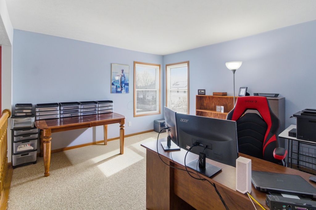 Welcome to Orchard Glen! Sun-filled rooms, soaring ceilings, & fantastic location w. functional & flowing floorplan - flexible loft that can easily flex into 4th bedroom if needed + newer roof & sliding door (2020) for peace of mind! Thoughtful touches everywhere: brand-new steps, durable floors updated around 2011/2012, surround sound in the lower level, attic storage tucked off a secondary bedroom, ceiling fans in the upstairs bedrooms, & a serene primary retreat featuring dual sinks, soaking tub, natural light, & a separate walk-in shower. Practical upgrades abound: 2022/23 water heater, 2018 sump pump, UV air purification, a washable HVAC filter, insulated/finished project space that flexes as workshop/gym/playroom, plus a newer board on the mechanicals & smart electric where you need it. Meticulous owners have lovingly maintained this home! What the sellers will miss: morning espresso at the coffee bar, holiday baking on the island, movie marathons in the surround-sound basement, neighborhood strolls in Orchard Glen, s'mores by the fire pit, the easy slide of the newer door on grill nights, open-flow parties that spill from kitchen to living, quiet spa-time in the primary bath, kids' sleepovers up in the loft, & the simple comfort of a home that just feels right the second you walk in. Step outside through the newer slider to a private, fully fenced backyard"”space for gardens, pets & play"”complete w. a fire pit for starry-night conversations & room to host the whole crew. Clean lines, well-appointed finishes, & a fantastic location, your options for entertainment, food, and shopping are endless nearby while keeping the peace & quiet at home!