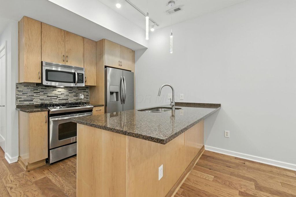 Welcome to refined urban living in the heart of Downtown Columbus that is priced LOWER than recently sold comparable condos, making it an exceptional opportunity in today's market! This stunning garden-level condo in the highly sought-after Neighborhood Launch community offers the perfect blend of sophistication and convenience. This beautifully appointed 1-bedroom, 1-bath residence showcases rich flooring, sleek granite countertops, and premium stainless-steel appliances that elevate the kitchen's modern design. The open-concept layout creates a seamless flow ideal for both everyday living and entertaining. Enjoy the rare luxury of front patio "” the perfect setting to sip your morning coffee or unwind after a vibrant evening in the city. EVEN BETTER, the HOA includes the gas bill, adding real value and predictable monthly expenses. A private garage adds an extra layer of convenience and security, a true bonus for downtown living. Just steps from the best dining, entertainment, parks, and nightlife that Downtown Columbus has to offer, this exceptional condo delivers lifestyle, location, and comfort "” all in one.