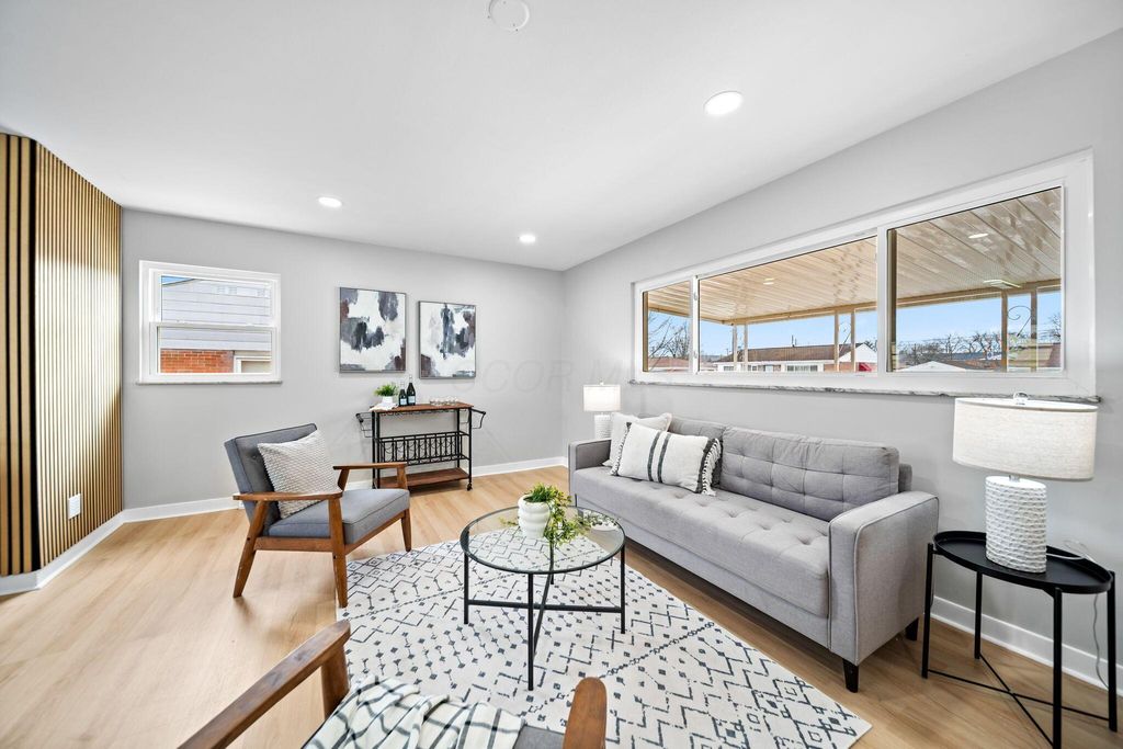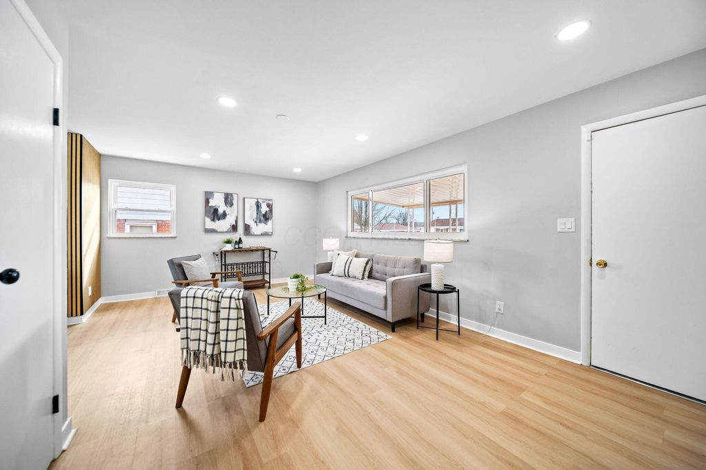 Welcome to 4024 Cloby Ave, Columbus, Oh, 43227, a fully renovated ranch-style home offering modern updates and versatile living space. This 3-bedroom, 1-bath entry-level home features an updated kitchen with tall cabinetry, granite countertops, stainless steel appliances, and recessed can lighting. The full bath showcases a luxury vanity and ceramic tile, while the main level is finished with durable luxury LVT flooring throughout. The lower level adds exceptional value with a bonus bedroom, full bathroom, egress window, and a large open area perfect for an entertainment space, home office, or additional living area. Major mechanical updates include a newer roof, HVAC (2019), and tankless hot water heater (2017). Enjoy outdoor living on the front deck, ideal for entertaining, along with a huge driveway and an oversized 2-car garage providing ample parking and storage.