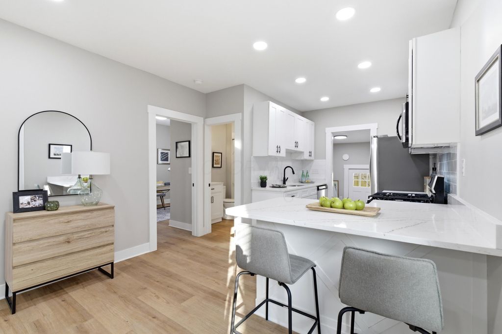 Charming fully updated one-level home in prime location in Weinland Park -- just minutes from the Short North Arts District, Ohio State University, and Downtown. Ideal for an owner-occupant or investor, this bright, move-in-ready home features all-new flooring, fresh paint, updated lighting, electrical, plumbing, HVAC, and roof. Enjoy a beautiful kitchen with crisp white cabinets, quartz counters, and new stainless steel appliances including a gas range -- plenty of cabinet and storage space. The layout offers 2 bedrooms plus a flexible third room perfect for a bedroom or home office. Outside, a private fenced yard, low-maintenance patio, and off-street parking make outdoor living easy. Large basement with sump pump and abundant storage. Thoughtfully updated inside and out -- turnkey living in a fantastic, walkable location.
