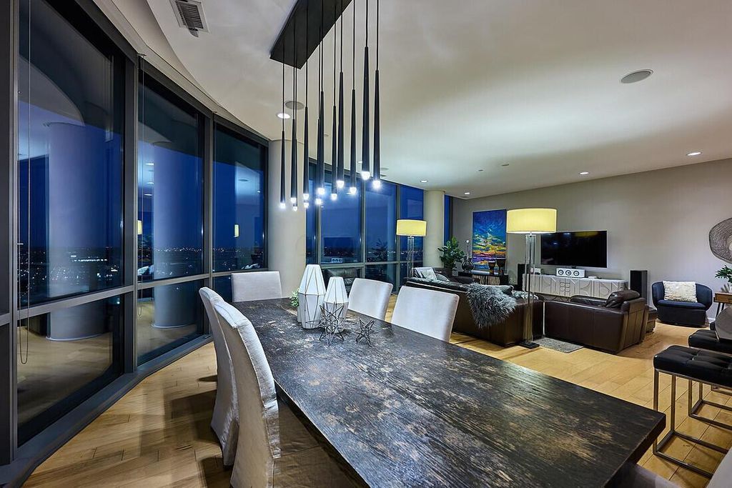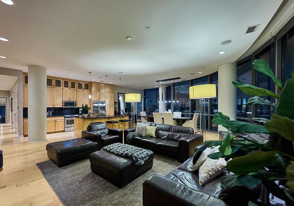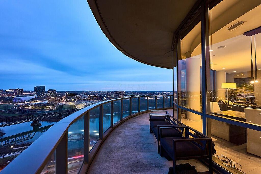 Seriously one of the best downtown Columbus views in central Ohio. Very rare corner unit with expansive views and wrap around outdoor terrace. Wide open great room, dining and chefs kitchen with 10' ceilings and all glass exterior wall. Awesome master suite with dual closets and custom built in cabinetry. Update bath with Carrera marble counters and walk in shower and soaking tub. Second BR/BA with walk in closet, doubles as great work from home space. Excellent location with great proximity to the Scioto mile park, Huntington Park, Nationwide Arena, Crew Stadium and more. Building has 24/7 concierge, fitness and conference spaces and theatre room. Secure parking with second parking space paid for 2026.