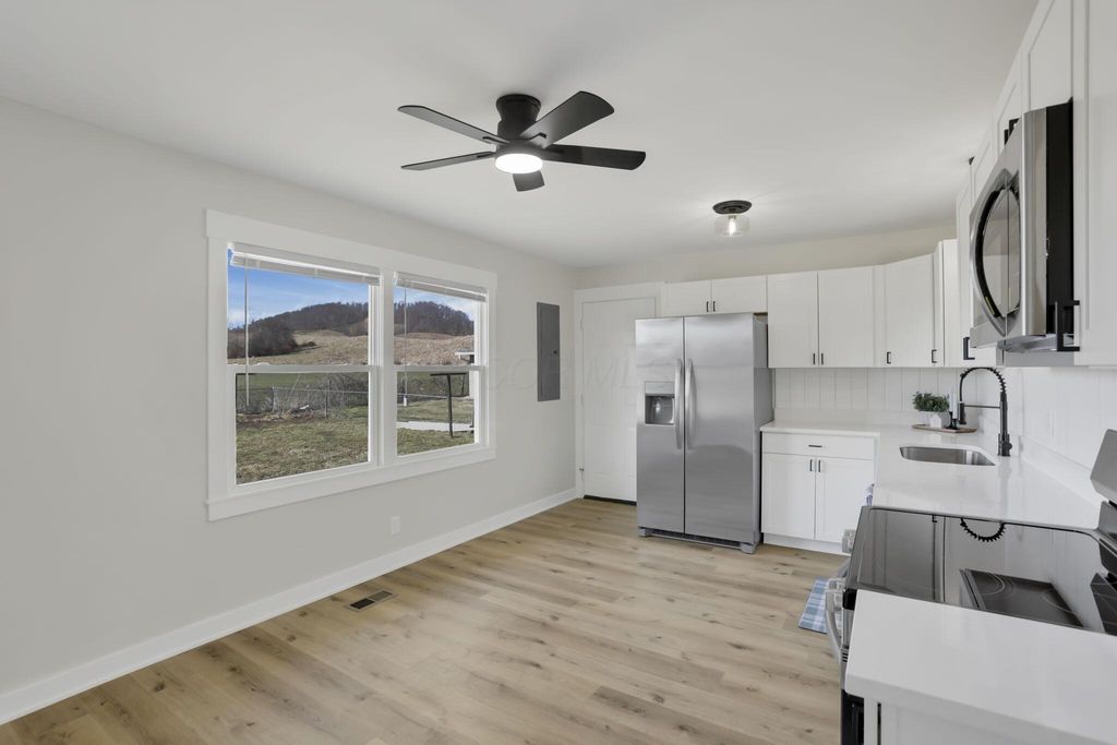 Welcome Home to Happy Hollow Rd! This fully remodeled 3 bed, 2 bath 1,200 square foot ranch is move-in ready and perfectly situated on just over a half an acre. Enjoy modern living with a brand new kitchen featuring stainless steel appliances and quartz countertops, brand new bathrooms, and all-new flooring throughout. Everything inside and outside is NEW! With an attached 2 car garage and a spacious yard for outdoor enjoyment. The location is unbeatable, offering a serene, rural setting while being just a few minutes from endless recreational opportunities in the nearby Hocking Hills region. This home is ready for its new owners!