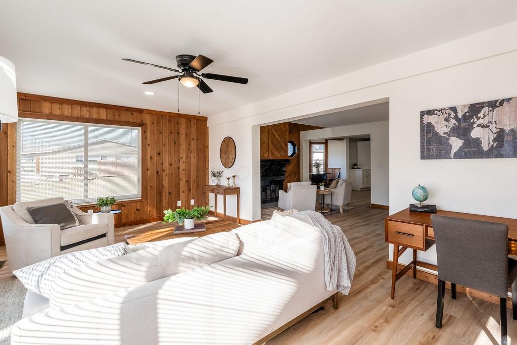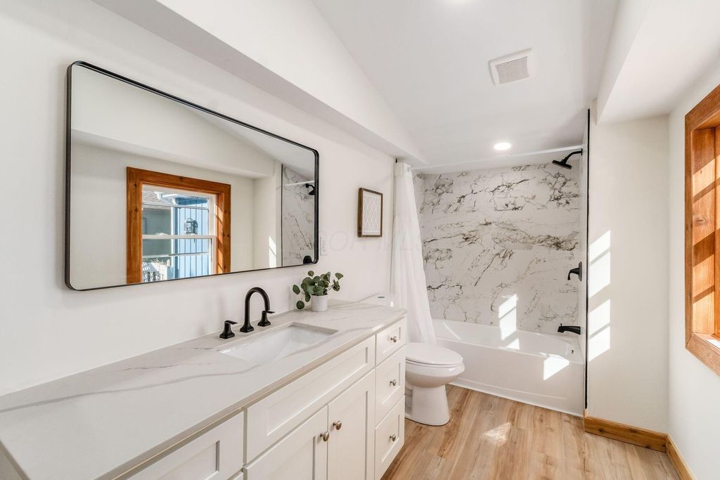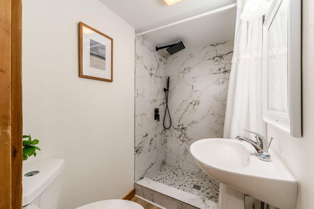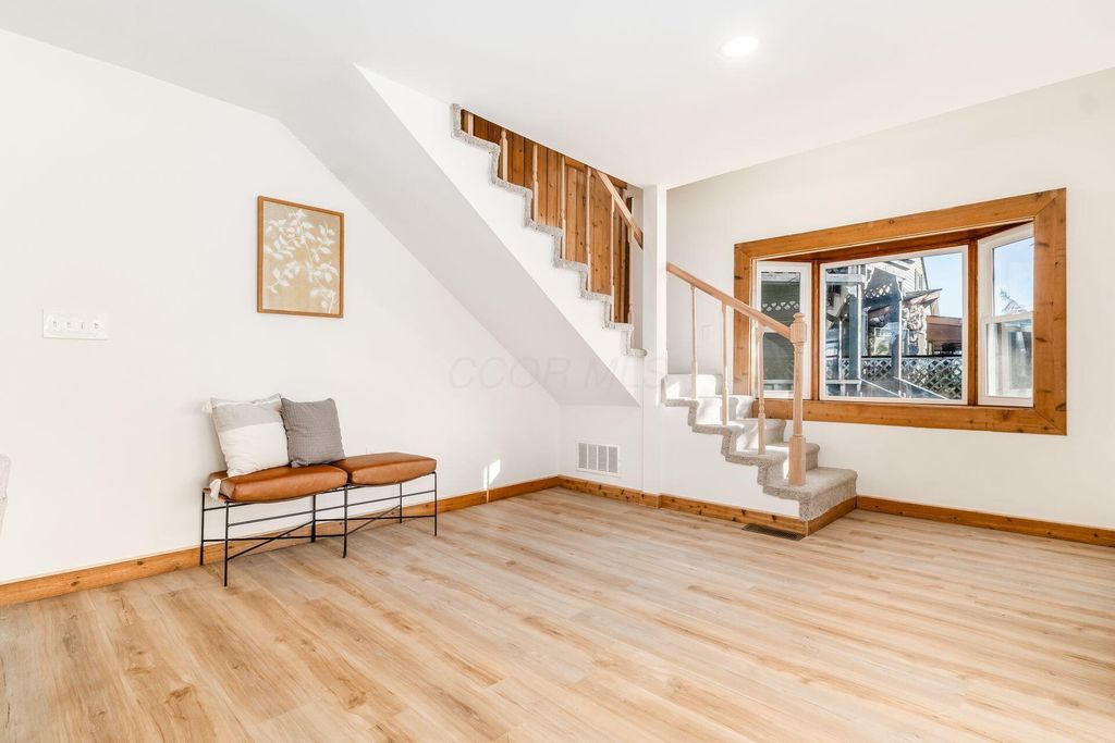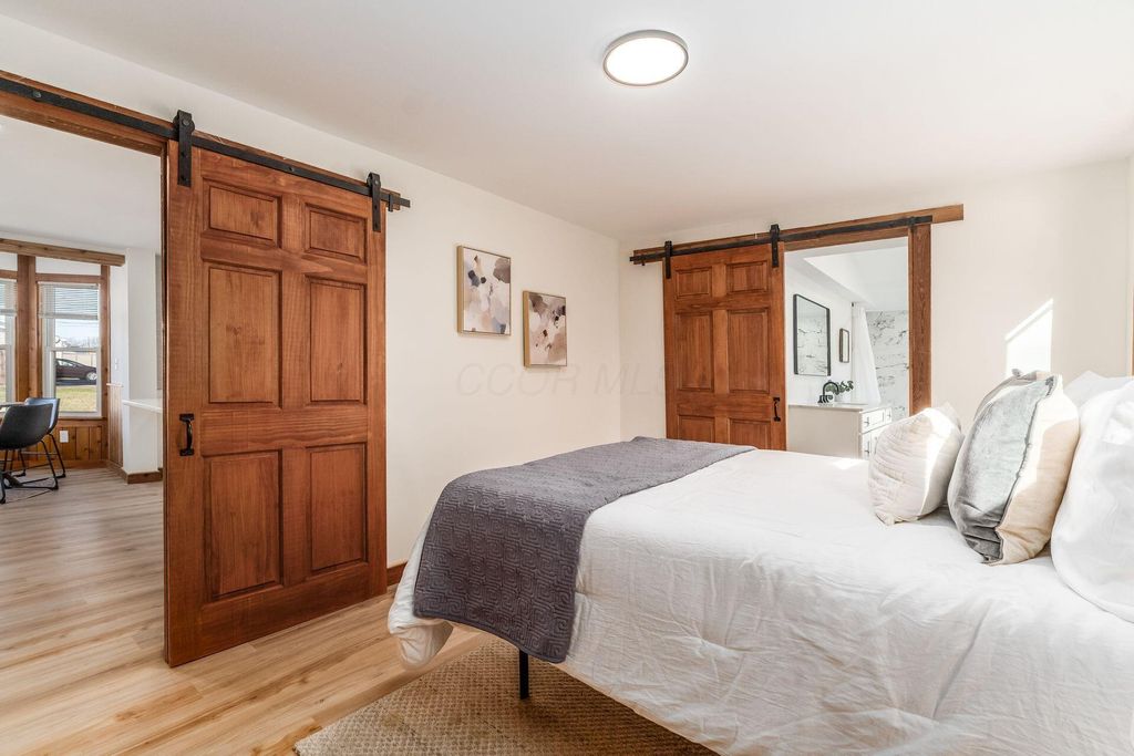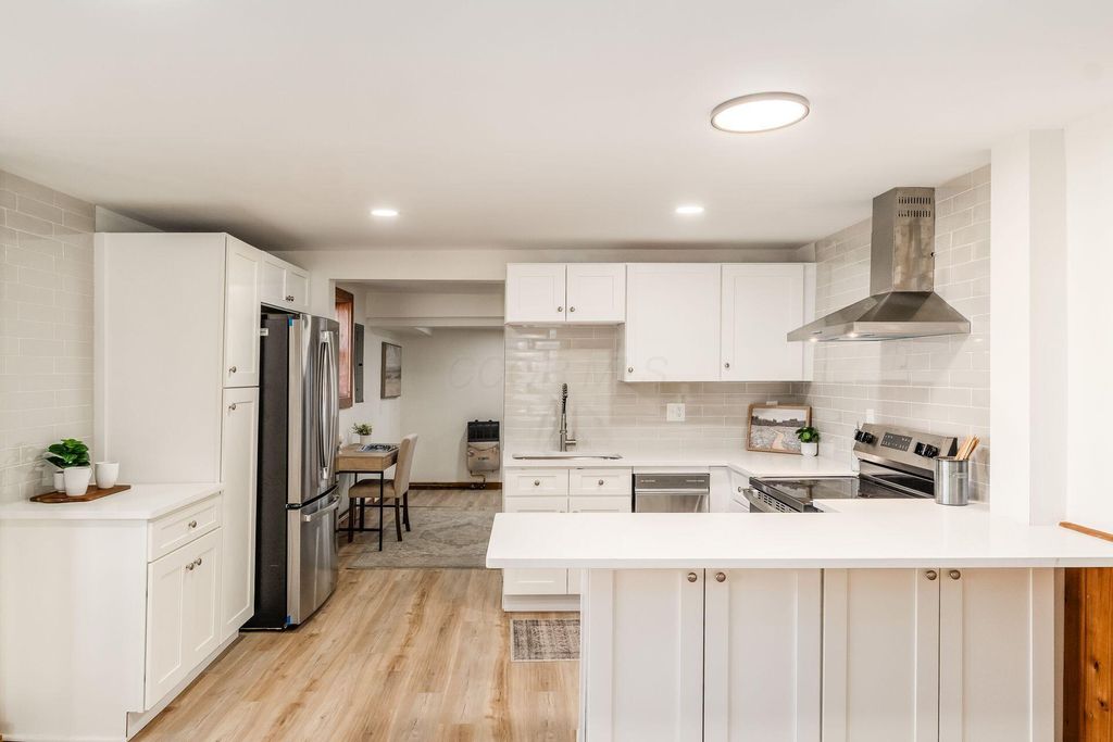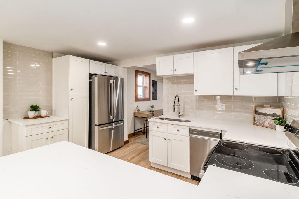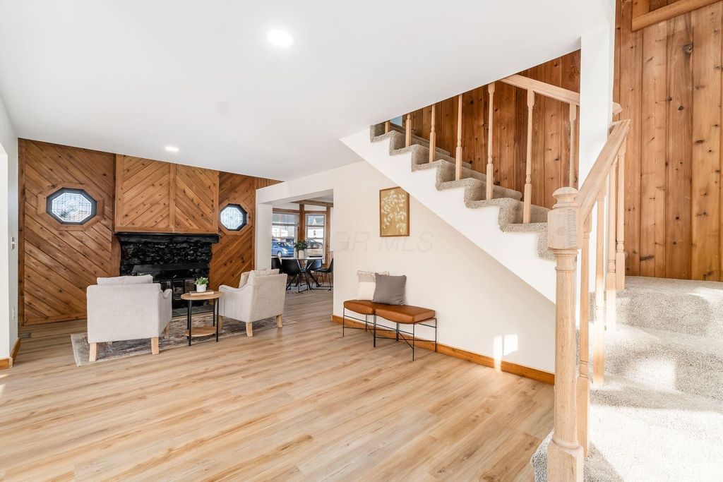 Welcome to this beautifully updated canal-front Cape Cod in Millersport offering 3 bedrooms and 2 fully remodeled baths, blending modern finishes with warm character throughout. The renovated kitchen features quartz countertops, stainless steel appliances, subway tile backsplash, peninsula seating, and open sightlines into the main living space. The great room is filled with natural light and anchored by a striking stone fireplace and distinctive wood accent walls that add charm you simply can't replicate. A bright four-season room with walls of windows overlooks the canal, providing a peaceful year-round retreat with direct canal access leading to Buckeye Lake. The remodeled bath showcases a sleek double vanity and marble-look surround, while the spacious upper-level flex area offers endless possibilities for a second living space, bunk room, or home office. A detached two-car garage offers excellent storage for vehicles, boats, golf carts, and all your lake gear. Enjoy canal access to Buckeye Lake, nearby dining, and the relaxed charm of lake living.