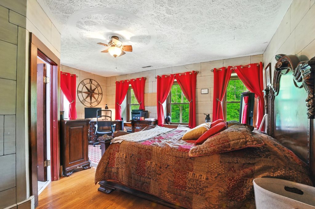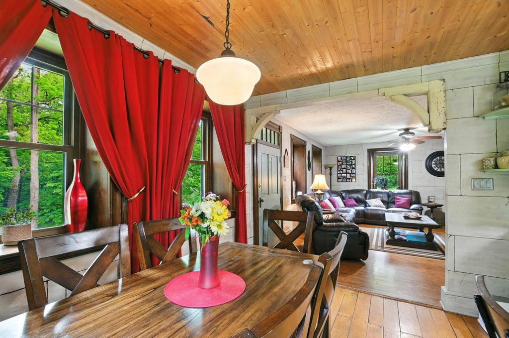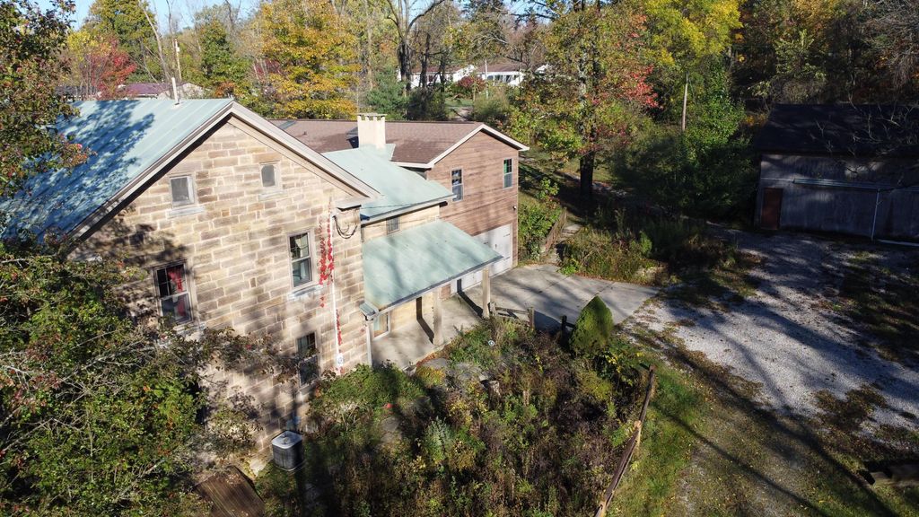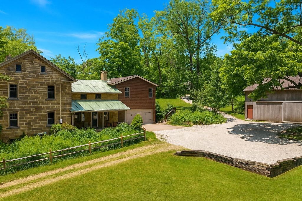 Steeped in history and grace, this extraordinary Greek Revival estate rests on over 9 wooded acres, exuding timeless charm and refined character. Listed on the National Register of Historic Places as the Samuel Lewis House, its storied past includes time as The Olde Stone House & then the The Safe House Bed & Breakfast. Crafted from locally-quarried Mansfield sandstone, it is the largest and best-preserved antebellum sandstone home in Richland County. Thoughtfully expanded in 1999, it now offers nearly 4,000 sq ft with 6 bedrooms, 4 baths, original wood floors, a sun-drenched interior, and a gourmet kitchen with stainless steel appliances. The inviting family room features a built-in fireplace, while the spacious laundry doubles as a fitness room. Outdoor amenities include a 24x30' barn, English gardens with a waterfall, stream, hot tub, and a 30' above-ground pool with a large, beautiful deck. A rare opportunity to own a historic retreat with modern ease and enduring elegance.
