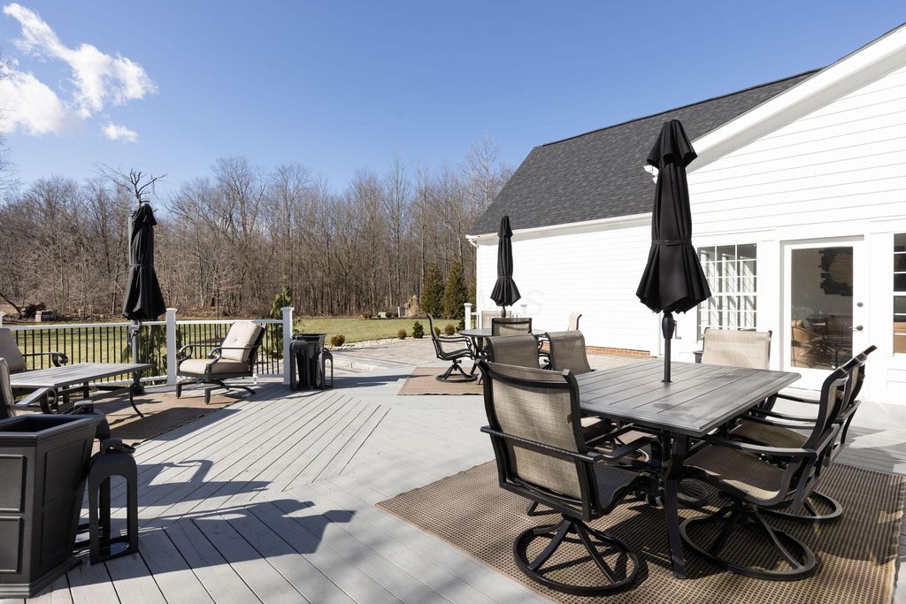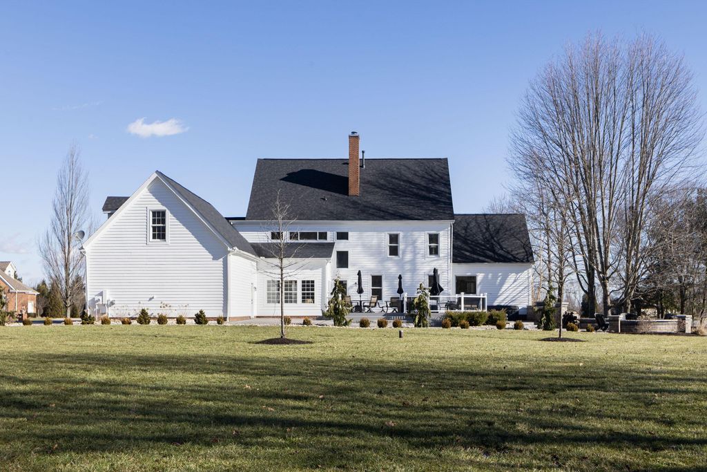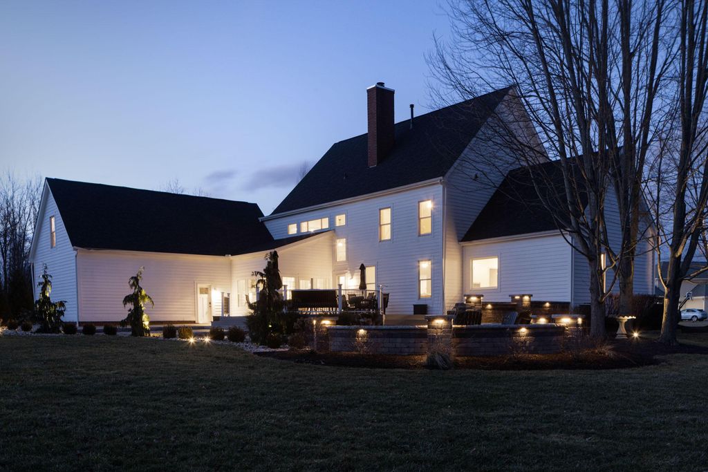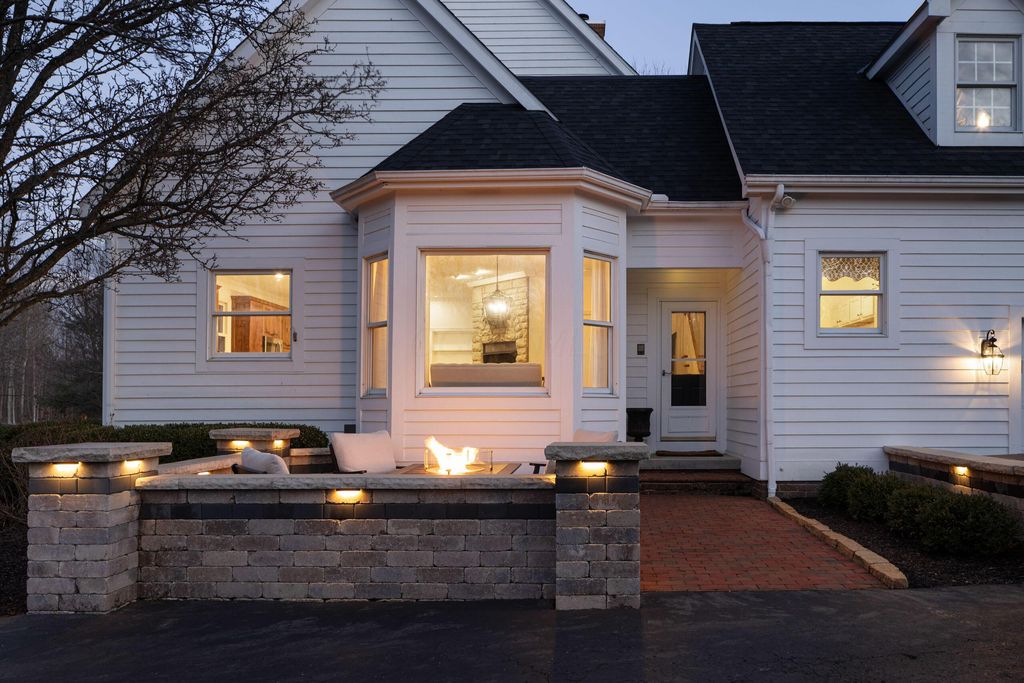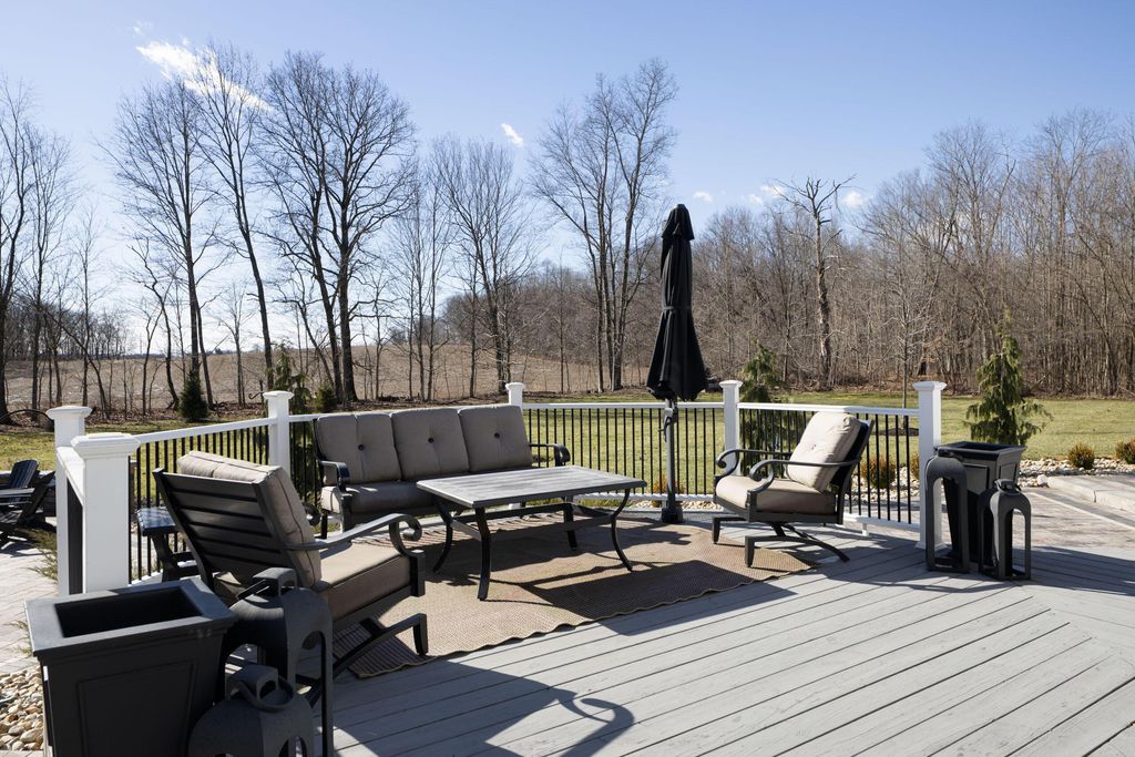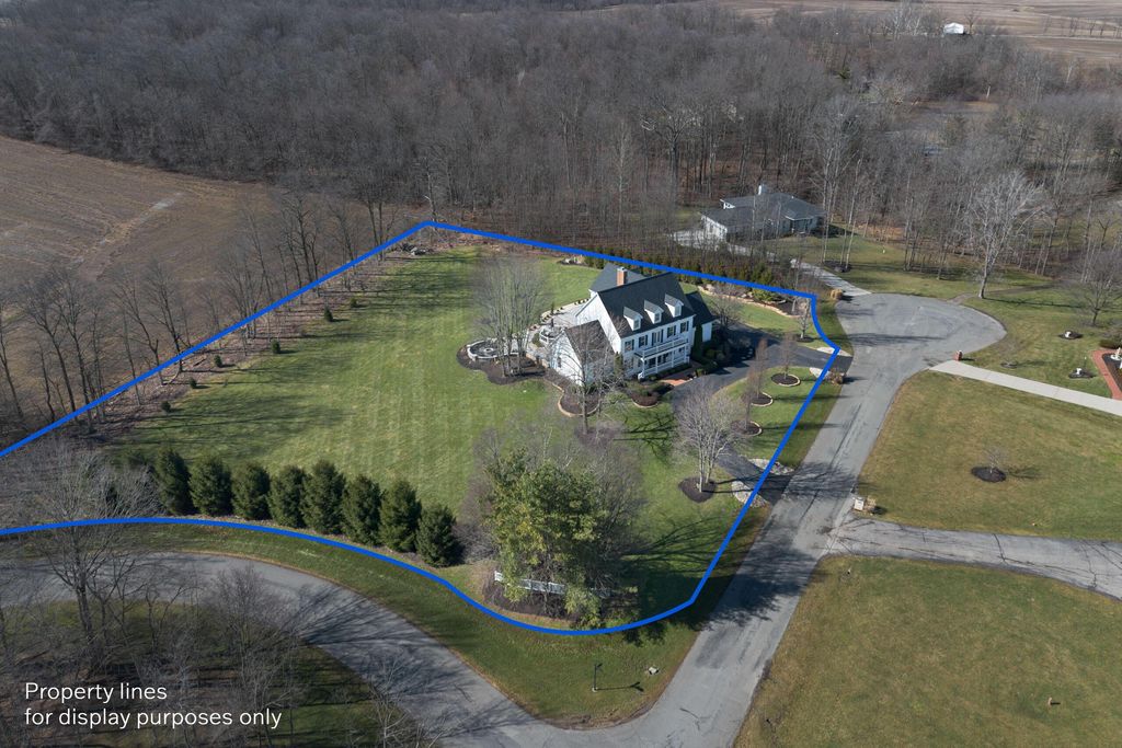 Set on a quiet cul-de-sac on a 1.77 acre private lot, this classic white Colonial offers over 5,000 square feet of thoughtfully designed living space with recent updates throughout. The two-story great room anchors the main level with soaring ceilings, expansive windows, rich hardwood floors, and a brick fireplace flanked by custom built-ins. A lofted overlook above enhances the open architectural feel, while the adjoining four seasons room provides year-round flexibility and natural light. The kitchen features rich wood cabinetry, a large center island, casual dining space, and a distinctive stone fireplace that adds warmth and character. The first-floor primary suite serves as a private retreat, complete with a two-sided fireplace shared with the spa-style bath, dual vanity, walk-in shower, and an oversized walk-in closet. Outdoor living is equally well appointed with a spacious deck, stone patio, and dedicated fire pit area--ideal for entertaining or quiet evenings at home. Located in a a golf cart-friendly community with exclusive access to six private fishing ponds! Conveniently located with easy access to New Albany, Johnstown, and the Columbus metro area. Additional highlights include a 3-car garage, partially finished basement with new carpet (Fall 2025), new roof (2024), new garage doors (Jan 2026), all new interior paint (Jan 2026), and a newly installed patio and refreshed landscaping (2024).