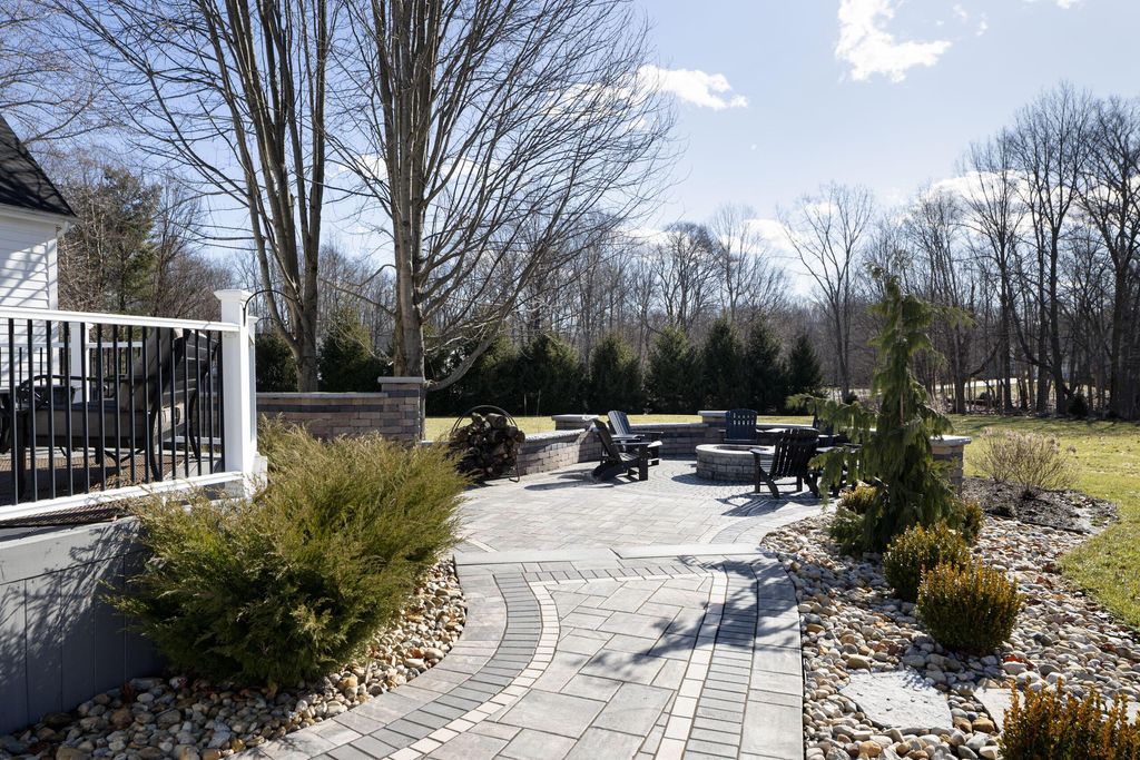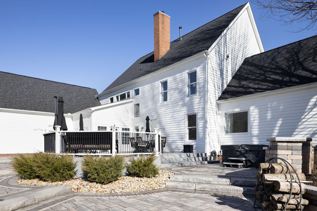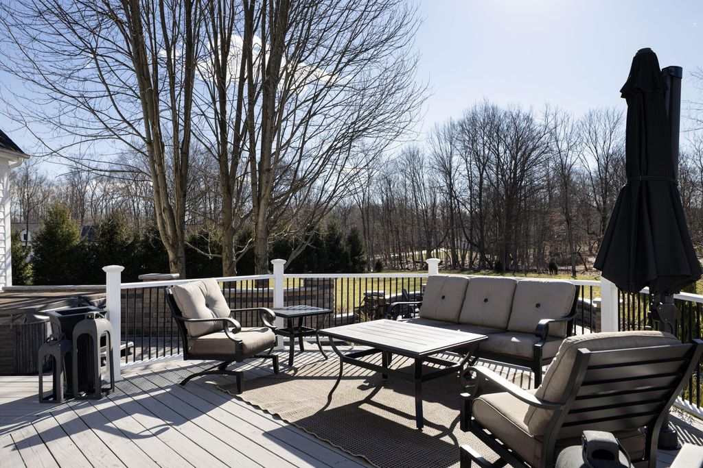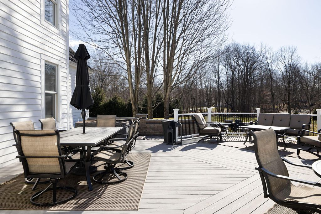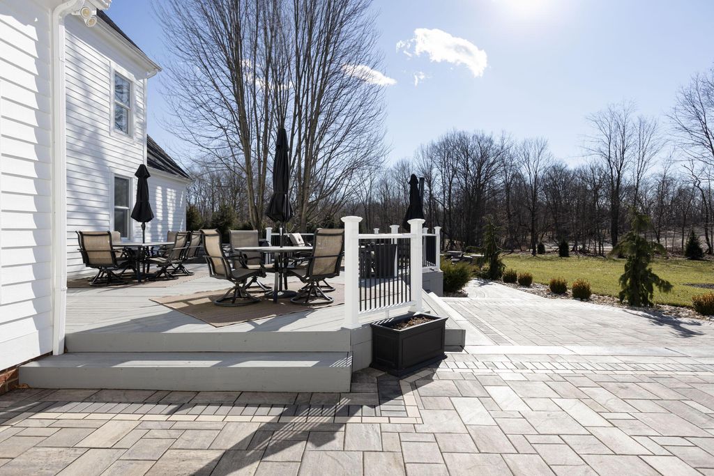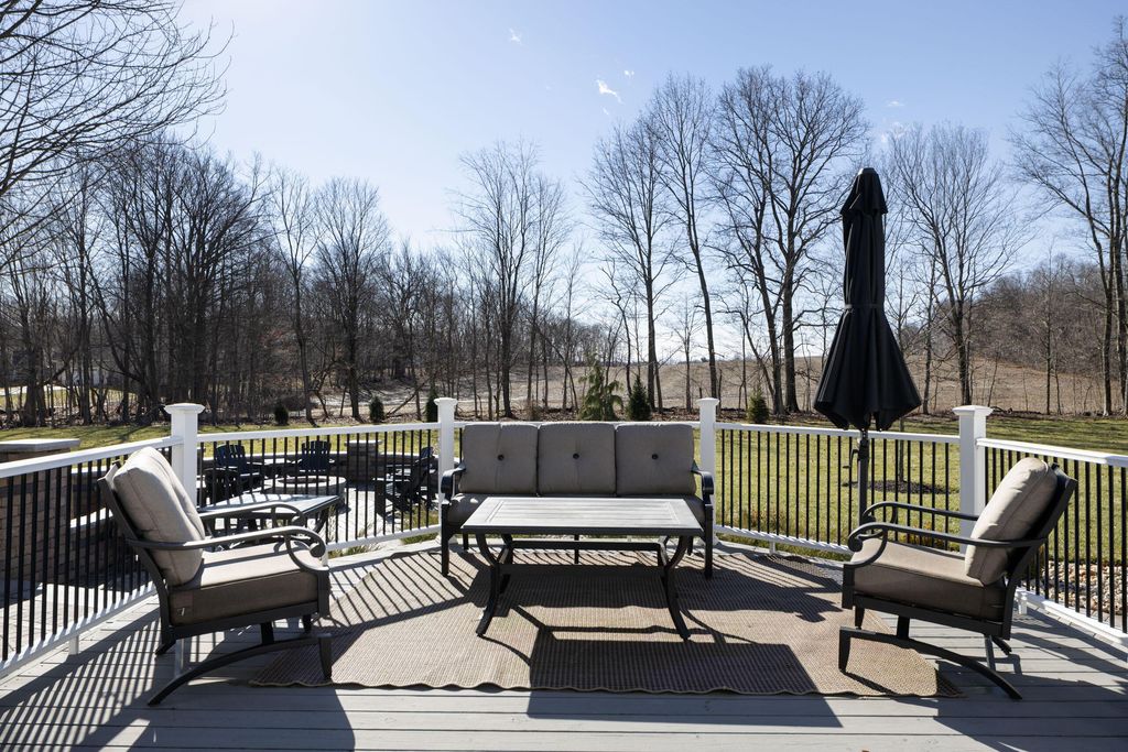 Set on a quiet cul-de-sac on a 1.77 acre private lot, this classic white Colonial offers over 5,000 square feet of thoughtfully designed living space with recent updates throughout. The two-story great room anchors the main level with soaring ceilings, expansive windows, rich hardwood floors, and a brick fireplace flanked by custom built-ins. A lofted overlook above enhances the open architectural feel, while the adjoining four seasons room provides year-round flexibility and natural light. The kitchen features rich wood cabinetry, a large center island, casual dining space, and a distinctive stone fireplace that adds warmth and character. The first-floor primary suite serves as a private retreat, complete with a two-sided fireplace shared with the spa-style bath, dual vanity, walk-in shower, and an oversized walk-in closet. Outdoor living is equally well appointed with a spacious deck, stone patio, and dedicated fire pit area--ideal for entertaining or quiet evenings at home. Located in a a golf cart-friendly community with exclusive access to six private fishing ponds! Conveniently located with easy access to New Albany, Johnstown, and the Columbus metro area. Additional highlights include a 3-car garage, partially finished basement with new carpet (Fall 2025), new roof (2024), new garage doors (Jan 2026), all new interior paint (Jan 2026), and a newly installed patio and refreshed landscaping (2024).