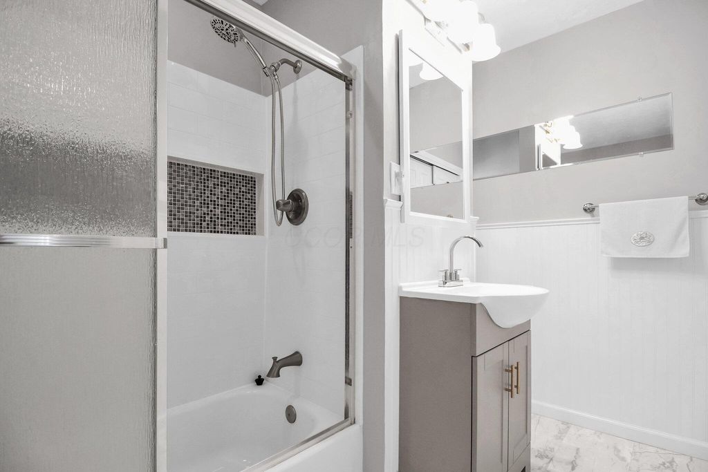 TAKE ADVANTAGE! Updated Cranford home located just a stones throw from Upper Arlington but with Columbus taxes! Walk-out split level that offers function and flexibility, while the updates show the flair! Large 17x22' living room, with a corner window that fills the space with natural light. With plenty of area to spread out, you'll appreciate the dining and kitchen spaces! Ample white cabinets and granite countertops, new appliances including an electric stovetop and built-in oven. Entertaining is easy with the sightline from living to dining area, but up a short flight of central stairs are 3 bedrooms and the main full bathroom. All the rooms are spacious and feature redesigned closets, fresh paint, new flooring and doors. The full bath has been remodeled with new sliding tub door, surround with custom tile, vanity and faucet. The flexibility of the homes' footprint is most apparent downstairs from the main level. The finished lower level opens new possibilities: a second rec room for movie nights or football Sundays, home office,