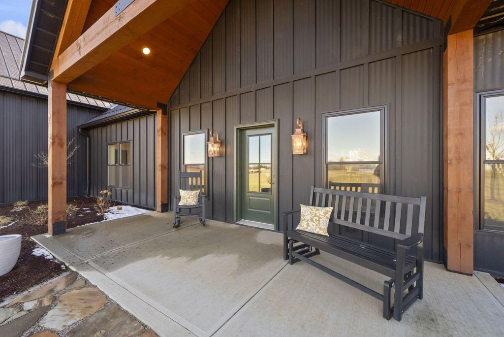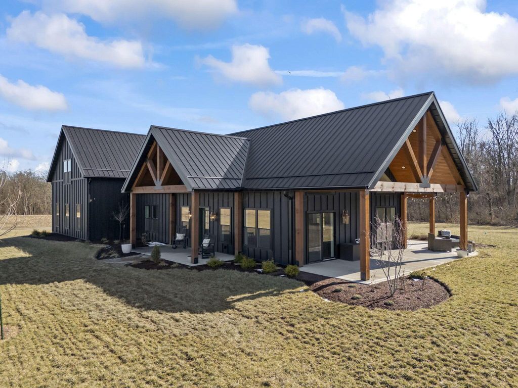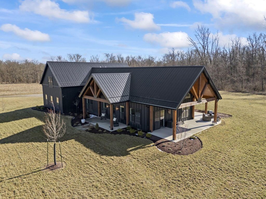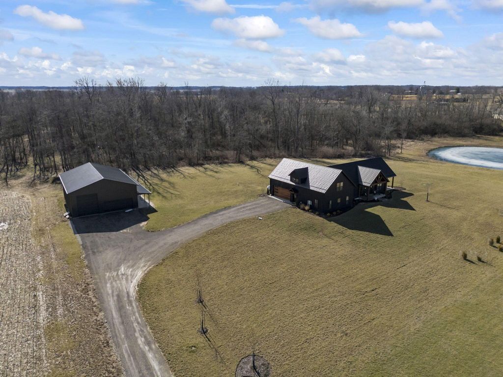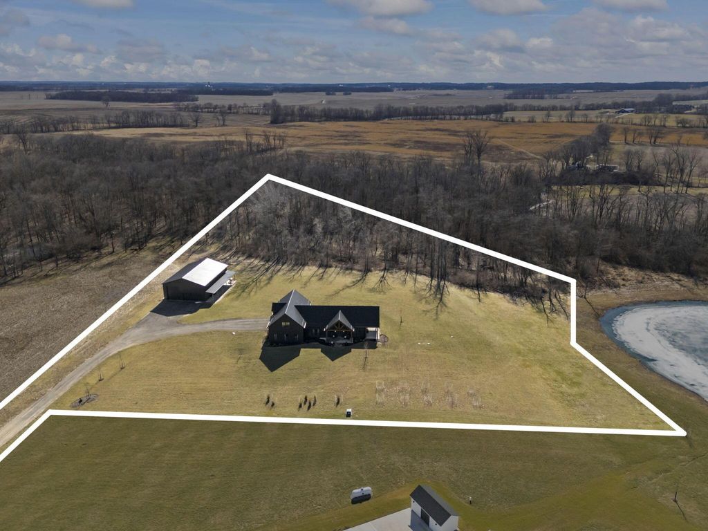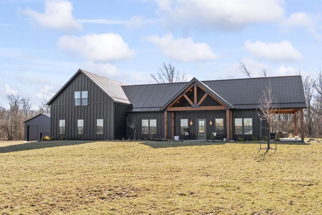 CUSTOM BUILT IN 2024 AND THOUGHTFULLY DESIGNED AS A PRIVATE RETREAT, THIS LIKE-NEW, ONE-OWNER HOME CAPTURES TRULY BREATHTAKING PANORAMIC VIEWS IN EVERY DIRECTION. A BEAUTIFUL WRAP-AROUND PORCH PROVIDES THE PERFECT PLACE TO RELAX AND TAKE IN THE SCENERY, SUNRISES, AND SUNSETS. SET AMONG WOODED TRAILS, FRESH LANDSCAPING, FRUIT TREES, AND A FULLY STOCKED POND WITH A PERMANENT EASEMENT, THE SETTING OFFERS PEACE, PRIVACY, AND SPACE TO UNWIND. INSIDE, EXCEPTIONAL CRAFTSMANSHIP SHINES THROUGH A STUNNING GOURMET KITCHEN DESIGNED TO IMPRESS. FEATURING BEAUTIFUL 42-INCH CABINETRY, A CUSTOM-CRAFTED HOOD, A MASSIVE ISLAND PERFECT FOR GATHERING AND ENTERTAINING, AND AN OVERSIZED WALK-IN PANTRY WITH A CONVENIENT PASS-THROUGH, THIS SPACE IS BOTH LUXURIOUS AND HIGHLY FUNCTIONAL. SOLID WOOD STAINED INTERIOR DOORS, CUSTOM CLOSET CABINETRY, AND NO WIRE SHELVING THROUGHOUT ELEVATE THE HOME WITH TIMELESS CHARACTER AND INTENTIONAL DESIGN. THE IMPRESSIVE 40X80 BARN EXPANDS THE PROPERTY'S POSSIBILITIES--ROUGH PLUMBED AND ROUGH WIRED WITH DRAIN LINES IN PLACE AND A PUMP ALREADY INSTALLED. WITH LOFT STORAGE AND FLEXIBLE LAYOUT OPTIONS, THERE IS POTENTIAL FOR UP TO FOUR ROOMS OR EVEN A MOTHER-IN-LAW SUITE, MAKING IT IDEAL FOR MULTI-GENERATIONAL LIVING, A HOME BUSINESS, OR FUTURE EXPANSION. THIS EXCEPTIONAL PROPERTY BLENDS MODERN COMFORT WITH SCENIC BEAUTY. COME SEE THIS ELEVATED RETREAT FOR YOURSELF.