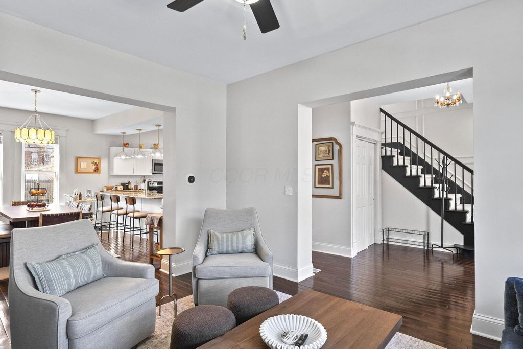 Experience the perfect harmony of historic soul and contemporary design in this stunningly renovated, four-bedroom brick traditional in the heart of the Old Oaks Historic District. From the soaring ceilings and cozy gas fireplace in the living room to the elegant formal dining area, every inch reflects quality. The chef's kitchen is a true standout, featuring 36'' crisp white shaker cabinets, stainless steel appliances, and a convenient breakfast bar. Functional luxury continues with a rare first-floor mudroom and laundry suite leading to the spacious and fenced-in backyard. Upstairs, you'll find four bedrooms with large closets and a beautifully updated bath. Don't miss out on the beautifully finished third floor--perfect for a home office, media room, or a private retreat. Large fenced backyard with new raised garden beds. A security system is in place. Ample off-street parking for 2 cars. Minutes to German Village, Trolley Barn, Nationwide Hospital, Art Museum, Downtown, Short North. Updates and improvements include a new roof, gutters, and downspouts; new kitchen and dining room light fixtures; newly painted downstairs; newly painted upstairs bathroom, hallway, and office; and newly added stair case molding. Old Oaks is a Historic District. It is also a strong and vibrant community filled with neighbors who care deeply about their historic homes & their neighborhood. In addition to the famous Wednesdays On The Porch gatherings, the community hosts a summer concert series, pumpkin sale, Halloween party for kids, holiday lights contest, winter market, Mardi Gras festival, happy hours, yard sales & many other events throughout the year. -- Major Federal investment of $12 Million (with another $12 Million in matching funds from the City of Columbus) for the nearby Livingston Avenue Corridor is expected to vastly improve the entire community.