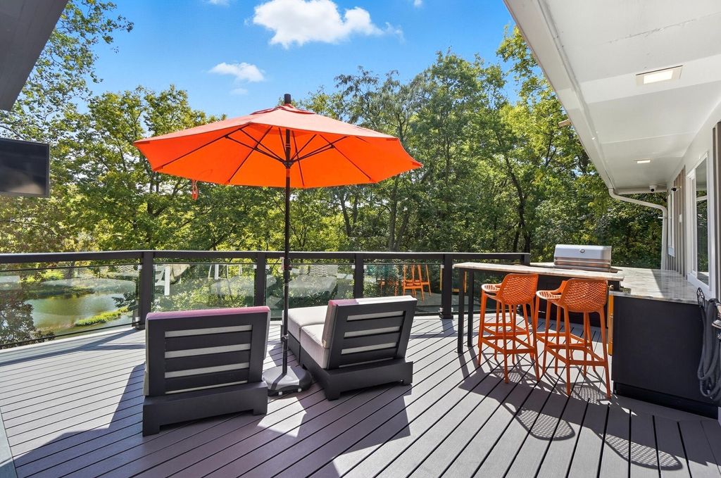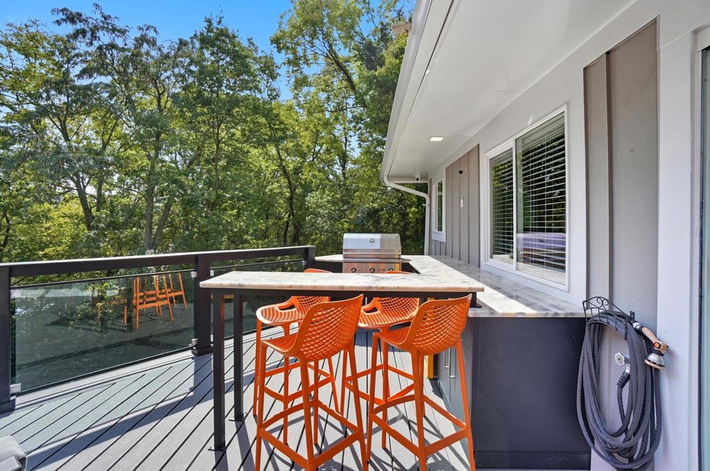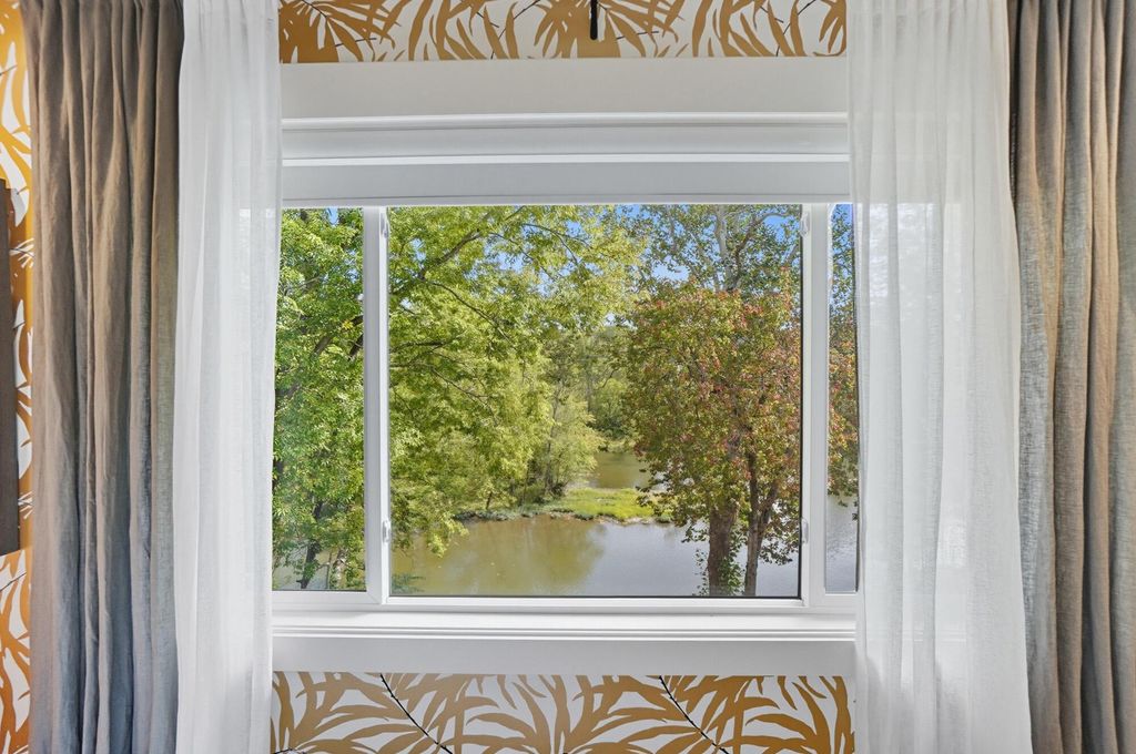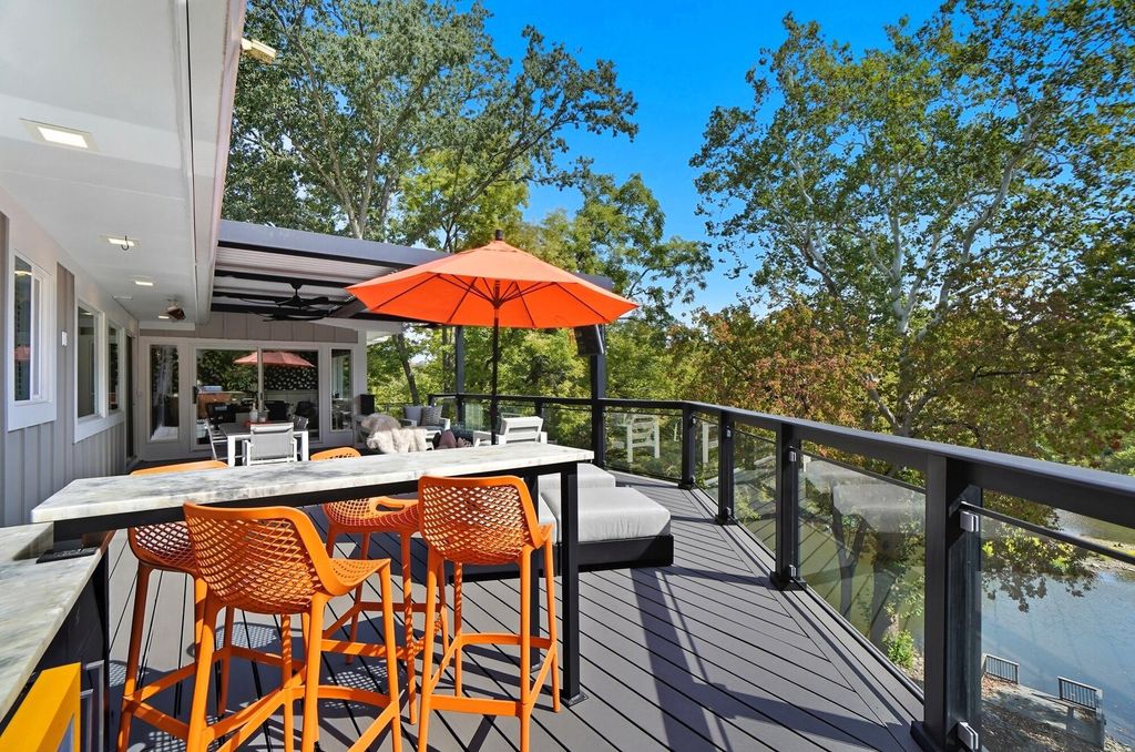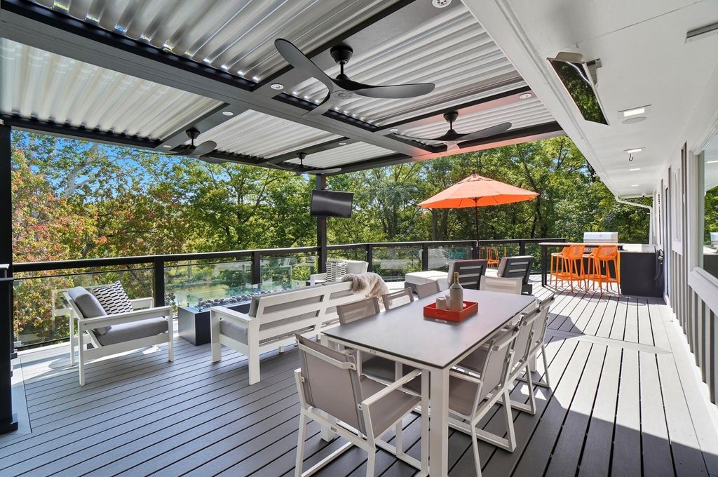 Exceptional riverfront living in the heart of Dublin! This beautifully renovated home blends modern luxury with serene natural views and rare lot features. Set on one of the widest riverfront parcels on the street (approx. 150 ft), the property includes private steps leading to a flat lower terrace--perfect for future hardscape, a firepit, or recreation space. Enjoy the convenience of a small ''she shed,'' ideal for storing kayaks, fishing gear, or use as a playhouse, plus a private dock for fishing and relaxing along the river. The expansive StruXure motorized pergola deck is an outdoor oasis, offering adjustable shade, glass railings with drink ledge, outdoor heaters, four fans, Sonos-connected speakers, Sunbrite TV, gas fire table, outdoor kitchen with True beverage fridge, built-in grill, and hot/cold hose bib--designed for year-round enjoyment. Inside, the open-concept great room features a gas fireplace, large windows framing treetop views, and seamless flow to the kitchen and dining room. The kitchen includes KitchenAid appliances, gas cooktop, island microwave, and an adjacent Butler's Pantry with convection oven, second microwave/convection oven, and additional refrigerator. Motorized blinds in the dining room and primary suite add everyday convenience. The primary suite offers a spa-quality bath with heated towel bar, TOTO Washlet, and large walk-in shower with three shower heads. A clever laundry chute is built into the closet vanity. The lower level includes two conditioned crawlspaces, custom drying racks, washer/dryer, secure storage, and a Dutch door for children/pet safety. Additional features: Generac whole-house generator, Navien tankless water heater, whole-house air purifier and humidifier, Sterling-installed smart locks, exterior security cameras (no interior cameras), sprinkler system, and professionally cleaned ductwork (2026). This rare riverfront retreat combines location, lifestyle, and luxury in one extraordinary property.