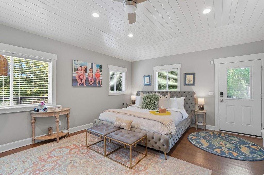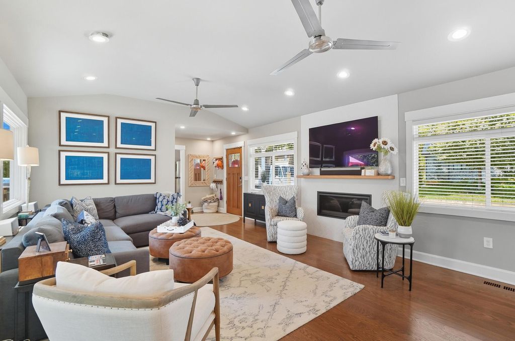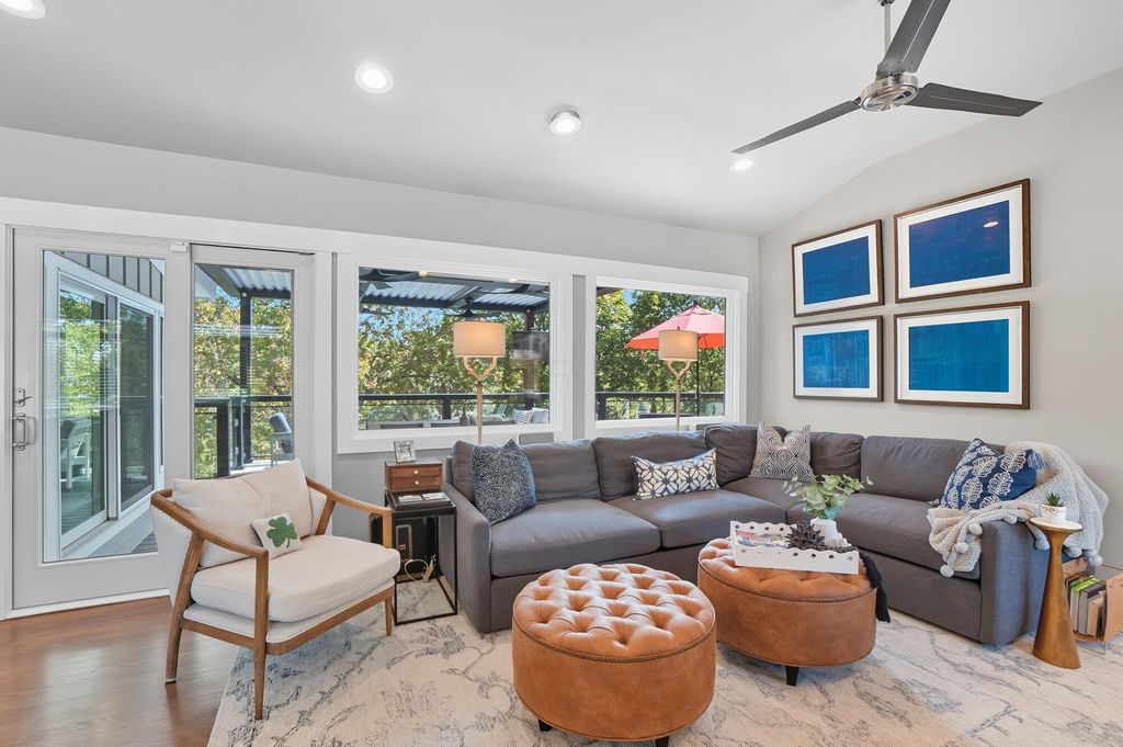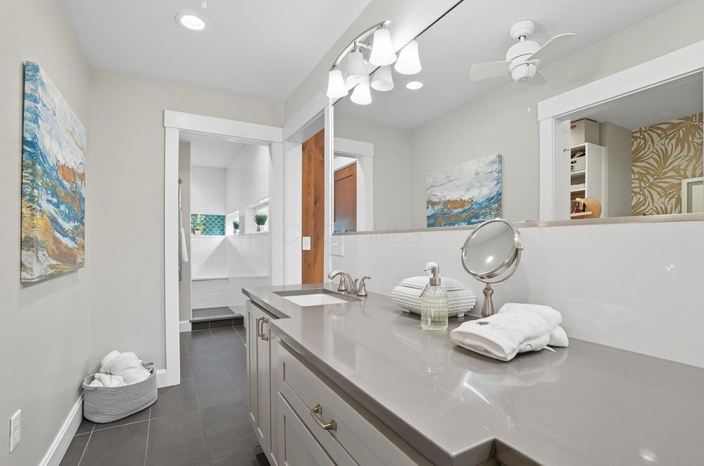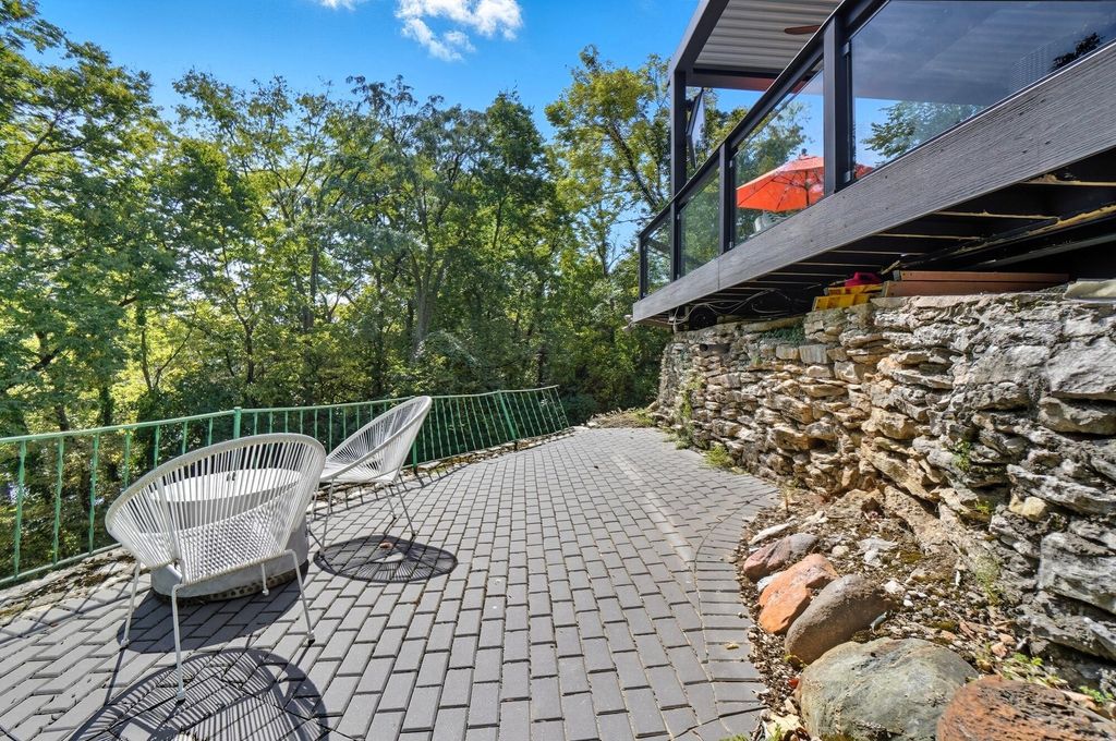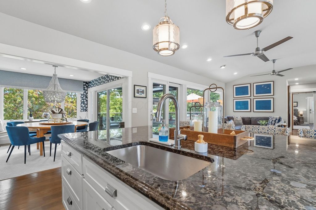 Exceptional riverfront living in the heart of Dublin! This beautifully renovated home blends modern luxury with serene natural views and rare lot features. Set on one of the widest riverfront parcels on the street (approx. 150 ft), the property includes private steps leading to a flat lower terrace--perfect for future hardscape, a firepit, or recreation space. Enjoy the convenience of a small ''she shed,'' ideal for storing kayaks, fishing gear, or use as a playhouse, plus a private dock for fishing and relaxing along the river. The expansive StruXure motorized pergola deck is an outdoor oasis, offering adjustable shade, glass railings with drink ledge, outdoor heaters, four fans, Sonos-connected speakers, Sunbrite TV, gas fire table, outdoor kitchen with True beverage fridge, built-in grill, and hot/cold hose bib--designed for year-round enjoyment. Inside, the open-concept great room features a gas fireplace, large windows framing treetop views, and seamless flow to the kitchen and dining room. The kitchen includes KitchenAid appliances, gas cooktop, island microwave, and an adjacent Butler's Pantry with convection oven, second microwave/convection oven, and additional refrigerator. Motorized blinds in the dining room and primary suite add everyday convenience. The primary suite offers a spa-quality bath with heated towel bar, TOTO Washlet, and large walk-in shower with three shower heads. A clever laundry chute is built into the closet vanity. The lower level includes two conditioned crawlspaces, custom drying racks, washer/dryer, secure storage, and a Dutch door for children/pet safety. Additional features: Generac whole-house generator, Navien tankless water heater, whole-house air purifier and humidifier, Sterling-installed smart locks, exterior security cameras (no interior cameras), sprinkler system, and professionally cleaned ductwork (2026). This rare riverfront retreat combines location, lifestyle, and luxury in one extraordinary property.