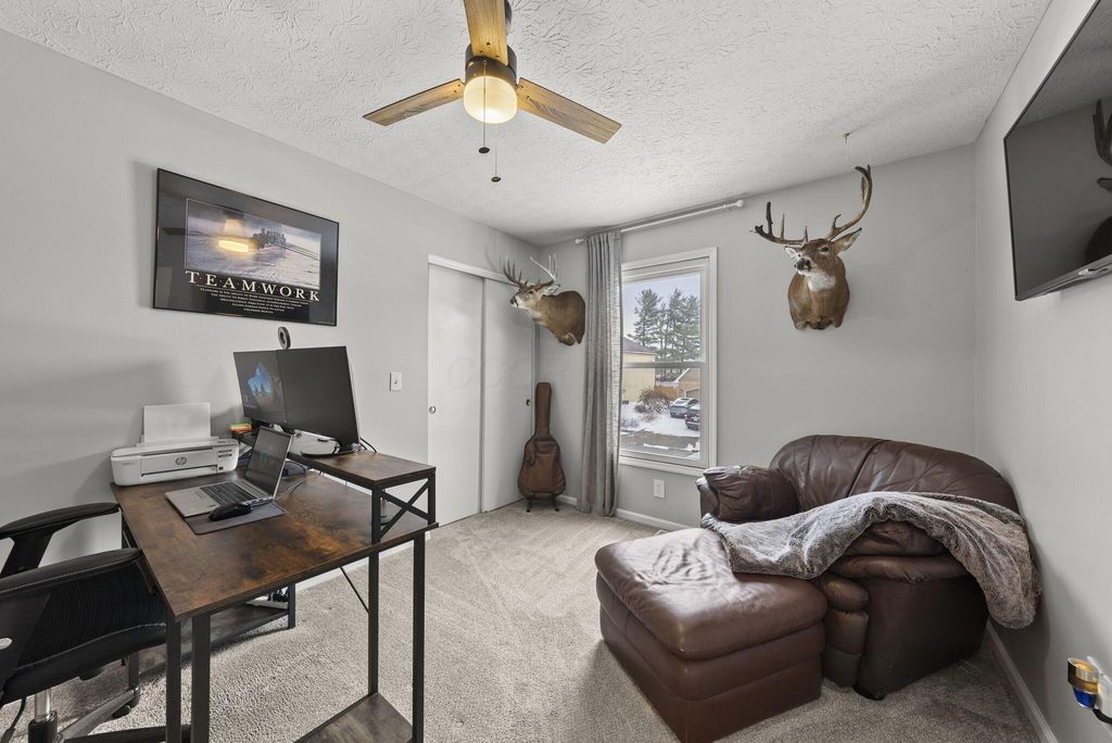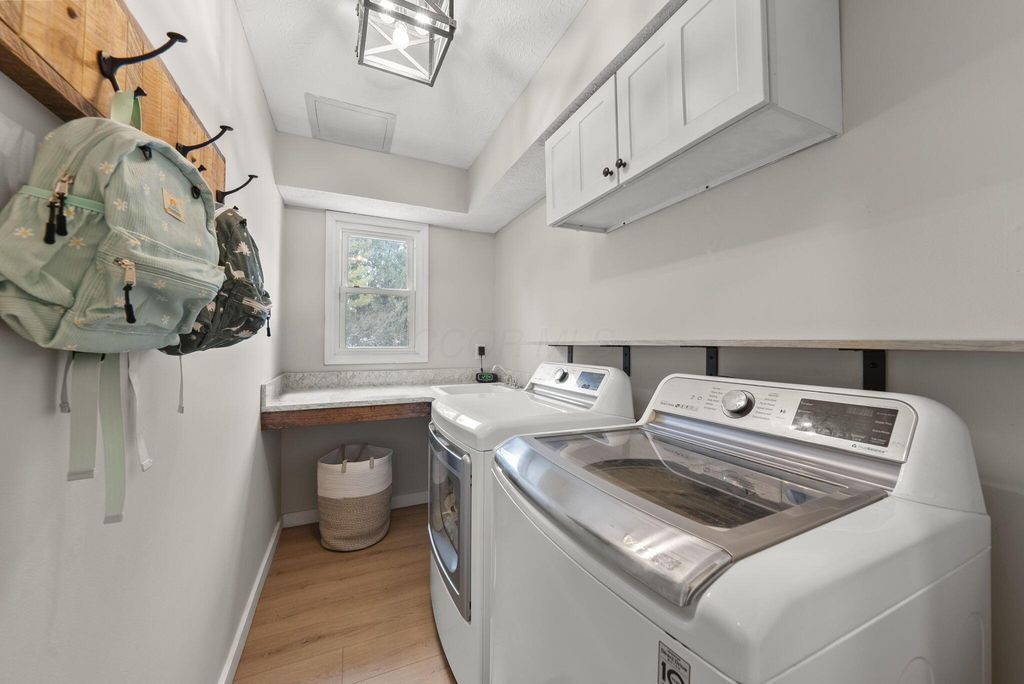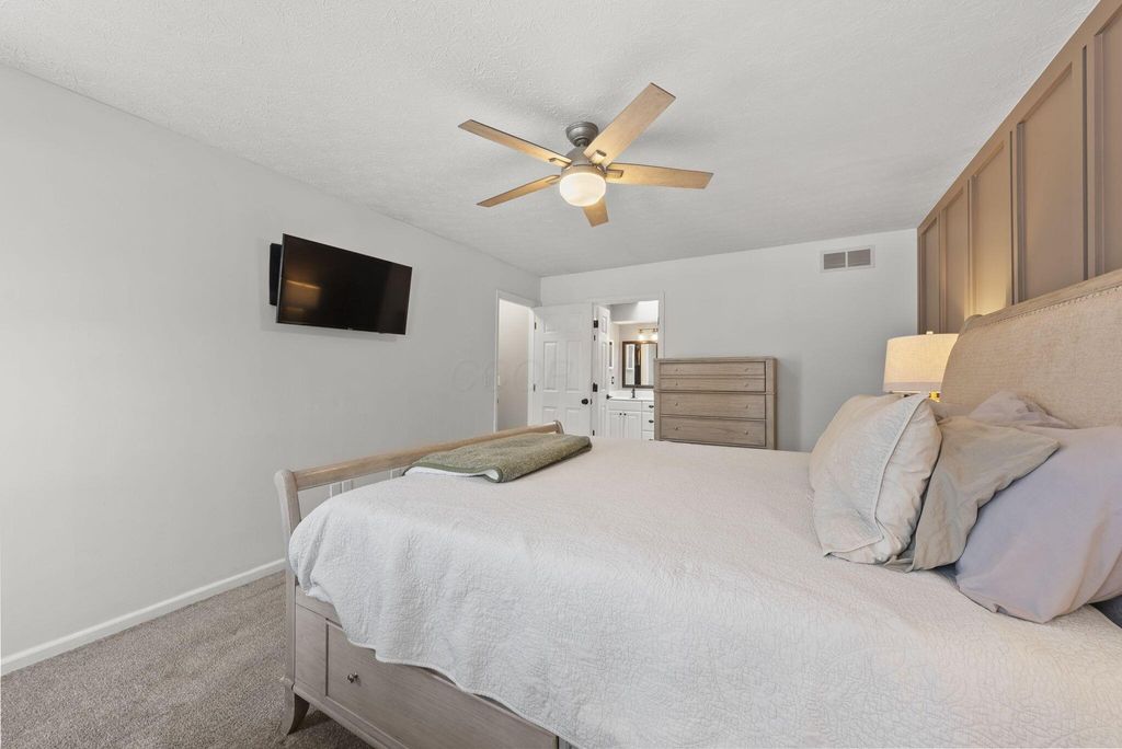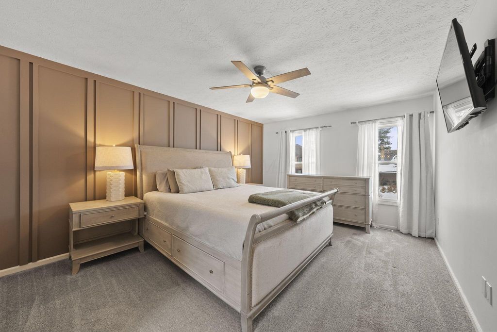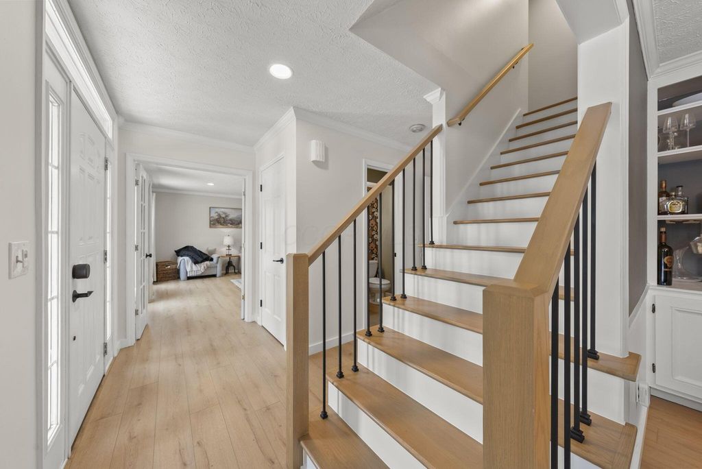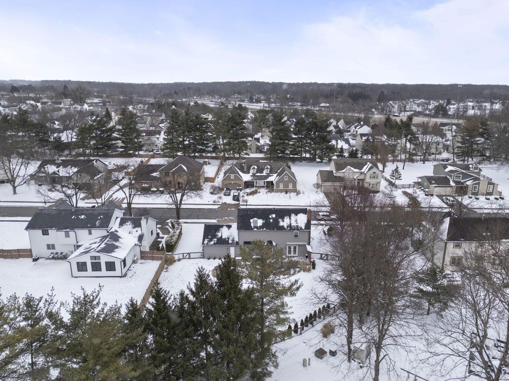 Welcome to this beautifully updated 4 Bedroom, 2.5 Bath home in the highly desirable Little Turtle community, offering 2,156 square feet of thoughtfully improved living space. Since 2022, this home has undergone extensive upgrades that blend style, function, and long-term peace of mind. A brand-new roof (August 2025) and new skylight in the primary suite provide both durability and natural light. The exterior was freshly painted with siding repairs completed in 2024, enhancing curb appeal and protecting the home for years to come. Inside, you'll find new luxury vinyl plank flooring throughout the first floor and upstairs bathrooms (December 2024), along with a beautifully remodeled staircase (January 2025) that creates a striking first impression. The updated half bath adds modern convenience, while the kitchen flows seamlessly into the inviting family room featuring a whitewashed brick fireplace. Upstairs, the spacious primary suite offers an updated bath, walk-in closet, and new skylight for added brightness. Three additional bedrooms and a full bath provide flexibility for family, guests, or a home office. Step outside to enjoy the deck and large backyard, perfect for entertaining around the custom slate flagstone fire pit. A patio privacy wall with mounted TV setup (August 2024) enhances outdoor living, making it ideal for game days or summer evenings. With major mechanical and structural improvements already completed, this home offers both style and substance in one of Westerville's most established and sought-after communities.
