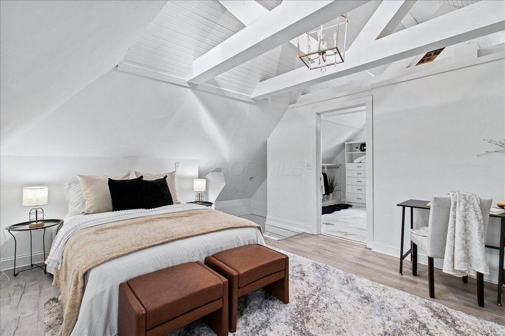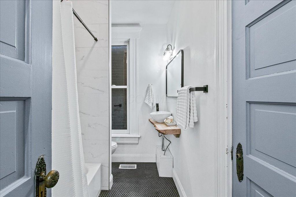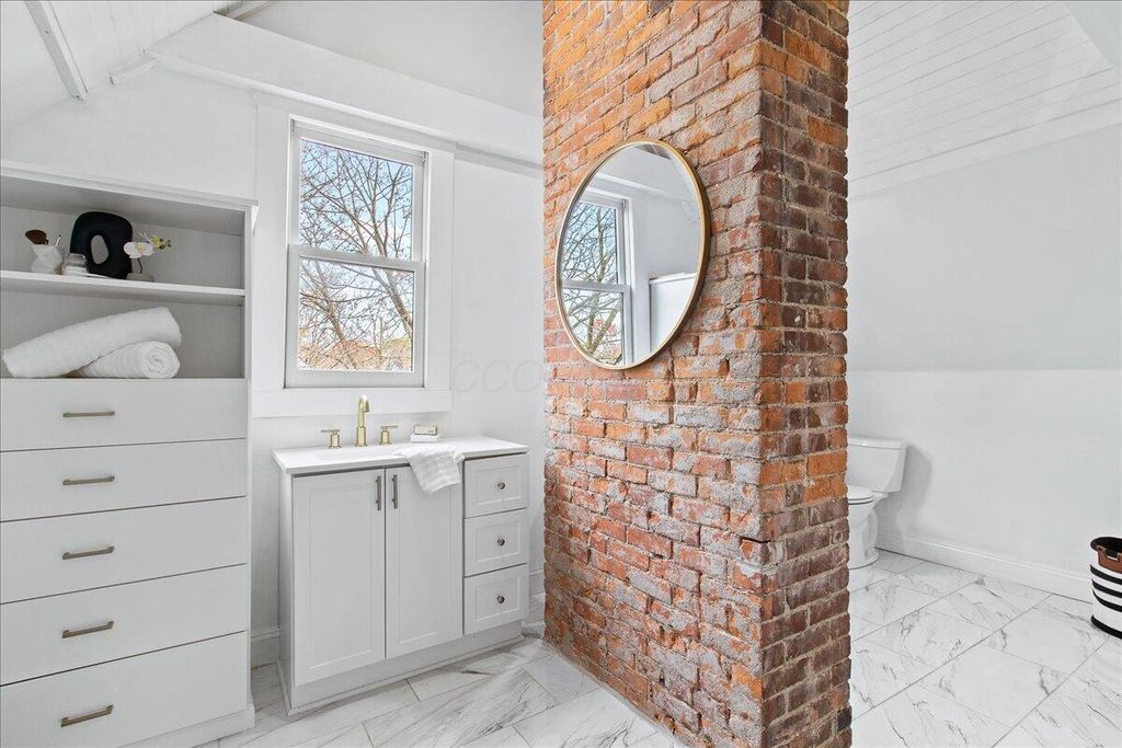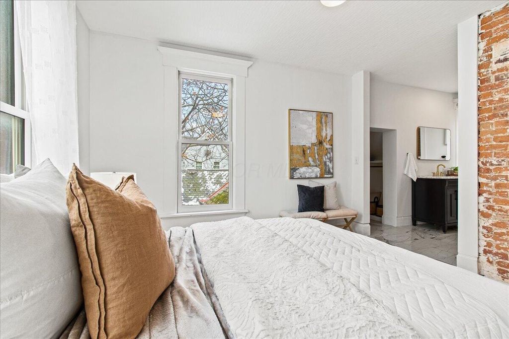 Beautifully updated brick home in the Historic Old Oaks District, blending timeless character with modern comfort. Enjoy the benefit of a tax abatement through 2037 and numerous updates, including renovated bathrooms, closets, and kitchen plus new doors and windows (2019) and updated plumbing with sump pump installation (2023). With an open floor plan, the first floor offers a natural flow and features a half bath along with original sliding pocket doors that highlight the home's historic charm. The updated kitchen showcases stainless steel appliances and an exposed brick wall providing additional counter space and storage. A mudroom, pantry, and laundry area are conveniently located just off the back entrance.The second floor offers three bedrooms and two full baths, including a primary suite with a spacious, spa-like bathroom. One bedroom is ideal for a home office or flex space. The third floor features vaulted ceilings, brand new carpet, and serves as a fourth bedroom with its own ensuite full bath perfect for guests or a private retreat. Outside, enjoy a fully fenced backyard with a wood deck, low-maintenance turf yard, and a detached one-car garage ideal for entertaining or relaxing in your own private outdoor space. Explore nearby German Village, downtown Columbus, and the Brewery District for coffee, dining, and boutique shopping, with easy access to Schiller Park, Nationwide Arena, and local farmers markets.