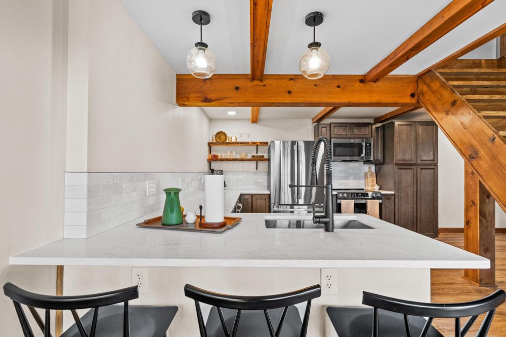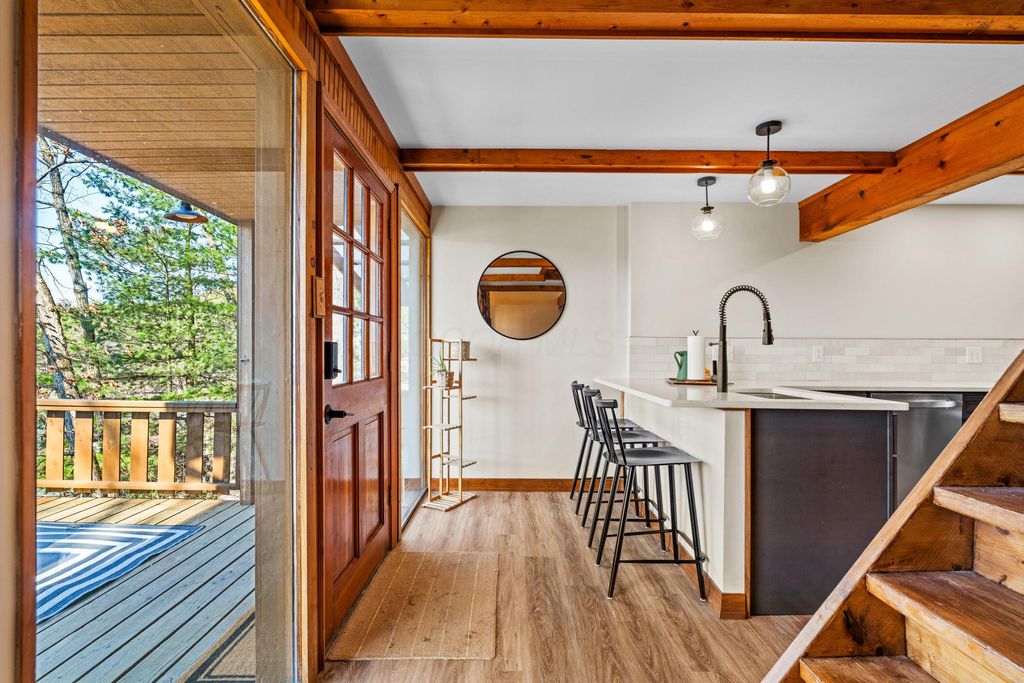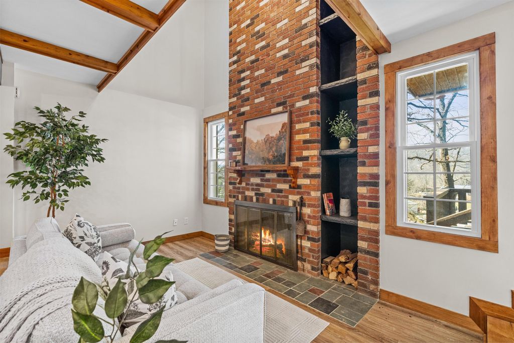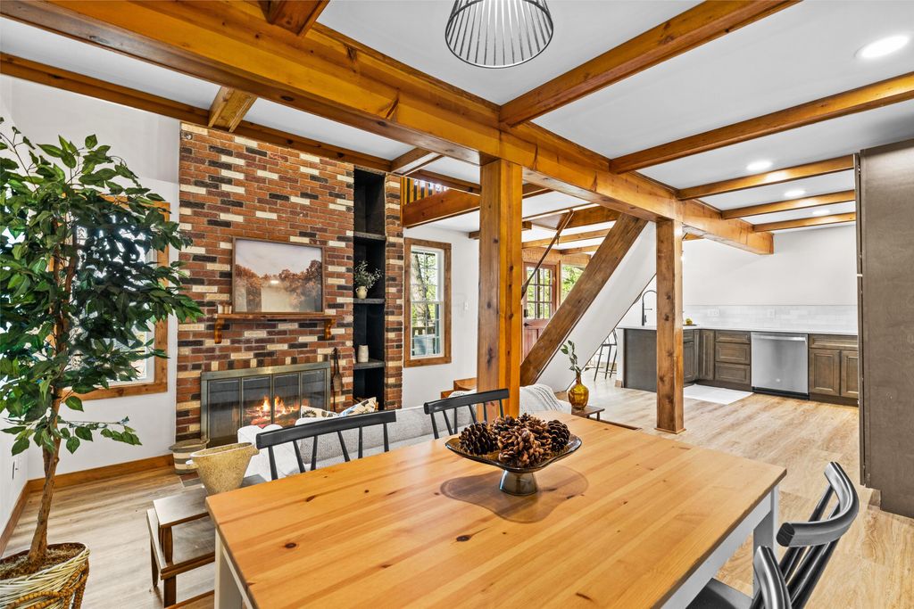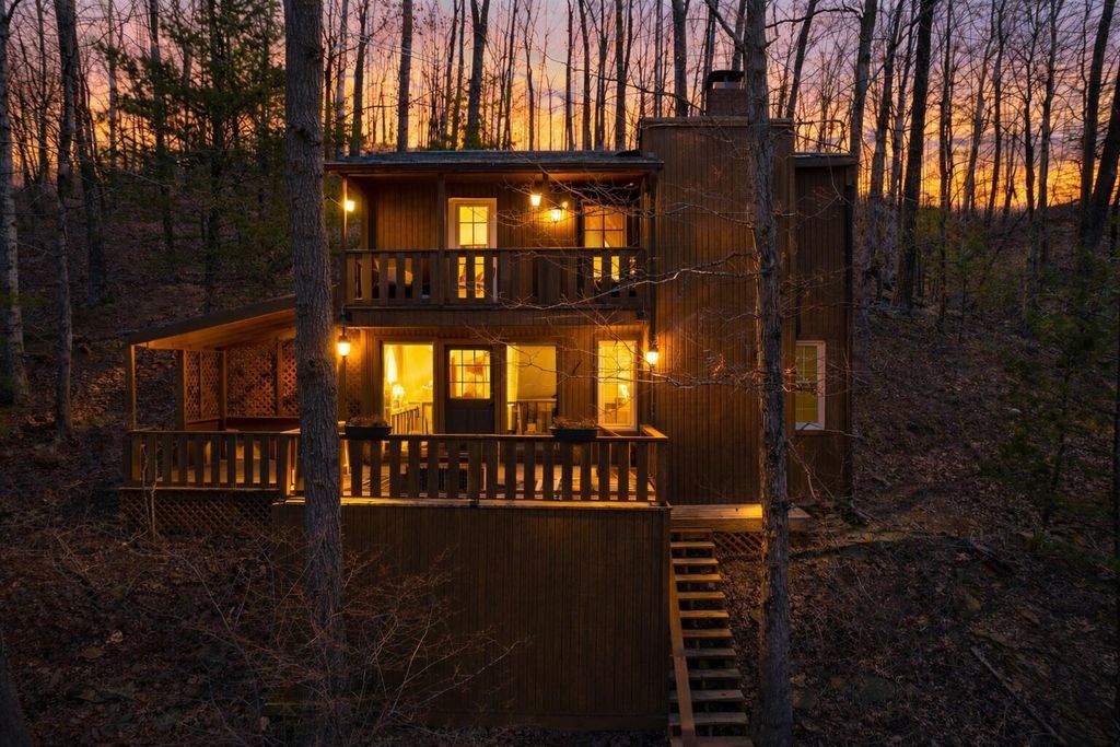 Tucked into a prime hillside setting within Hide-A-Way Hills, this fully renovated original cabin offers a rare opportunity to own a move-in-ready retreat at an exceptional price point. Blending rustic character with thoughtful modern updates, this 2-bedroom, 1-bath home features a dramatic sunken double-height living room anchored by a soaring two-story brick fireplace and beautifully restored wood details. The brand-new kitchen shines with modern finishes and all new appliances, ideal for both everyday living and weekend entertaining. Major improvements provide peace of mind, including updated plumbing and electrical, new windows, efficient mini-split HVAC systems, and a pre-installed hot tub hookup. New stairs and expansive deck spaces create seamless indoor-outdoor living, surrounded by peaceful wooded views. Conveniently located near the front gate, this home provides easy access to all the amenities you will enjoy as a resident of Hide-A-Way Hills - multiple private lakes, golf course, clubhouse, lodge, pool, tennis and pickleball courts, fitness center, community garden, ATV trails, horse stables and barn, chapel, shooting range, and more - all within a secure, gated community. Completely updated and ready for immediate enjoyment, opportunities like this in Hide-A-Way Hills at this price point are increasingly rare. Now is your chance to own a thoughtfully restored woodland retreat designed for resort-style living in the heart of the forest.